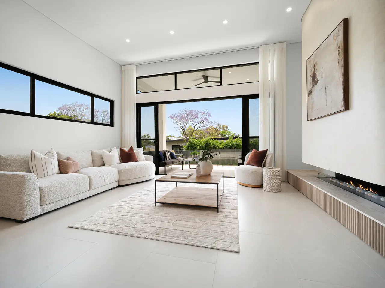 Soaring ceilings with feature gas fire