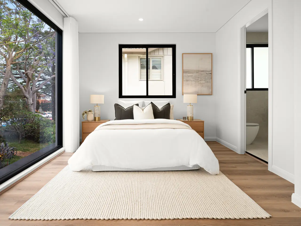 Grand bedrooms with bespoke robes and water views