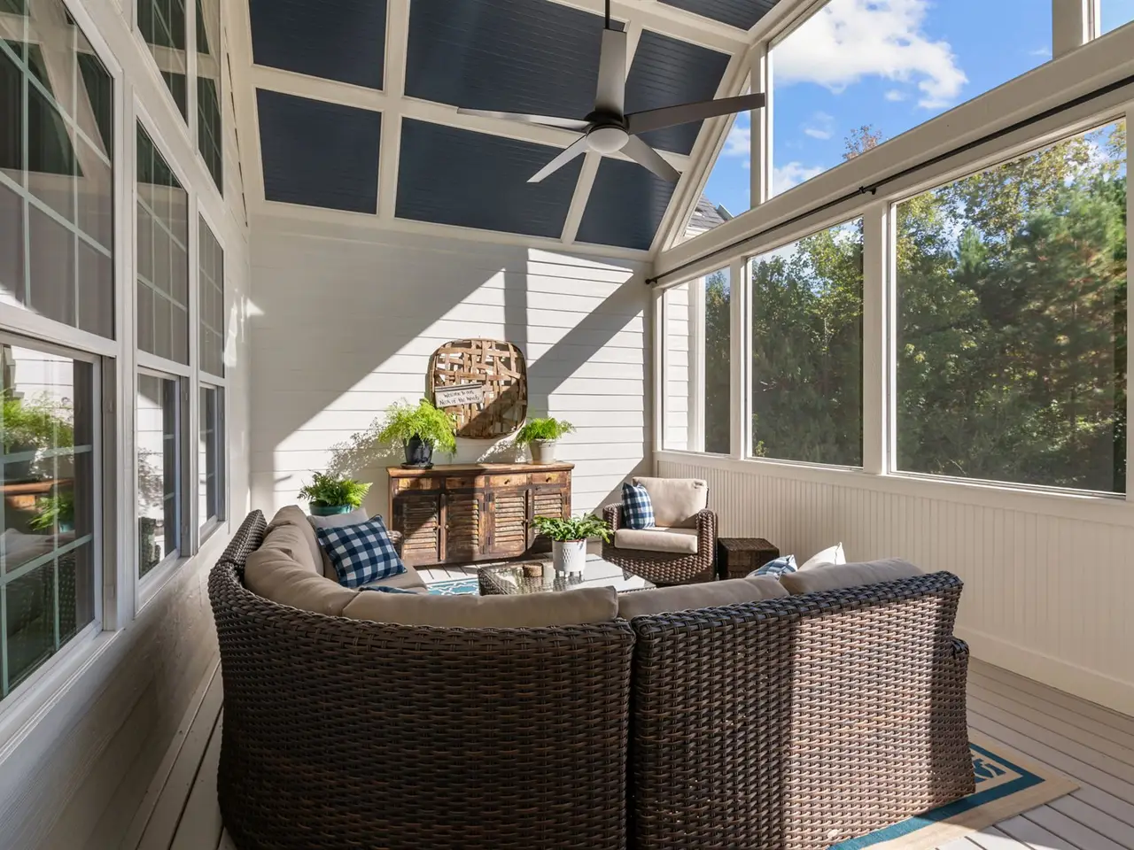 Screened porch with soaring ceiling