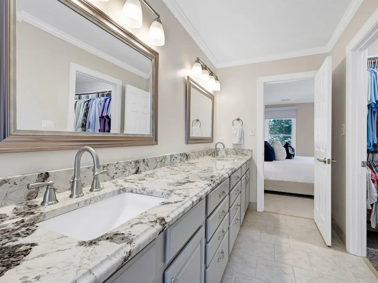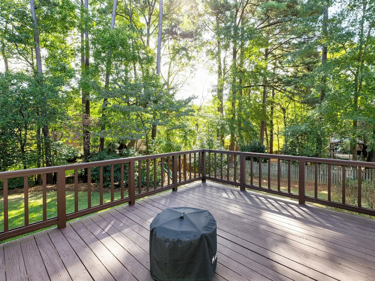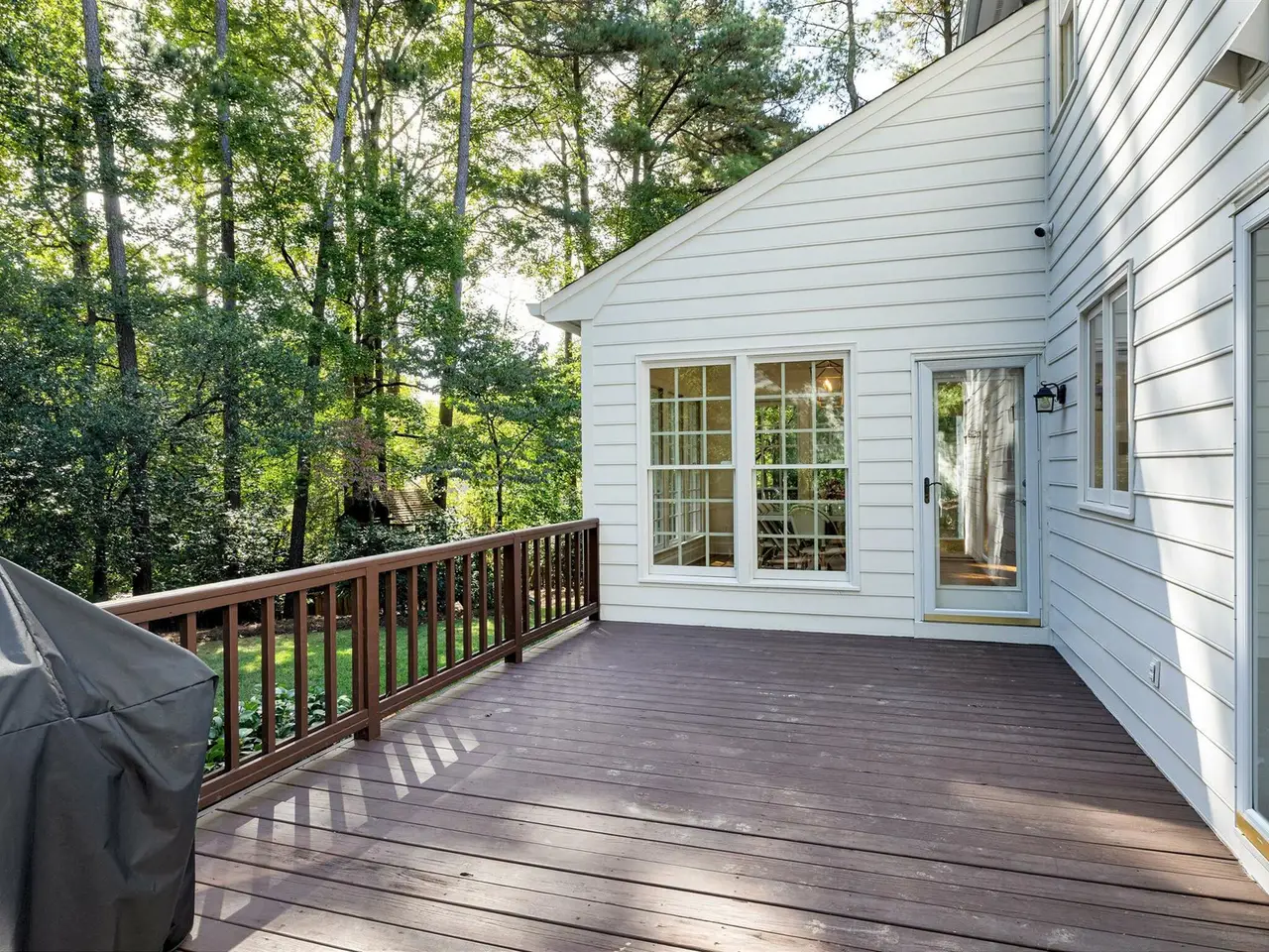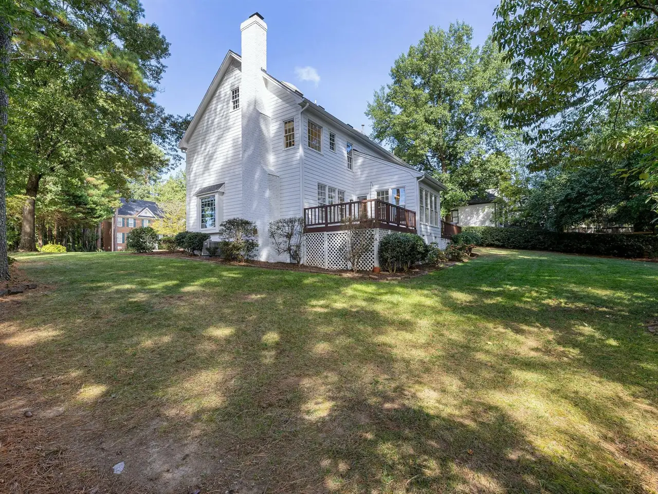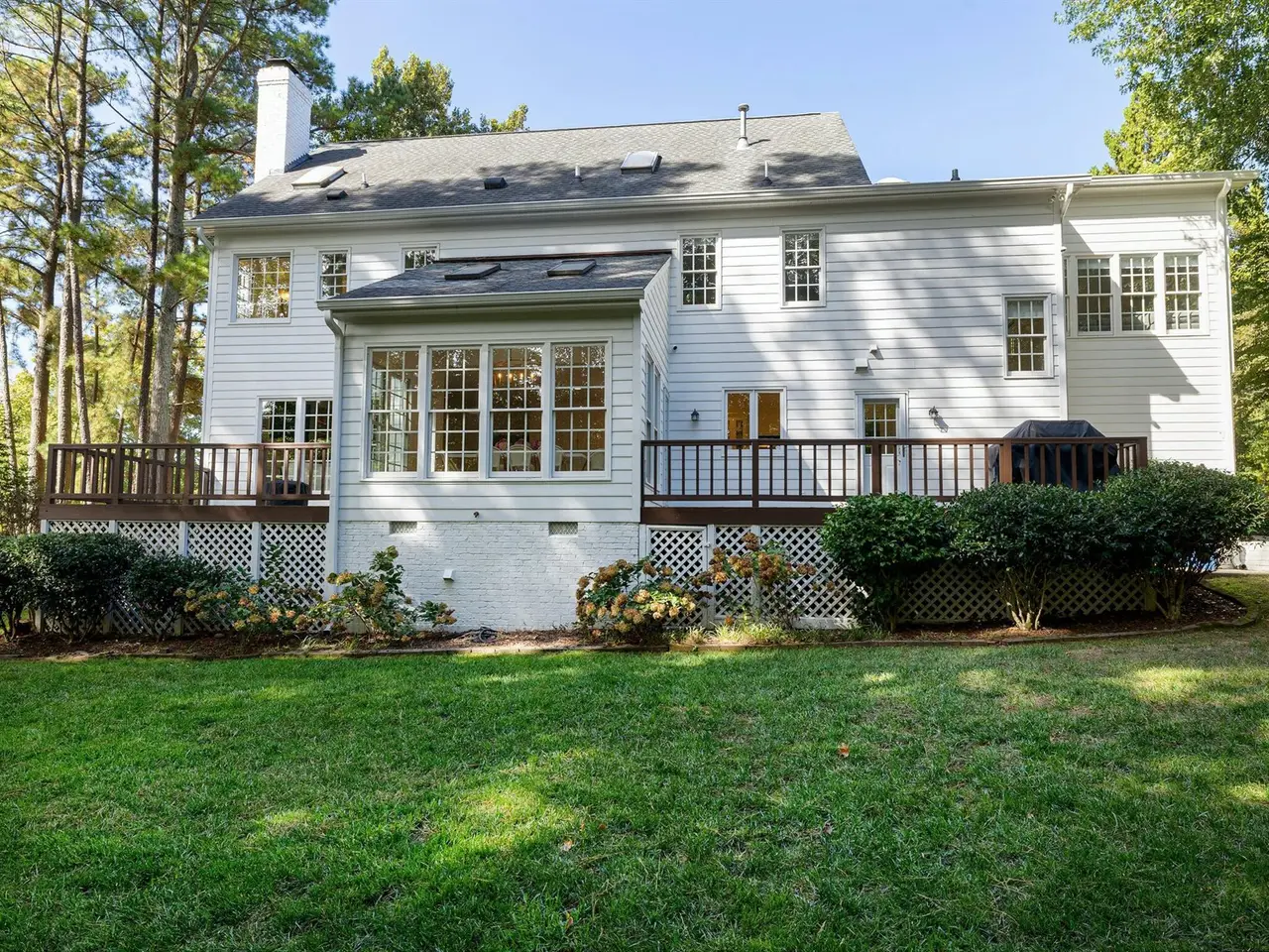 North Ridge classic at its best! This beautiful home was made for easy entertaining with formal areas. Enjoy memorable dinners in the dining room which features a trey ceiling and wainscoting. The living room is perfect for quiet conversations. The updated kitchen is appointed with quartz counters, center island, SS appliances, tile backsplash, gas cooktop, glass front cabinets and a large pantry. It opens to the sunny breakfast room and family room with cozy fireplace There is a rear staircase leading to the second floor bonus room. The primary suite has a huge bedroom, office area, luxury bath with double vanities, whirlpool bath, separate shower and walk in closet. Three additional bedrooms are on the second floor. The walk up attic will meet your storage needs or can be used for future expansion. Enjoy the view of the private backyard from the two decks or the playset . You are minutes from North Ridge Country Club, shopping and dining. It's an easy commute to I-540, downtown Raleigh, North Hills and the airport. This home is waiting for you!