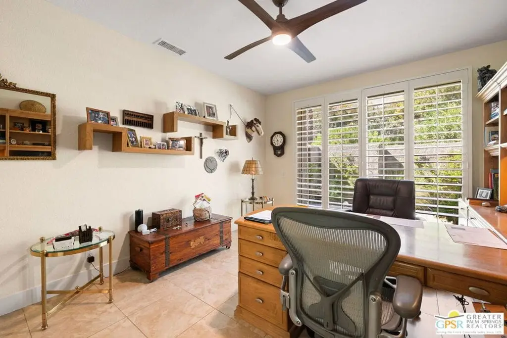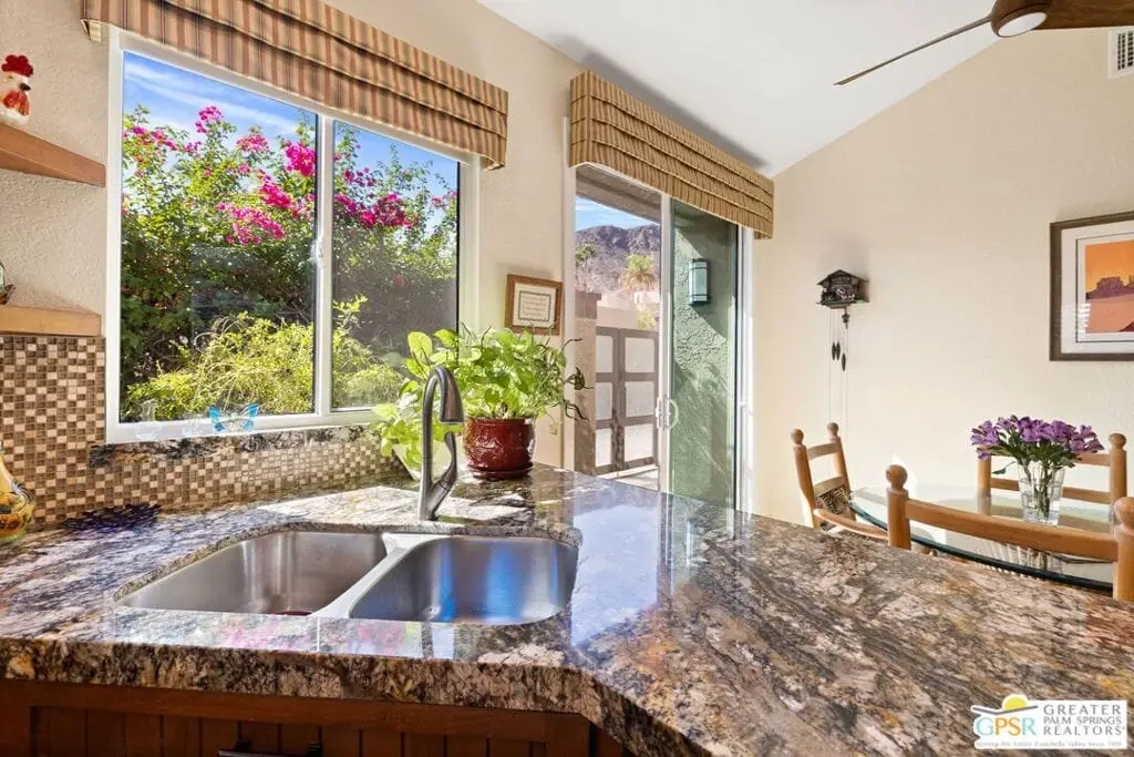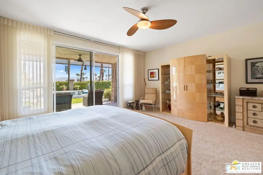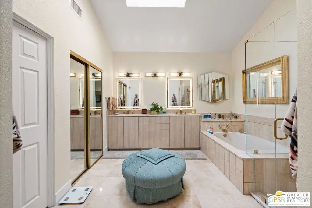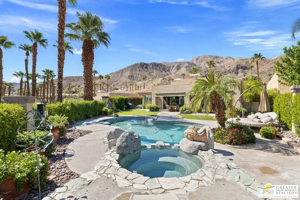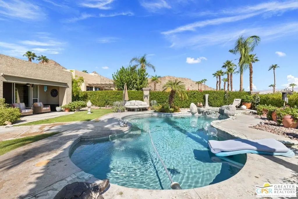 Price improvement of $200,000. Seller has purchased another property. Coveted and secluded gated Mirage Cove, where privacy abounds. Only 69 homes terraced on the hillside with 360-degree mountain views and city lights.This home offers three bedrooms, including two ensuite primary suites, plus two recently upgraded full baths and a third bath with walk-in shower. Approximately 2,750 square feet (per assessor). Private driveway to attached two-car garage with one additional parking space. Gated, free on-site RV parking lot. Leaded glass double-door entry. Neutral ceramic tile flooring. Bathrooms with travertine flooring. Ensuite bedrooms feature newer carpet. All energy-efficient windows and glass doors recently replaced.The spacious kitchen has granite counters, upgraded cabinetry, and newer stainless appliances. Large living room with adjoining semi-formal dining area. Family/media room. Oversized .40-acre site with saline swimming pool and spa. Property has been updated over the last 1.5 years, addressing nearly all surfaces including quartz counters, cabinetry, windows, sliding doors with screens, HVAC and attic ducting, and roof servicing. Some furnishings available.Mirage Cove community offers an almost Olympic-size pool, spa, tennis courts, and pickleball courts. This gated hillside neighborhood consists of just 69 homes ranging from 2,200 to over 3,000 square feet on terraced, pool-size lots with mountain views. Homes are typically priced from $1,100,000 to $2,100,000.