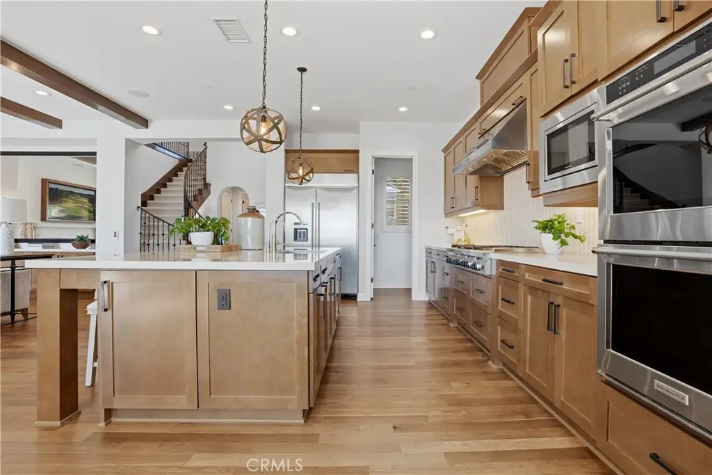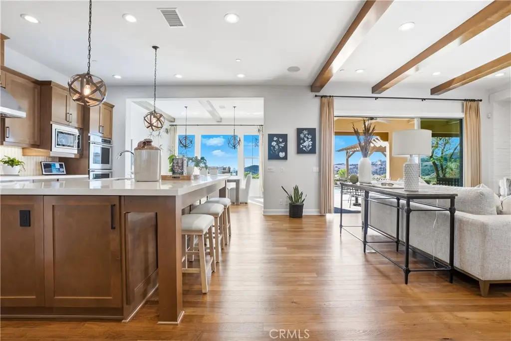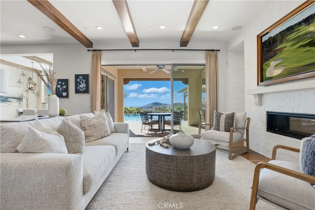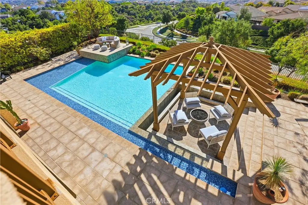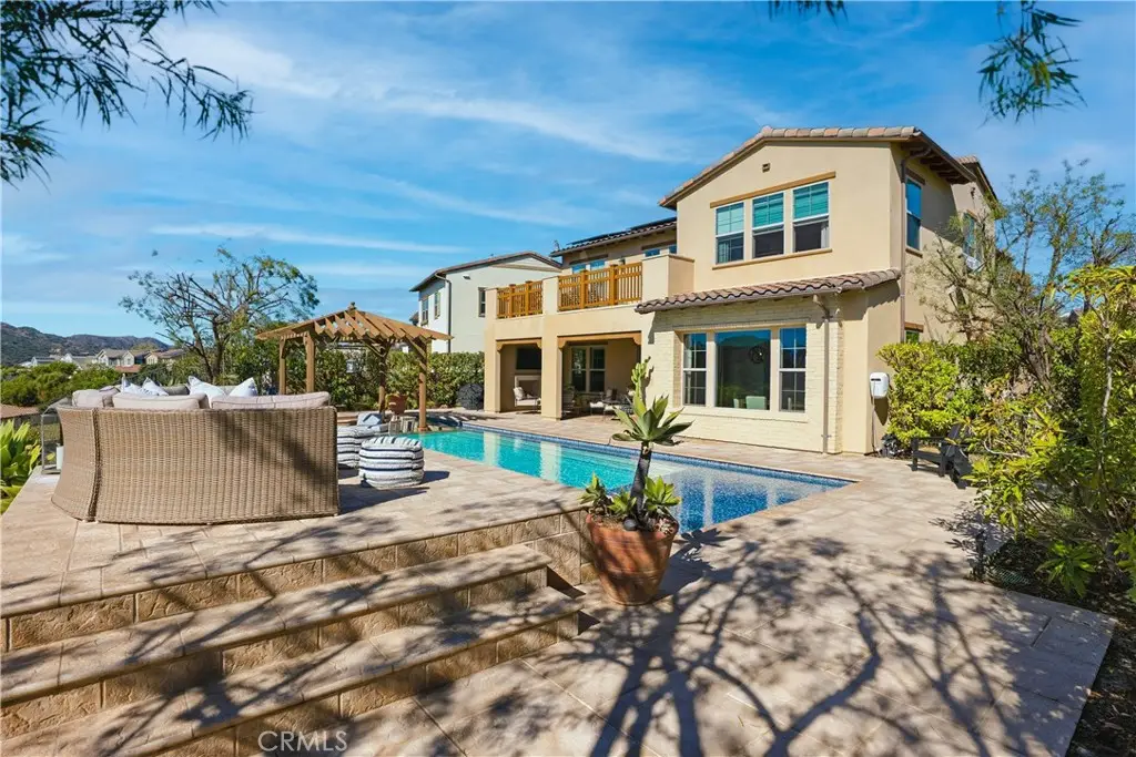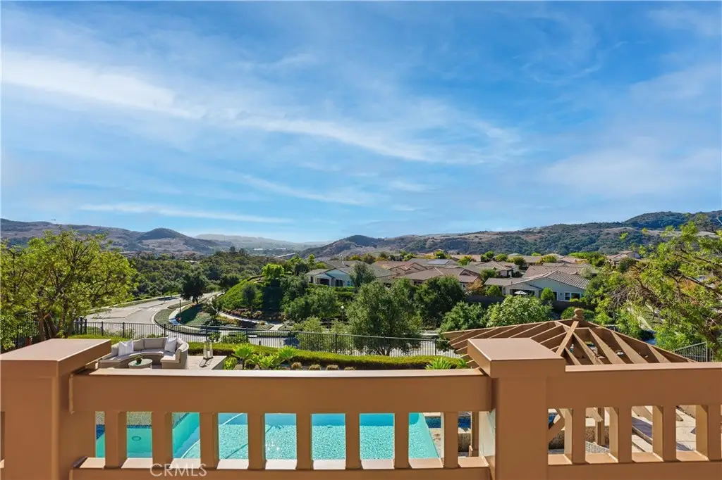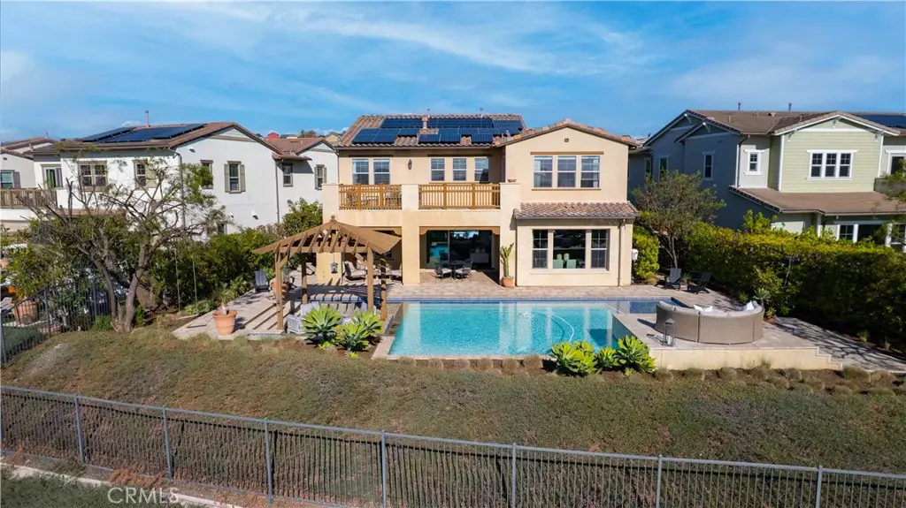 Looking for a pool VIEW home in Aubergine, right here in the award-winning community of Rancho Mission Viejo? This one's a gem, tucked on one of the quietest view streets in RMV, where ocean breezes roll in every afternoon. It's the kind of spot that reminds you why life in RMV feels like a staycation every day. This former MODEL HOME defines resort style living at its finest and is set on an 8,379 sq ft ideal lot. This professionally designed Adobe Ranch style model home showcases high-end craftsmanship and resort-style living in the heart of Rancho Mission Viejo. Featuring 4 bedrooms, 4.5 baths, a private office, and an upstairs loft, this residence blends sophistication with everyday comfort. Step inside to a grand entry with a sweeping iron staircase that sets the tone for elegance throughout. The chef's kitchen impresses with a large kitchen island, walk-in pantry, custom maple shaker cabinetry, stainless steel appliances, upgraded quartz countertops, and a designer tile backsplash. The kitchen flows seamlessly into the spacious great room with fireplace and formal dining area, creating the perfect space for hosting and gathering. Upstairs, each bedroom features its own en-suite bath, while the primary suite offers a true retreat complete with a spa-inspired bath, expansive walk-in closet, and a private balcony overlooking ocean-facing sunsets toward Dana Point. Designed for the ultimate indoor-outdoor lifestyle, stacking glass doors open to an expansive California Room with fireplace and TV, extending to a private backyard oasis featuring a great size pool, sunken fire pit lounge, and panoramic quiet views. Every inch of this Tri Pointe model home is enhanced with designer upgrades, thoughtful details, and curated finishes offering a rare opportunity to own one of Rancho Mission Viejo's most coveted showcase properties. The interior of the home was just painted as well as new carpet upstairs. Exclusive to Rancho Mission Viejo residents are all amenities in the Villages of Sendero, Esencia, Rienda, and future Villages. There are community amenities for all from breath-taking resort-style pools and spas, Esencia school K-8, community farms, fitness centers, guest house, putting green, bocce ball courts, tennis and pickle ball courts, playgrounds, coffee shop, fire pits, an arcade and so much more!