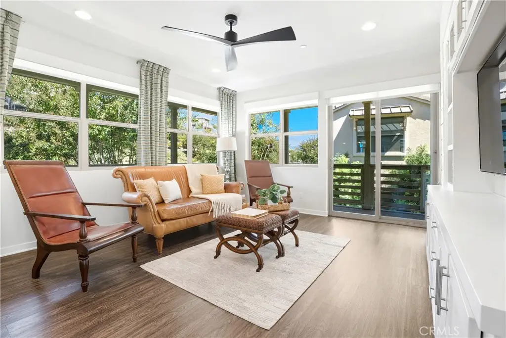 Nestled within the highly sought-after Trellis neighborhood of Esencia, this beautifully upgraded home showcases the community's largest floor plan, offering three spacious bedrooms plus a versatile office that can easily be converted into a fourth bedroom. Trellis is celebrated for its charming collection of modern farmhouses, perfectly capturing the essence of contemporary South Orange County living. From the moment you arrive, you're welcomed by a picturesque white picket fence, lush landscaping, and a generous wraparound front porch that sets the tone for the warmth and style found inside. The first level features a thoughtfully designed guest bedroom and a full bathroom, creating an ideal space for visitors or multi-generational living. Upstairs, the expansive second floor embraces an open-concept great room design, where the kitchen, dining, and family room flow seamlessly together. The kitchen has been modernly appointed with quartz countertops, gray cabinetry, stainless steel appliances, a designer backsplash, and durable faux-wood flooring. A custom shiplap wall and Restoration Hardware ceiling fan add stylish character, while the wraparound balcony extends the living space outdoors, providing the perfect setting for entertaining or enjoying the coastal breeze. The primary suite offers a peaceful retreat with a spacious walk-in closet and a luxurious en-suite bathroom featuring dual sinks, a romantic soaking tub, and a walk-in shower. An additional secondary bedroom and bathroom, along with a convenient laundry area, complete this level. The crown jewel of the home is the expansive rooftop deck, an entertainer's dream with plenty of room for gatherings, relaxation, and taking in breathtaking panoramic views. Blending modern upgrades with timeless farmhouse charm, this residence is a rare opportunity to own one of Trellis' most desirable homes. Exclusive to Rancho Mission Viejo residents are all amenities in the Villages of Sendero, Esencia, Rienda and future Villages. There are community amenities for all from breath-taking resort-style pools and spas, Esencia school K-8, community farms, fitness centers, guest house, putting green, bocce ball courts, tennis and pickle ball courts, playgrounds, coffee shop, fire pits, an arcade and so much more!