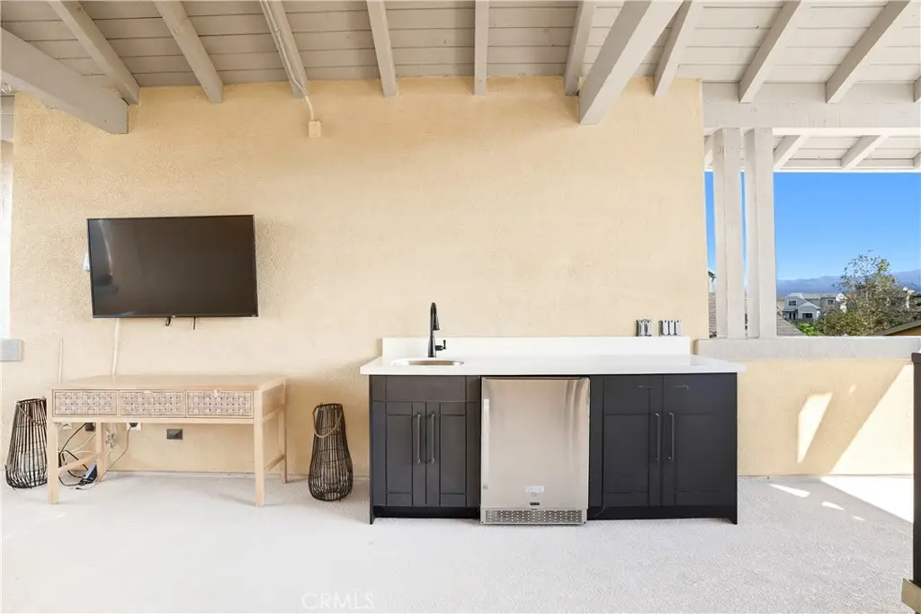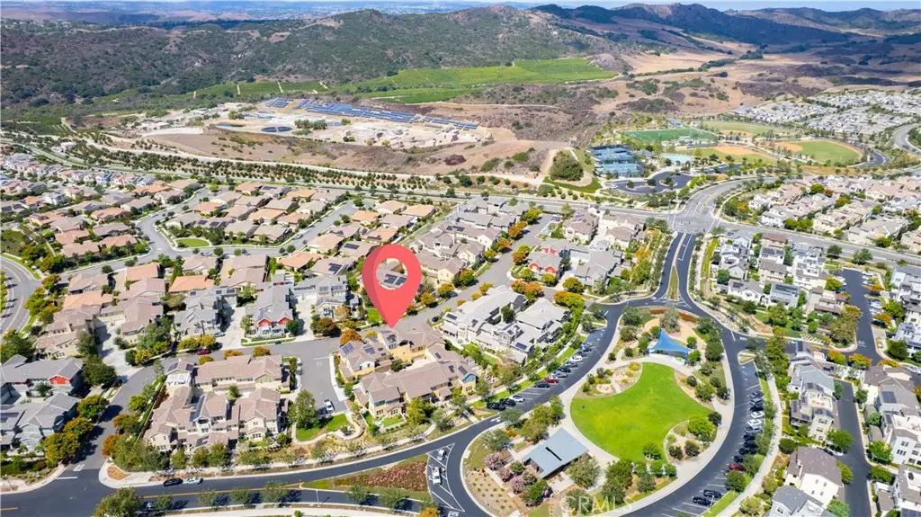 Offered by the original owner, this beautifully upgraded home blends modern design with luxury finishes throughout. From the moment you arrive, you'll be captivated by the spacious front yard, and oversized covered patio--complete with built-in seating and a cozy firepit, perfect for entertaining or enjoying a quiet evening outdoors. Step inside to discover an open-concept layout featuring elegant vinyl plank flooring, fresh interior paint, plush new carpet, recessed lighting, and upgraded baseboards. The bright and airy living room flows effortlessly into a dining area and a chef-inspired kitchen equipped with stainless steel Energy Star appliances, a gas range with hood and griddle, a self-cleaning convection oven, modern tile backsplash, gorgeous quartz countertops, and a large center island with farmhouse sink and breakfast bar. Upstairs, the luxurious primary suite offers a true retreat with a spacious walk-in closet, beautifully upgraded ensuite bathroom with tiled shower and floor, quartz countertops and dual vanities. Two additional bedrooms, a full guest bathroom with dual sinks, and an upper-level laundry room with added cabinetry provide plenty of space and convenience for daily living. The third-level covered rooftop deck boasts panoramic mountain views and is ideal for BBQs, al fresco dining--with a built-in sink, refrigerator, and counter space--or simply lounging with a built-in TV setup. Additional home features include touchless keypad entry, custom window coverings including wood shutters and blinds, double pane windows, upgraded light fixtures, downstairs framed mirror, modern hardware, direct access 2-car garage with overhead storage and ball rack, and Energy Star features integrated throughout the home. You will also have access to award-winning amenities such as baseball fields, playgrounds, a sports park, the Canyon House, Blue Hummingbird Coffeehouse, The Pond, Lagoon and Lake, Camp Out facility, resort-style pools, the farms, an arcade, state-of-the-art workout gyms, dog park, a zipline, splash pads, biking trails, NEV roads, and tennis and pickleball courts (to name a few). Additionally, it is just 15 minutes from the beach and conveniently located near the 241 freeway.