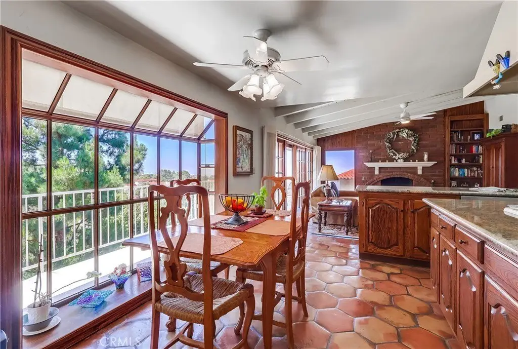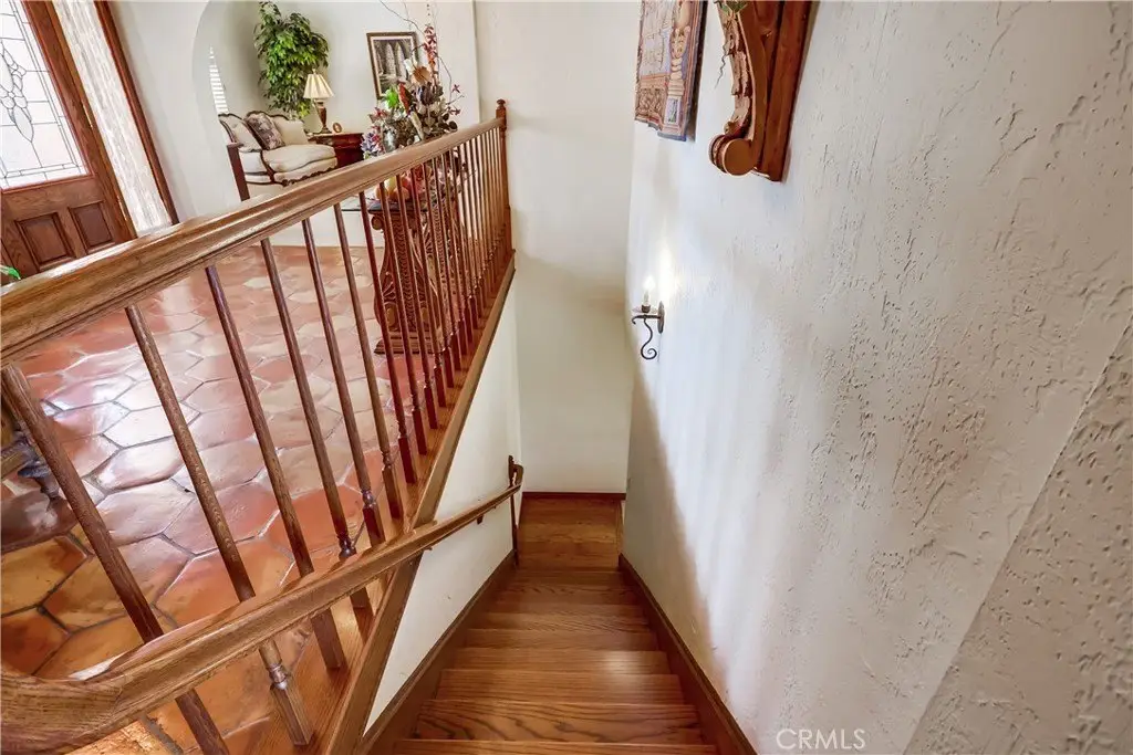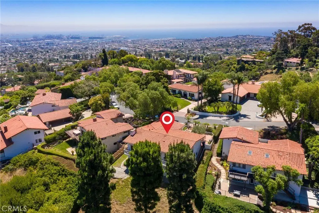 This custom-built Mediterranean-style residence located on one of the most coveted streets in the red tile roof section of Miraleste, exudes timeless charm and sophistication. Built in 1975 by original owners and first time offered for sale, the bones are great and with a few cosmetic improvements, this could be your dream home! Enter through a private gated courtyard to intricately hand-carved double doors that lead to a grand formal entryway. This remarkable home features vaulted ceilings, Spanish archways, an elegant formal living room, formal dining room, plus a large family room with a stunning arched floor-to-ceiling brick fireplace. The gourmet kitchen boasts custom solid hardwood cabinetry, a center island and granite countertops. A cozy breakfast nook with a garden window offers serene views of the tranquil canyon, filled with the sounds of chirping birds and hummingbirds fluttering among the towering pine trees. Revel in the breathtaking twinkle of city lights, the San Gabriel mountains, and canyon views from the deck off of the family room, kitchen, dining room, and downstairs bedrooms. The lower level hosts an oversized primary suite with a sitting area and a spacious primary bathroom with a vanity & walk-in closet. There are two additional generously sized bedrooms, a full bathroom, and ample storage space. The charming entry with its private courtyard is fully fenced. Situated on Via Frascati, a quiet, one-way, tree-lined street, this home provides a peaceful retreat from the bustle of the city while remaining a short drive from freeways, resorts, and scenic nature trails. Truly a unique custom residence and an absolute MUST SEE!
