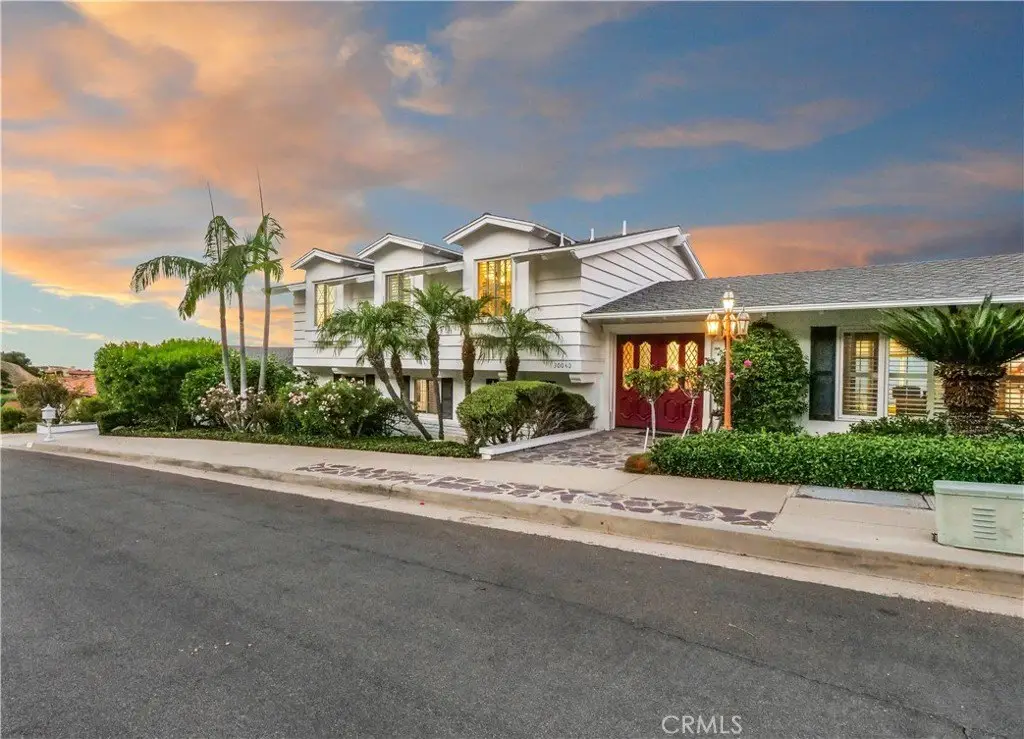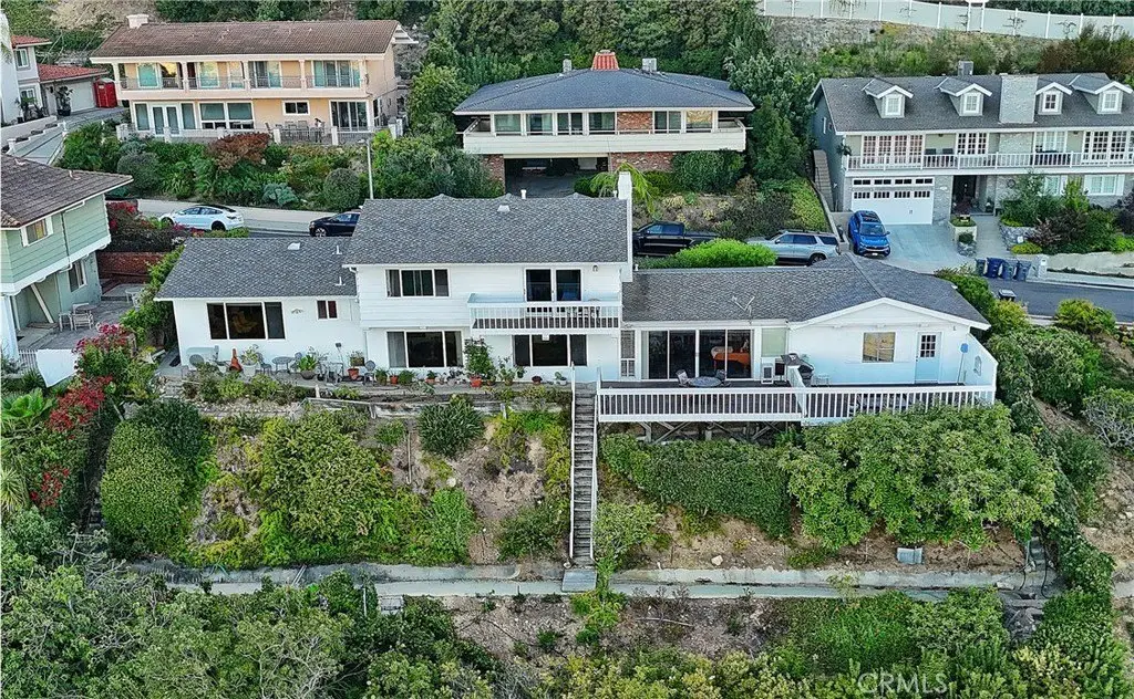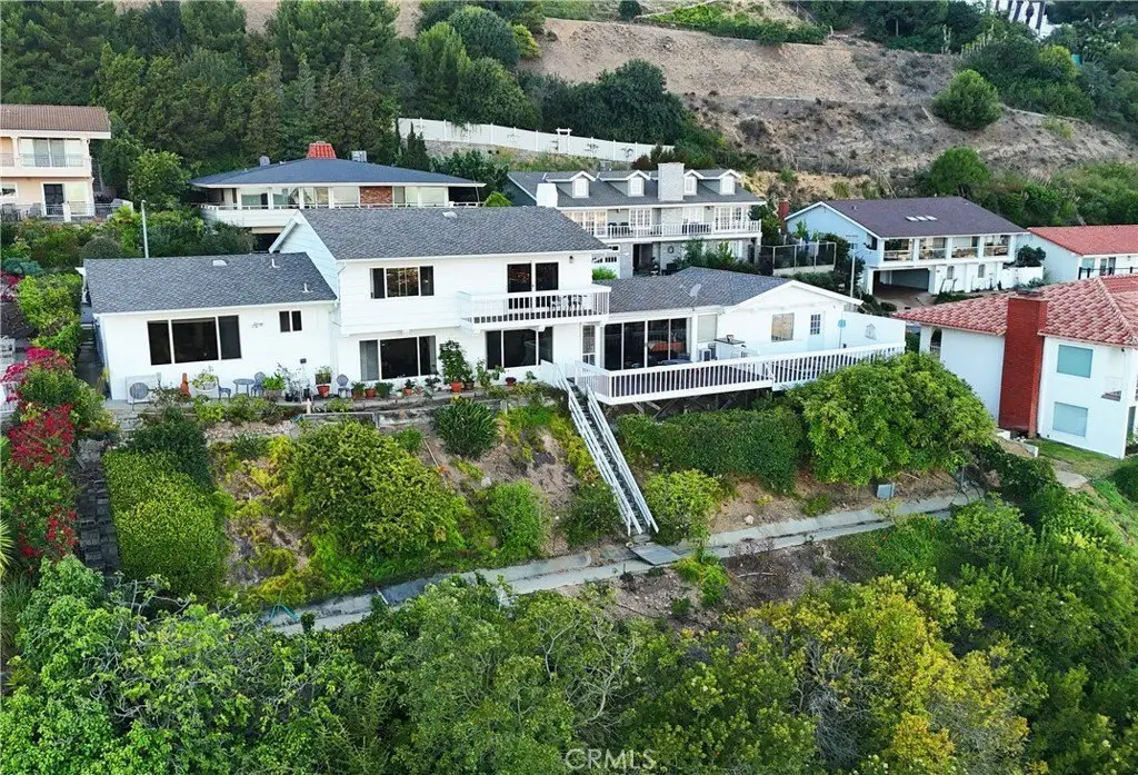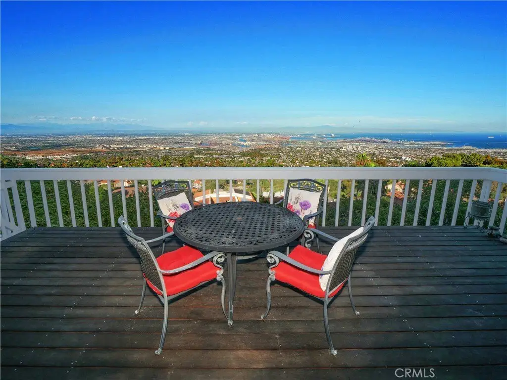Welcome to the pinnacle of Miraleste Hills living! Perched high above the coastline, this custom-built residence has been designed to fulfill every desire. From its commanding position, the home captures a sweeping panorama—stretching from the iconic Hollywood Hills and the glowing skyline of Downtown Los Angeles, to the picturesque coastal reaches of Dana Point and San Clemente. Wake to radiant sunrises over the harbor and mountains, and wind down with sunsets that ignite the city skyline in dazzling color. Inside, you’ll discover three bedrooms and three baths across 2,280 square feet (per assessor), with an additional about 600 square feet of enclosed flex space connecting the family room and garage. The floor plan was thoughtfully designed to showcase the extraordinary views from nearly every room. The grand entryway introduces a guest half bath and opens to light-filled living spaces. Upstairs, the primary suite offers a walk-in closet, a private bath with shower, and a balcony where dusk gives way to a million twinkling lights. The second bedroom shares the same captivating vistas, while the spacious third bedroom and hallway bath complete the upstairs level. The elegant living room, with walls of glass, invites natural sunlight and frames the breathtaking scenery. The adjacent dining room ensures every guest enjoys a memorable view—no matter where they sit. The kitchen is designed for culinary adventures complete with Travertine floors, solid walnut cabinets, custom granite countertops featuring a five burner induction stove overlooking the stunning view. The two separate cooking areas offer ample room for more than one chefs on those special occasions. One area includes a gas oven with microwave/convection oven and the other area offers an electric oven and a Miele two burner gas cooktop with griddle. Other features include a walk in pantry, dishwasher, garbage disposal and a wine/beverage cooler and versatile center island. The semi-open concept opens out to the comfortable family room with limestone fireplace all focused on the breathtaking 180°+ view. An expanded living area of approximately 600 square feet offers endless possibilities—currently used as a library, music room, and gym—anchored by a Steinway piano and surrounded by lush greenery. Walls of glass and a sliding door leading to a spacious deck with a jacuzzi/hot tub, perfect for relaxing under the stars.