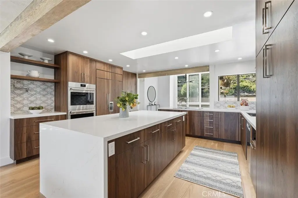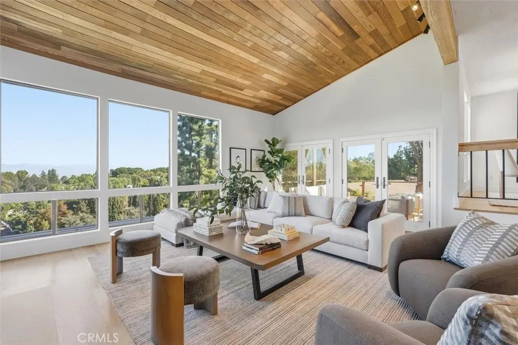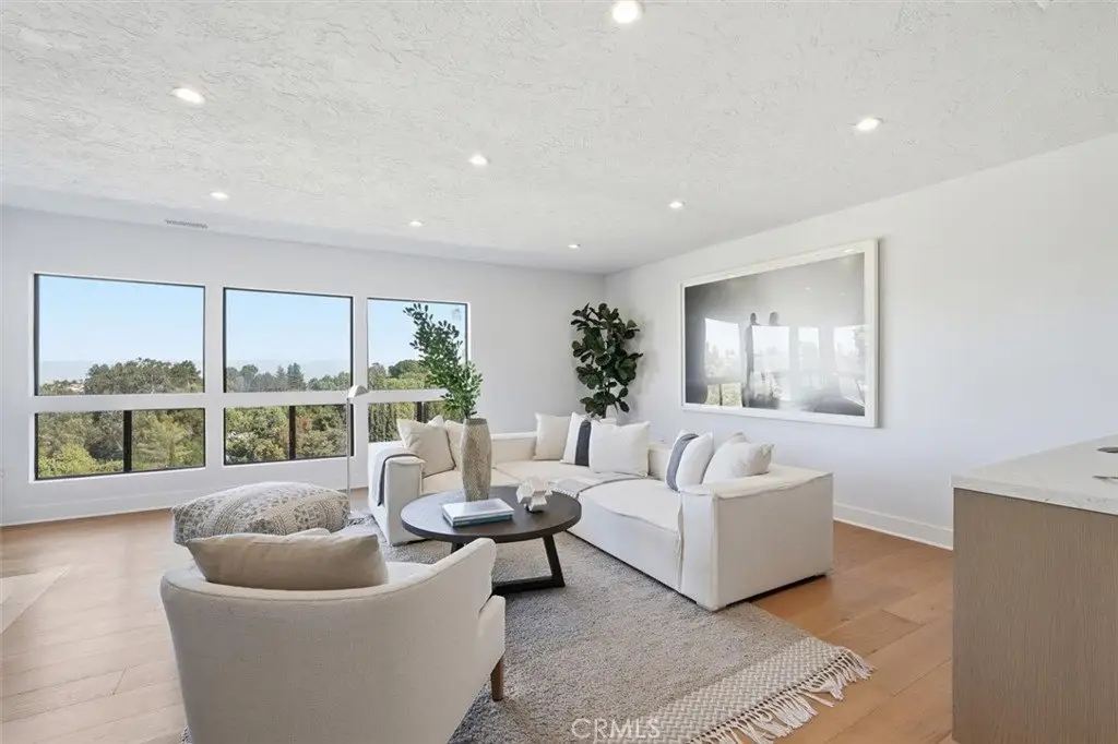 Nestled in the quiet hills of Rancho Palos Verdes, this is the private luxury home you have been waiting for. Boasting stunning views and elegant finishes throughout, this home is a true retreat where you can unwind from bright, peaceful mornings to golden, sunlit evenings. Set at the end of a tree-lined cul-de-sac and private driveway, this extensively remodeled modern residence blends timeless design with thoughtful craftsmanship. Every detail has been carefully chosen to create a home that is elevated, warm, and inviting. Surrounded by nature and framed by panoramic downtown and city-light views, this property offers a sense of calm and seclusion that is rare to find. Resting on over half an acre, the flexible floor plan includes four bedrooms, formal living and dining rooms, a generous family room boasting serene views, and a versatile flex space ideal for an office, media room, or home gym. The gourmet kitchen is a showpiece with Subzero and Wolf appliances, large island perfect for entertaining, and built-in cabinetry throughout. The spacious primary suite offers vaulted ceilings, sweeping city views. The primary bath features a freestanding soaking tub and an expansive glass-enclosed shower, creating a spa-like atmosphere. Each bathroom features modern finishes and attention to detail. Additional highlights include engineered hardwood flooring, thoughtfully placed lighting, and custom built-ins throughout. Outside, multiple patios and deck provide calm spaces for dining and entertaining, complemented by a hot tub and lush landscaping. A three-car garage plus a large driveway provides ample parking for guests. Conveniently located near Peninsula Center’s shops and restaurants and within the award-winning Palos Verdes Peninsula school district, this home offers a perfect blend of quiet luxury, privacy, and sophistication. A rare opportunity to experience the essence of refined living.