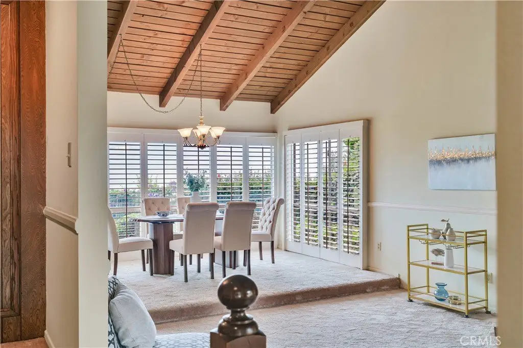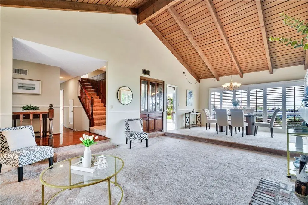 Enjoy the Coastal views and lifestyle in this wonderful home. Located within walking distance to the beautiful bluffs of the Palos Verdes Peninsula and easy access to Terranea Resort and multiple area golf courses and shopping. Featuring a 5 bedroom floor plan that is highlighted by a spacious living room with high beamed ceilings and panoramic ocean views. The kitchen / family room creates a great gathering spot for family dinners and entertaining. A lushly landscaped rear yard is ideal for outdoor living with a patio area overlooking the pacific ocean and catalina island.