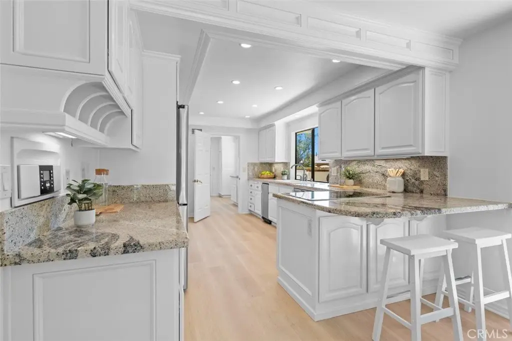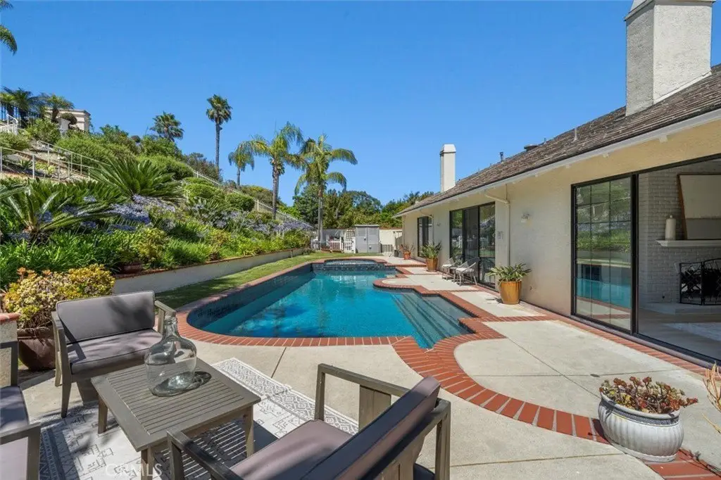 PRICE REDUCED...ISLAND VIEW HOME...stunning Single-Level home located in a highly sought-after Island View Community. This 4 Bedroom, 3.5 Bath residence spans just under 3,000 SQFT & features a sparkling Saltwater Swimming pool & Jacuzzi surrounded by lush greenery, all nestled in a peaceful oasis. Upon entering, you are greeted by a grand entryway with a beveled glass door, stunning chandelier, and elegant marble flooring. New Interior Paint . The bright & open Living Room boasts High-Ceilings and Marble surround Gas-Fireplace, while the spacious Dining Room features a coffered ceiling, New chandelier, and crown molding. A convenient guest bathroom is located just off the entryway. The inviting Family Room adjacent to the kitchen has a gorgeous view of the backyard and includes a gas fireplace with built-in shelving and cabinets, beverage center, wetbar, and hardwood floors. The Kitchen is fully-equipped with White cabinets, Granite countertops, high-quality appliances, including a Samsung stainless refrigerator, two GE Profile microwave/convection double ovens, and a walk-in pantry. Additionally, the Breakfast bar and eat-in area is a wonderful space to enjoy the view of the camellia trees and blooming flowers while savoring your breakfast. The Primary Bedroom is spacious retreat including two walk-in closets, along with a beautiful en-suite bathroom featuring a separate bathtub and shower, and double sinks with marble vanities. Two Bedrooms include built-in bookshelves, double-mirrored closets, and a window seating area. The Remodeled Bathroom with walk-in shower and Quartz Tile Surround is located conveniently in the hallway. The 4th bedroom, located off the kitchen area, can serve as a wonderful guest room or private office space and includes a three-quarter bathroom. The laundry room is conveniently located just off the kitchen, equipped with a wash sink, and provides direct access to your 3-Car Garage with ample built-in storage. Outside, you’ll find a lovely garden with a birdbath, outdoor seating areas, swimming pool with an overflowing jacuzzi. The upper-tiered yard includes landscaping & apple, lemon, and plum trees. A Peek-a-boo Ocean view from the top tier could allow for seating to enjoy the ocean sunsets. This wonderful private & quiet community includes 2 Pickleball courts to enjoy. Walking distance to Del Cerro Park & Nature Trails. Close to the finest restaurants, shops, & Terranea Resort. Award-Winning Palos Verdes School District.