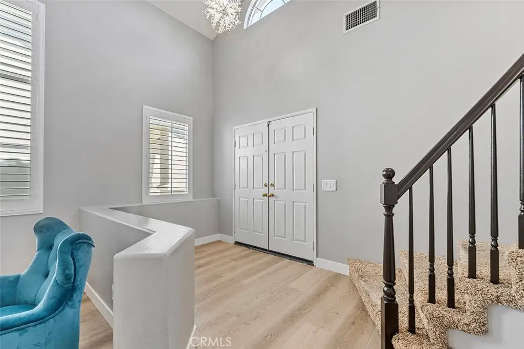 Welcome to your new home in Melinda Heights. This home is in a beautiful quiet neighborhood complete with rolling hills, parks, community pools, tennis and basketball courts, baseball and soccer fields, the beach club and lagoon and a slew of walking trails. This 4 bedroom home has a bedroom/office and full bathroom downstairs, 2 large bedrooms and a primary suite upstairs. Both the primary and hallway bathrooms have dual vanity sinks, primary bath has a separate tub and shower. The hallway bathroom has a tub/shower combo. The home features stunning cathedral ceilings and an estate winding staircase as you enter the home. The home has newer plantation shutter, beautiful tile floors in the kitchen, newer carpet on the stairs, upstairs bedrooms and family room. Laminate wood in downstairs hall, laundry and downstairs bedroom. The kitchen has an eat in area and is open to the family room complete with a fireplace. The family room leads to the backyard where there is a sparkling, river rock, 15 foot long pool and spa, perfect for evenings under the stars. There is a separate laundry room, and a 3 car garage. The home is close to coveted schools, gorgeous parks, a club house, amazing restaurants, shopping, movie theaters and freeways both toll and the 5 and 405. This home has it all!