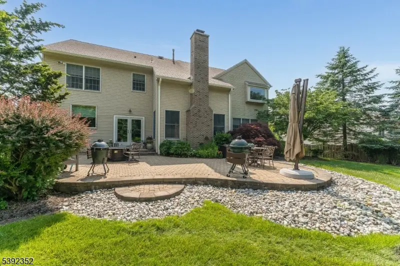 Meticulously maintained and beautifully updated, this expansive Colonial offers an open floor plan and a tranquil cul-de-sac setting backing to woods for ultimate privacy. Enjoy sunsets from the rocking chair front porch or entertain on the spacious paver patio overlooking a park-like yard. The heart of the home is the recently renovated gourmet kitchen with custom cabinetry, center island and high-end appliances, opening to a stunning two-story Family Room with floor-to-ceiling stone fireplace, reclaimed hand-hewn beams, and custom mantle - the perfect blend of rustic warmth and modern luxury. An open and inviting first floor features front and back staircases, bright and inspiring office highlighted by glass doors from France, formal living and dining rooms, powder room, laundry, and ceramic flooring enhancing the homes clean, cohesive functionality. The upper level offers a primary suite boasting three walk-in closets with custom organizers and a spa-like bath with soaking tub and double vanities. Three additional bedrooms, renovated hall bath, and large gym/media room/office space complete the second floor. The lower level extends the home's living space and includes a large, recreation room, two flex spaces, powder room, stained epoxy flooring and abundant storage. Three-car garage with built-in storage and epoxy floor. Peace of mind with new roof (2024), updated HVAC, two commercial sump pumps, new hot water heater, and septic pump (2025) approved by Health Department.