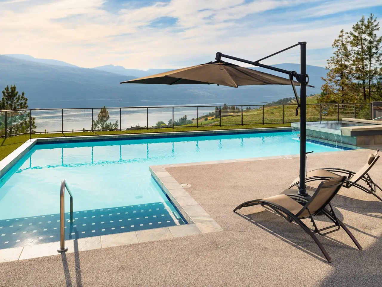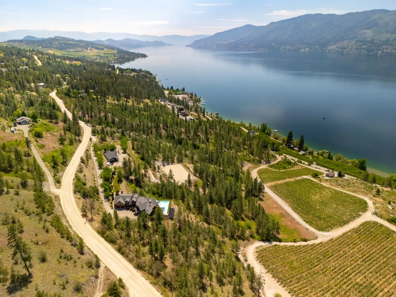 Listed by Unison Jane Hoffman Realty | Authentic, architectural timber frame masterpiece with iconic lake & vineyard views. A rare offering, this handcrafted timber frame estate blends old-world artistry with modern luxury, set on a private acreage with sweeping views of Okanagan Lake & rolling vineyards. Built without hardware, the traditional joinery, vaulted rooflines, & exposed beams exude timeless craftsmanship and structural elegance. Inside, the soaring great room anchors the home, where floor-to-ceiling Kolbe windows frame breathtaking lake vistas & invite natural light to dance across rich wood interiors & a grand stone fireplace. The chef’s kitchen is equipped with premium appliances, granite countertops, & custom cabinetry, all seamlessly integrated into the open living & dining areas, perfect for entertaining or everyday comfort. Step outside to your own resort-style oasis. A regulation-length pool with oversized lounging area and built-in water feature sets the stage for summer relaxation against a backdrop of vineyards & lake. The primary suite offers a luxurious retreat with a beautiful ensuite, private loft, & serene views. Equestrian-ready, the grounds include two horse stalls, a large paddock area, a round pen, and an outdoor riding arena; one bedroom guest suite, for extended stays or a live-in caretaker. A large garage offers ample room for vehicles, toys, or workshop use. Mature, well-maintained landscaping surrounds the property. Located just minutes from world-class wineries, golfing, & lake access, this is more than a home. It’s a legacy, handcrafted with intention & surrounded by the beauty of the Okanagan.
