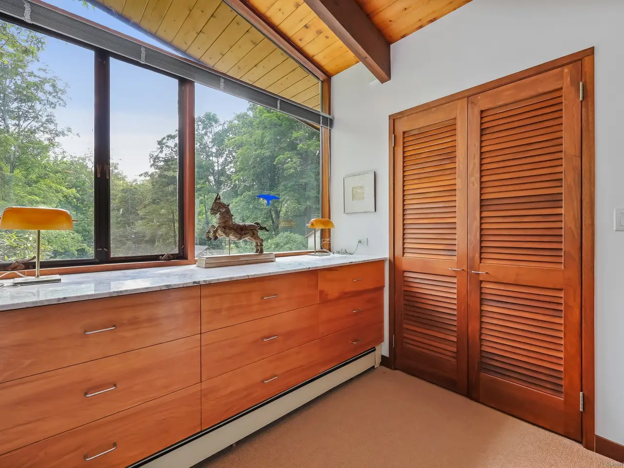 Never before on the market! A true once-in-a lifetime opportunity to own an architectural gem! This custom mid-century deck house, built and lovingly maintained by its original owners, has been thoughtfully expanded and updated over the years to meet the evolving needs of modern living-all while preserving its timeless design. Flooded withnatural light and offering unmatched privacy, this home is perfectly sited on a stunning 2.48 -acre parcel. Mature trees, lush rhododendrons and sweeping views of surrounding open space create an idyllic retreat just 6 minutes from Georgetown Center, Carluccio's market and the Redding Metro North train station. Key Features include: **A 15x50 Gunite heated lap pool with bluestone patio and outdoor lighting, **A separate 160SF pool cabana with bath and its own dedicated septic system, **A 600SF Heated and Cooled Artist/Yoga studio- Featuring Vaulted ceilings, skylights, beams, and designer lighting. **A 720SF Detached Two-Car Garage with additional storage and attached workshop/potting room, ** two large wooden framed detached sheds for wood and tool storage, **Multiple outdoor entertaining areas including a partially covered, expansive and elevated wrap-around-deck overlooking the stunning grounds and pool area. With nature views from every room and abutting acres of preserved open space, this property offers peace, inspiration and the rare chance to own a truly iconic and magical piece of West Redding history! This is your needle in a haystack The one you've been waiting for. Do not miss!!