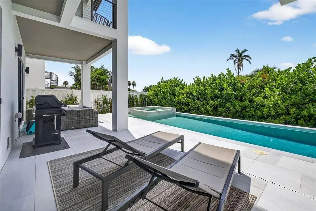 This exquisite custom-built, new construction coastal contemporary home features 4 bedrooms, 3.5 baths, and is situated in the prestigious and guard-gated Redington Shores Yacht and Tennis Club. This newly constructed, open-concept layout with 12 ft ceilings boasts an abundance of natural light and luxurious finishes throughout. You will find hurricane impact-rated windows and doors and a commercial style dual sided elevator which provides convenient access from the garage and foyer to the main living area. The expansive kitchen flows perfectly to the great room and is wonderful for entertaining, featuring high-end appliances, an oversized island, Italian cabinetry, quartz counters and a spacious dining area. The primary bedroom is well-appointed with a rich walk-in closet, a grand shower, floating cabinetry, and a soaking tub. There are 2 generous sized guest bedrooms with walk-in closets, and en suites. The home also includes a fourth bedroom currently being used as an office and laundry room with ample storage. The first floor offers an abundance of bonus space. Please call for a copy of the floor plan and to discuss the endless design possibilities. You will enjoy indoor/outdoor living on the spacious balcony or terrace, which overlooks the heated or cooled saltwater pool and spa, perfect for year-round enjoyment. The home is located in a resort-style community just steps away from the Beach and offers a range of amenities that set it apart from other communities in the area. These include 24-hour security, tennis and pickleball courts, a clubhouse with a fitness center, a community spa, a pool, and a kayak/paddleboard launch, as well as a fishing dock. The location of this home offers easy walking or golf cart access to the beach, many restaurants, bars, shops and the Redington Village. Nearby is Tampa International Airport, Downtown St. Petersburg, pro sports stadiums, entertainment, museums and all of the BEST that Tampa Bay has to offer! Deeded docks with lifts are able to be purchased by residents when available.
