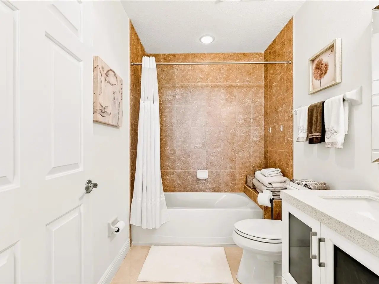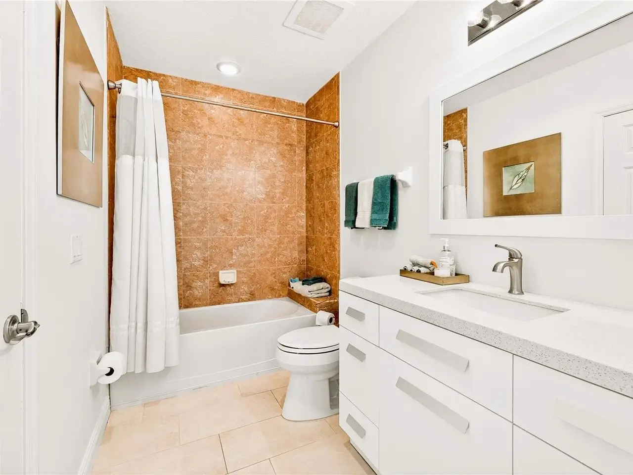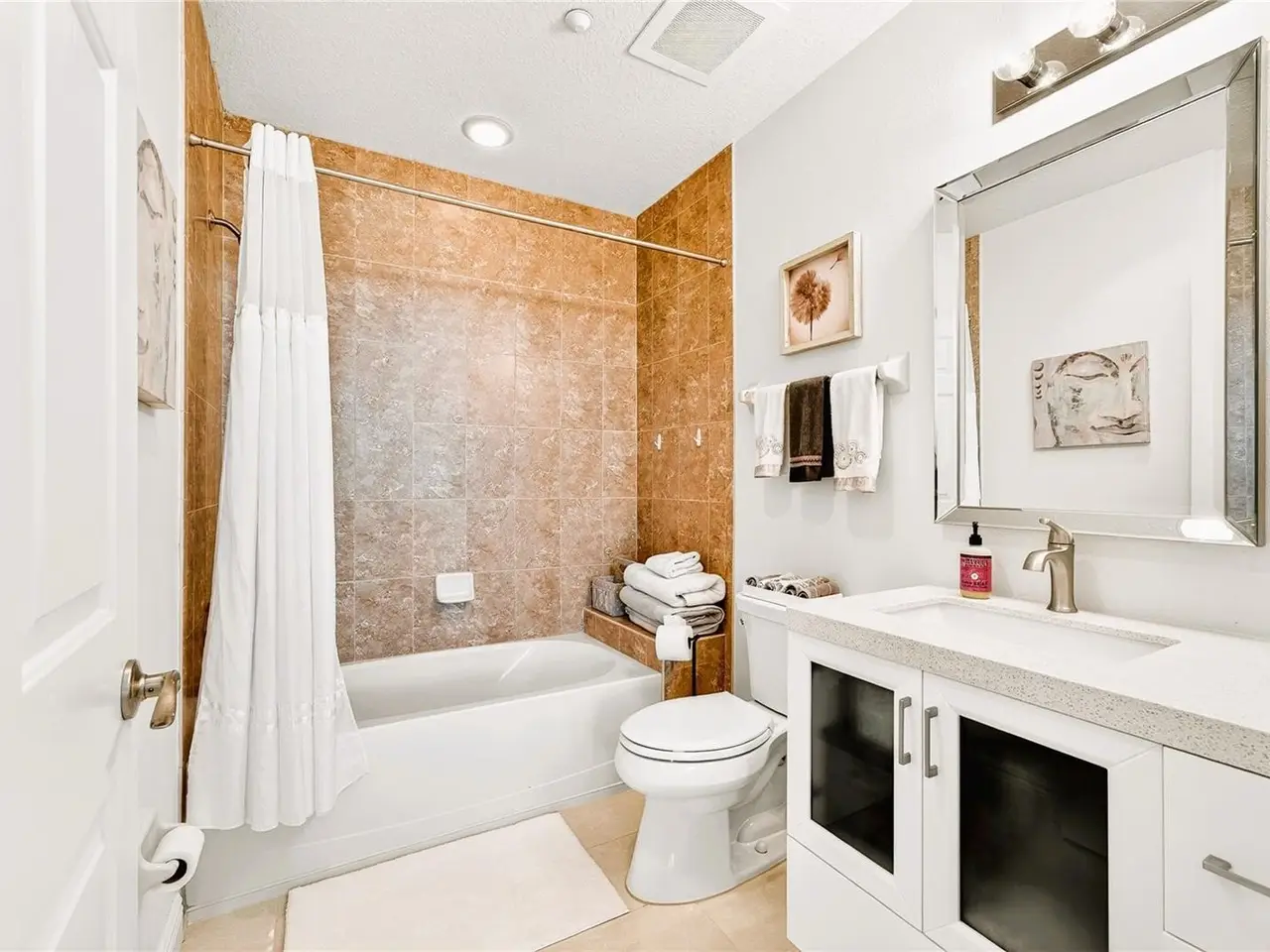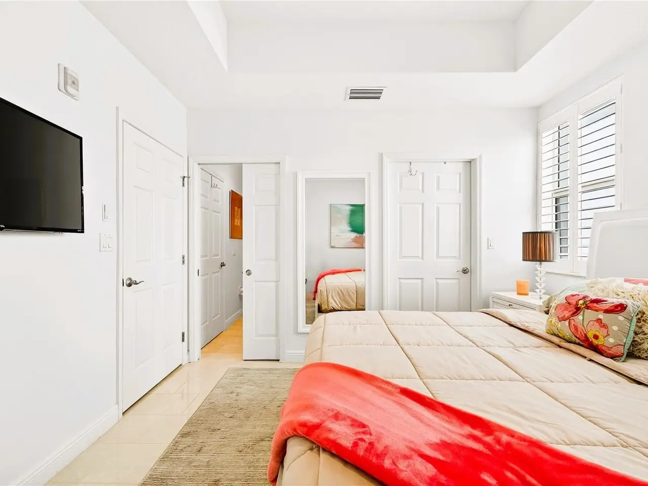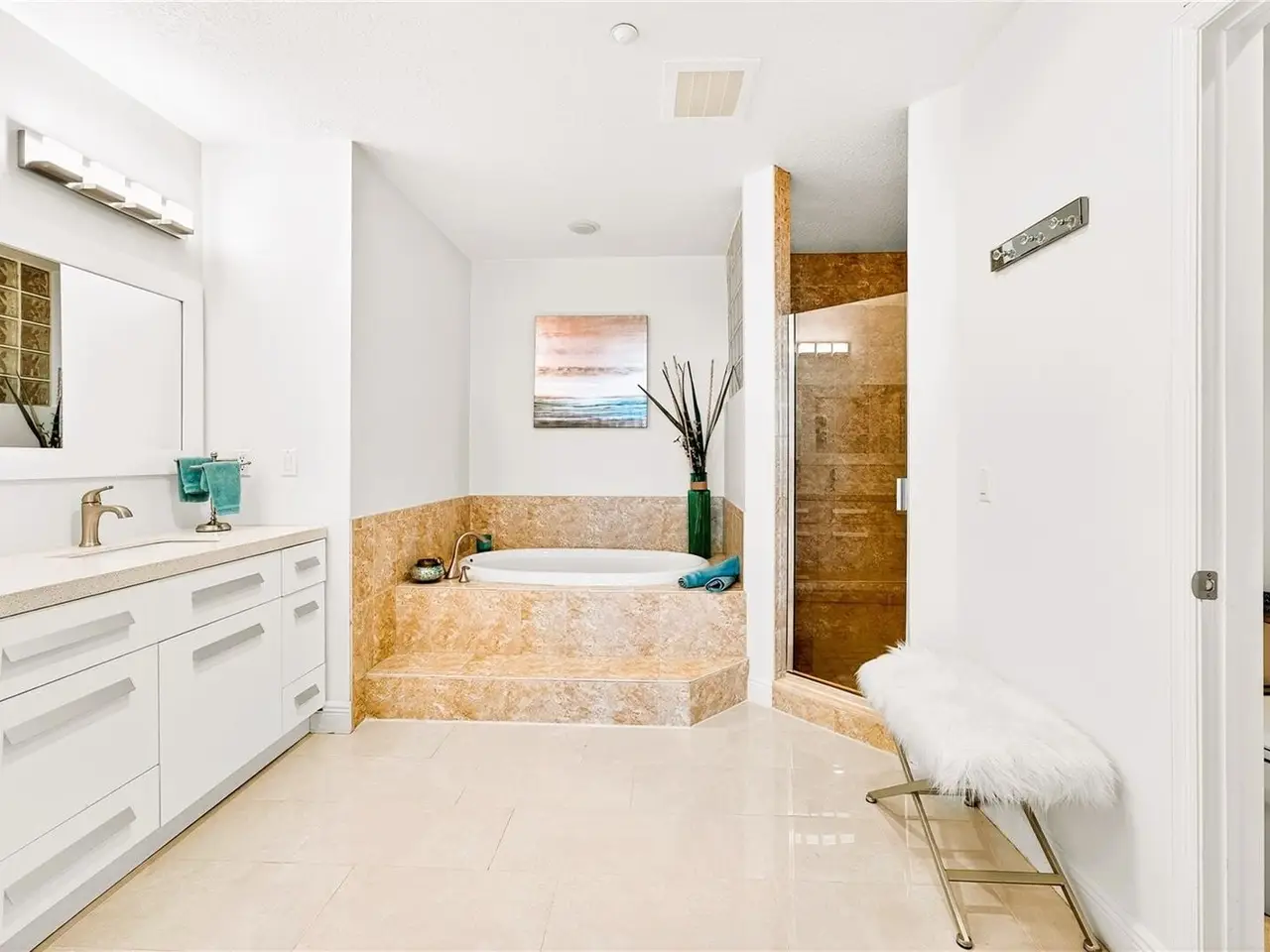 Tray ceilings, designer lighting, and polished tile floors throughout