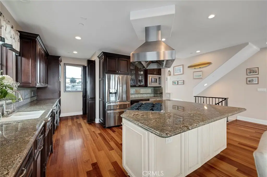 Set along the Esplanade, the ultimate address in Redondo Beach, this exceptional home combines the serenity of ocean views from the living space with the vibrancy of Riviera Village just moments away. A thoughtfully designed layout balances sophistication and privacy, beginning at the entry where the two car garage connects directly to the home along with a bedroom and full bath that can serve as a guest suite, home office, or private retreat. Continuing upstairs, the second level offers another bedroom with high ceilings, its own full bath, and a walk-in closet. The hallway leads to your expansive primary suite. Facing west, this tranquil sanctuary captures the sound of the ocean and features three closets including a walk-in. The ensuite bath is spa-inspired, finished in neutral stone with dual vanities, a soaking tub, and a separate shower. On the top floor, the main living area is highlighted by beautiful ocean views and natural lighting through large windows, with an open concept design that seamlessly connects the living and dining rooms to a chef’s kitchen, complete with a center island and bar seating. Granite countertops, Viking stainless steel appliances, abundant custom cabinetry, and a wine fridge are ideal for preparing meals, entertaining guests, or simply enjoying the good life at the coast. The dining area opens to a wraparound balcony bringing in ocean breezes, more views, and extending the indoor-outdoor flow. Crowning the residence is your spacious rooftop deck with true 360-degree vistas, the Pacific and coastline to the west, Palos Verdes hills to the south, the Redondo Pier to the north, and palm trees peppered with lights when looking into town. From morning coffee to sunset gatherings and nights under the stars, this is a setting that elevates every occasion. Beyond the home, the lifestyle is equally compelling. Step outside to the sand across the street, or head a couple of blocks to Riviera Village with its charming boutiques, sidewalk cafés, and vibrant dining scene. Enjoy the ocean air, take a yoga class on Catalina Avenue, ride your bike along the path, pick up groceries at Trader Joe’s or the Farmers Market, and meet friends at local eateries, all within minutes of your front door. Situated in the award-winning Redondo Beach Unified School District, this prestigious home combines coastal surroundings with refined living in a close-knit community.