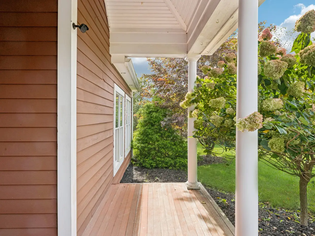 Experience the perfect harmony of sophistication and comfort in this captivating post-modern residence, where every detail has been artfully curated to elevate East End living. Comfortably set on 1.4 acres, this 3,500-square-foot home combines architectural artistry with refined amenities. Hardwood floors extend throughout, complemented by soaring cathedral ceilings and recessed lighting that create a luminous, welcoming ambiance. Floor-to-ceiling Pella windows bathe the interiors in natural light, while expansive sliders dissolve the boundary between indoor and outdoor living. French doors provide both privacy and elegance as they open gracefully into the formal dining area, where timeless ceiling details further enhance the atmosphere of refinement. A rare focal point, the living room fireplace is encased in imported marble, striking a balance between uniqueness and grandeur. Arched passages add architectural artistry, while an additional entertainment space - complete with a surround-sound system - invites vibrancy and rhythm, allowing music and life to flow effortlessly throughout the open design. Each room is further distinguished by custom crown and base moldings, a showcase of craftsmanship at its finest. The first level presents three spacious bedrooms and two full baths, blending comfort with thoughtful design. A dedicated laundry/mudroom, complete with newer washer and dryer, enhances convenience alongside a central vacuum, a two-car attached garage, and a full walk-out basement. The chef’s kitchen is both functional and striking, featuring black granite countertops, a center island, and custom cabinetry. Outfitted with a Viking stove, double oven, and new Samsung stainless steel appliances, it offers the perfect stage for culinary mastery. A sunlit breakfast nook encased in Pella windows provides a serene spot to begin the day, while the formal dining room sets an elevated stage for gatherings of every scale. Upstairs, a built-in library inspires culture and contentment, while a welcoming primary suite offers a private balcony and an additional sitting area. The ensuite bath is a true sanctuary of wellness, featuring a double vanity, an Aquatic jetted soaking tub, and an E-Steam sauna/shower designed to promote relaxation and rejuvenation. An additional upstairs bedroom provides versatility - ideal as a nursery, guest room, or private office - ensuring the home adapts gracefully to evolving lifestyles. While a classic mahogany front porch offers a gracious welcome, the backyard unfolds into a private retreat reminiscent of a landscaped park. The grounds, enriched with crepe myrtles, butterfly bushes, burning bush trees, and stately rhododendrons, are framed by PVC fencing that encloses a heated saltwater vinyl pool and inviting hot tub - providing both relaxation and recreation amidst a botanical backdrop. Whether basking in the sun or savoring tranquil evenings beneath the stars, the backyard seamlessly extends the home’s aura into its natural surroundings. Beyond the property, Remsenburg offers a lifestyle unlike any other—from sailing at the Westhampton Yacht Squadron to sun-filled days at Pike’s, Cupsogue, or Ponquogue Beach, every moment feels immersive. Whether admiring art at the historic Remsenburg Academy, enjoying live performances at the Westhampton Beach Performing Arts Center, or catching a film at the newly renovated Sunset Theater, the charm continues with local cafes, craft breweries, and the natural beauty of the Quogue Wildlife Refuge. Each day presents a new opportunity to savor coastal indulgence. Remsenburg - the hidden diamond of the East End, where elegance, community, and seamless indoor-outdoor living create a lifestyle filled with brilliance for your aspirations to shine.