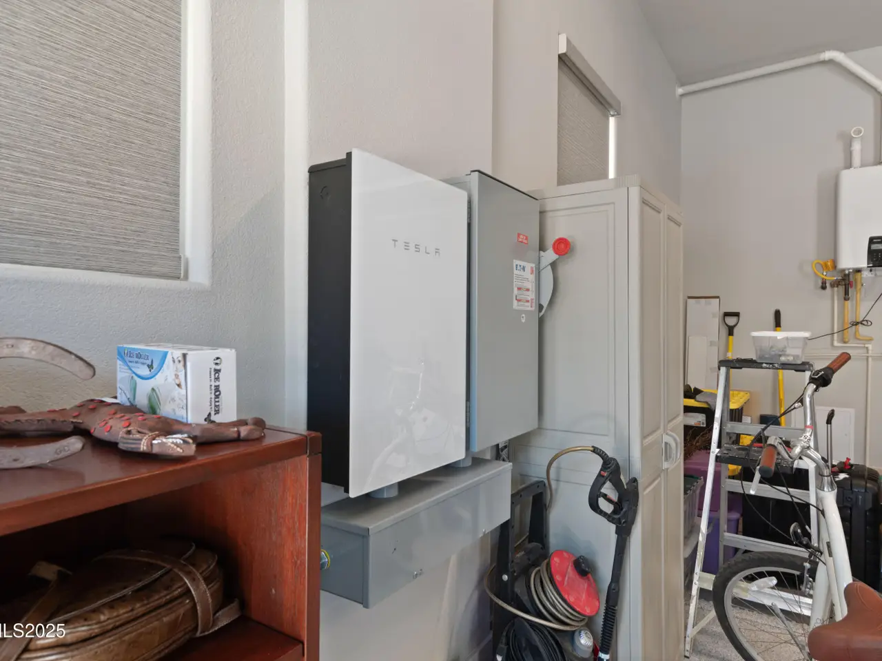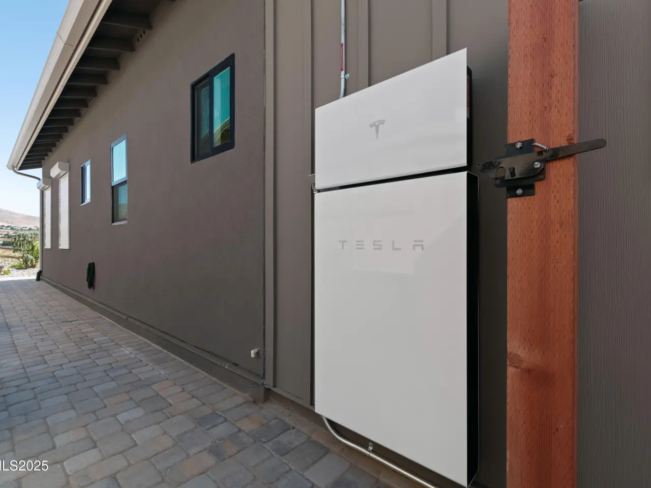 Welcome to your dream home! This beautifully crafted Brae home in the sought-after Somersett community is better than new, offering one of the most breathtaking views in the area. With its modern industrial style, this residence perfectly blends aesthetic appeal with functionality. Step inside to discover an inviting open floor plan designed for seamless entertaining. The expansive great room features a western wall that opens directly to the patio, creating an ideal space for gatherings while enjoying protected outdoor living. The gourmet kitchen is a chef's delight, showcasing a generous stone countertop, elegant dining area complete with a chandelier, and a full surround sound built-in speaker system, ensuring every gathering is a memorable experience. This home exemplifies the meaning of a Great room concept, with the center piece being a 70 inch Linear fireplace. With a 75 in TV above and built in Marantz system organizer and built in Surround sound speakers. This home boasts three spacious ensuite bedrooms, including an oversized master suite featuring his and hers built-in closets and exterior hurricane shutters for complete nighttime blackout. This home is Equipped with a 15 kW solar roof system and an 8.6 kW Powerwall, you can enjoy peace of mind during power outages. No detail has been overlooked in this meticulously designed home. Step outside to the low-maintenance back patio, adorned with desert landscaping, a built-in gas barbecue, and an electric fire pit with a built-in gas line. The covered patio area is enhanced with low-voltage outdoor lighting and speakers, perfect for evenings under the stars. The 3 garage is oversized and fully insulated including the doors and the floor has an industrial Polymeric coating. There are also high storage racks as well as large built in steel storage cabinets. This home is a true gem, with a comprehensive list of upgrades available attached for review. Don't miss the chance to own a piece of luxury in Somersett!