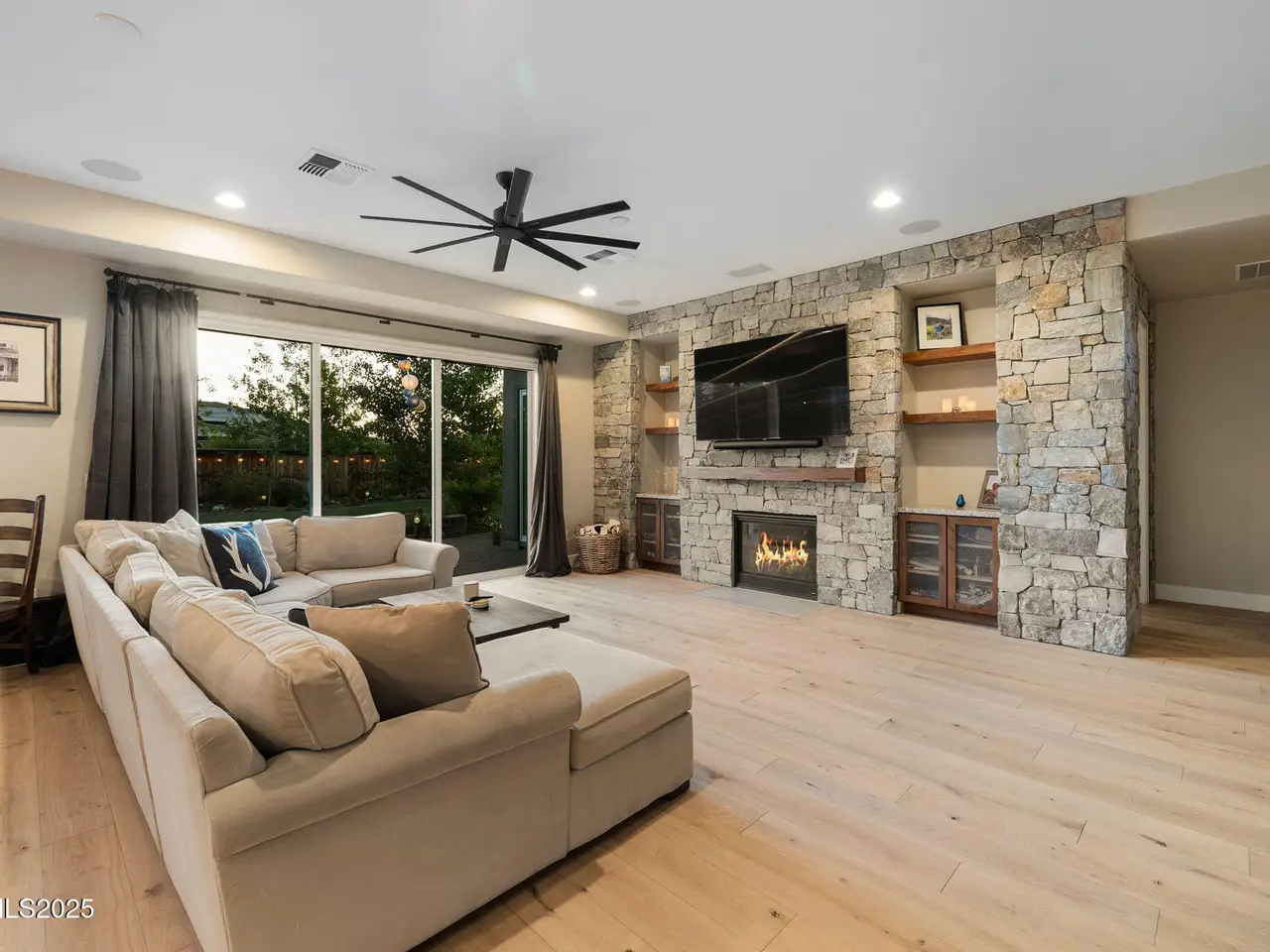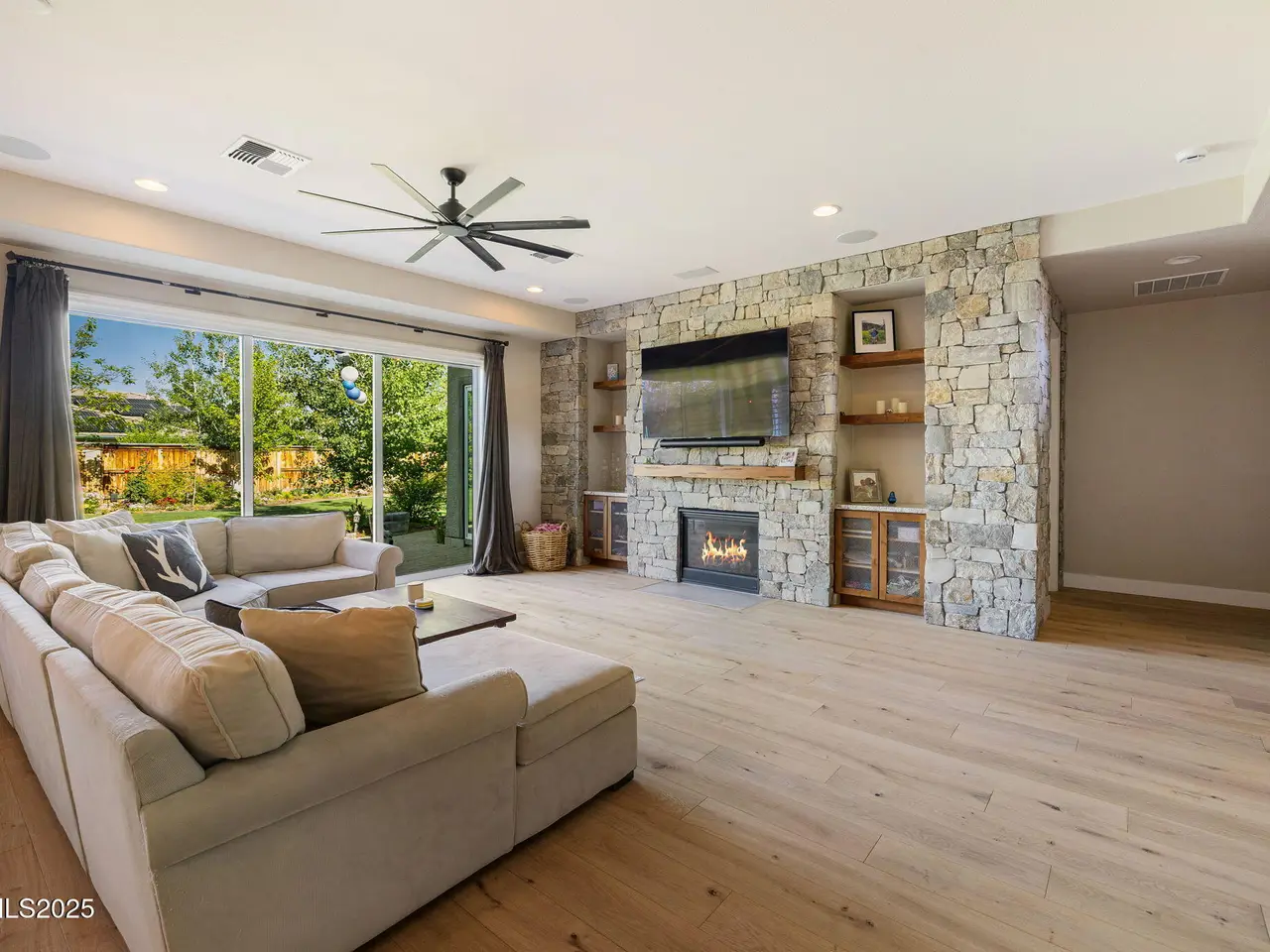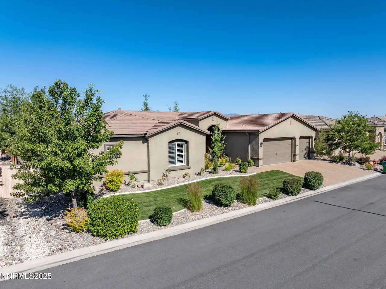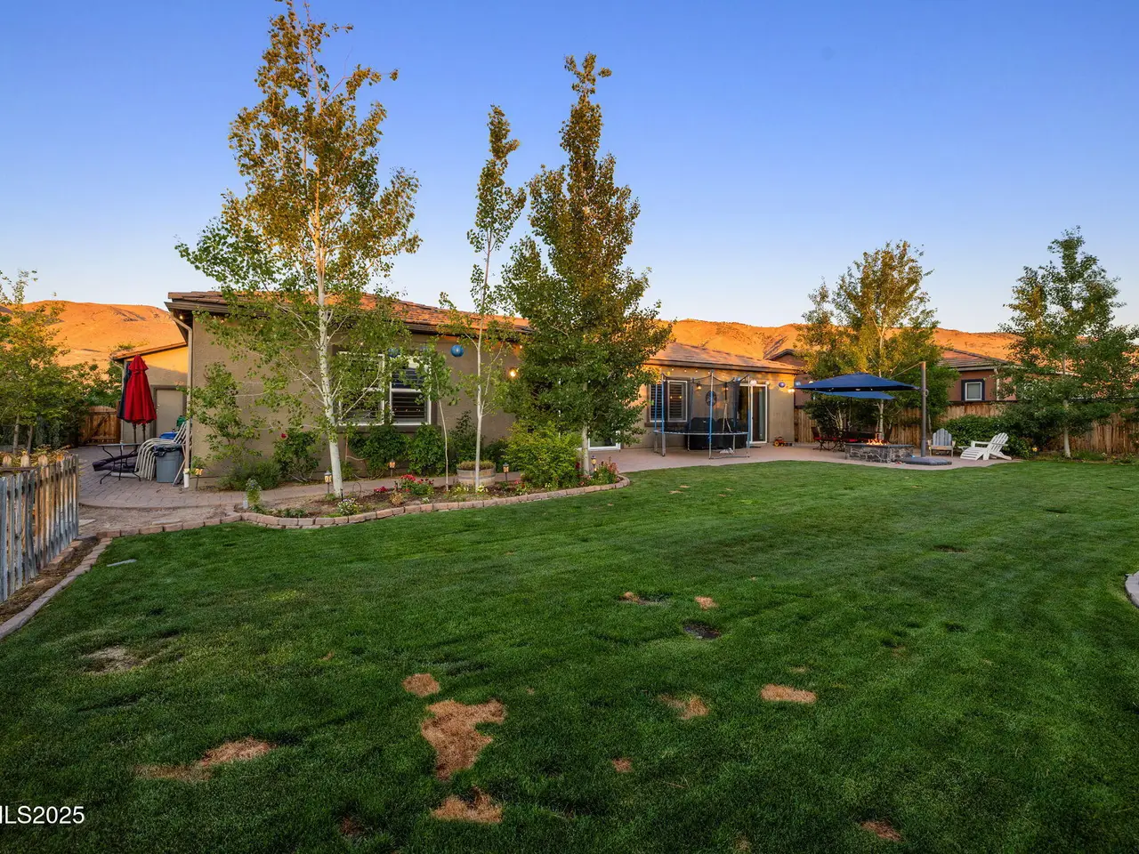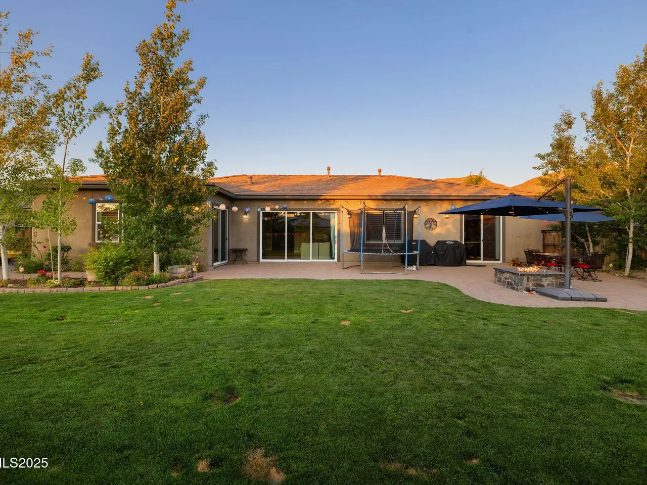 Welcome to this bright, open home in Saddle Ridge, a 24-hour gated community within the sought after Damonte Ranch development—offering both security and resort-style living. Natural light pours through wood floors into an open-concept great room, dining area, and kitchen that is perfect for daily family routines and casual gatherings. The private primary suite features a walk-in closet and serene en-suite bath, while a separate guest room and full bath add flexibility. Two additional bedrooms share a Jack and Jill bathroom, offering privacy and versatility. Step outside to your lush and oversized backyard, complete with built-in fire pit— an ideal backdrop for year-round outdoor enjoyment and a safe and fun haven for kids to play and grow. As a resident, enjoy exclusive access to a sparkling community pool, tennis and basketball courts, playgrounds, and scenic walking trails all just steps from your door. With a smart layout and a kid-friendly community, this home is ready to grow with your family.