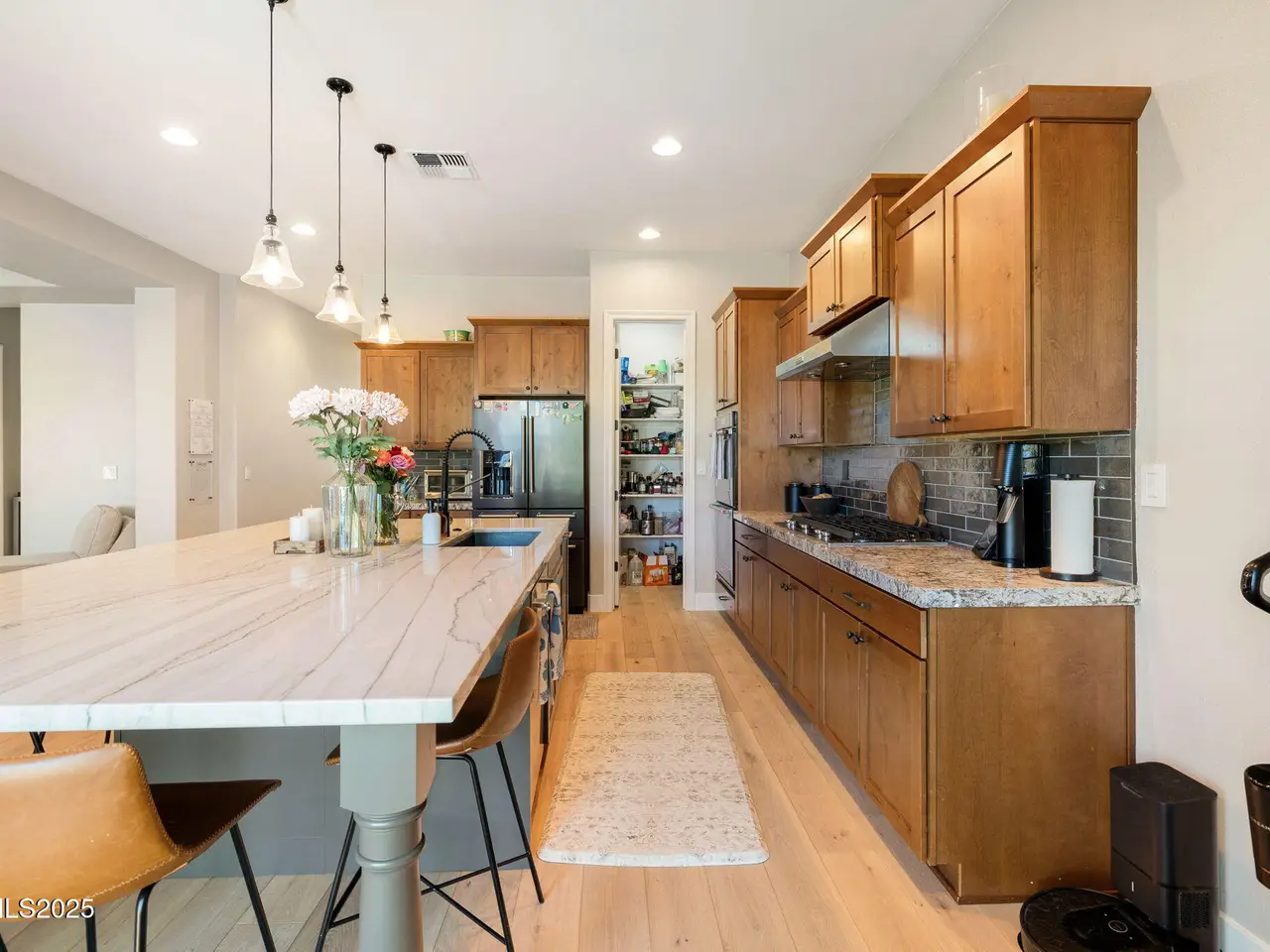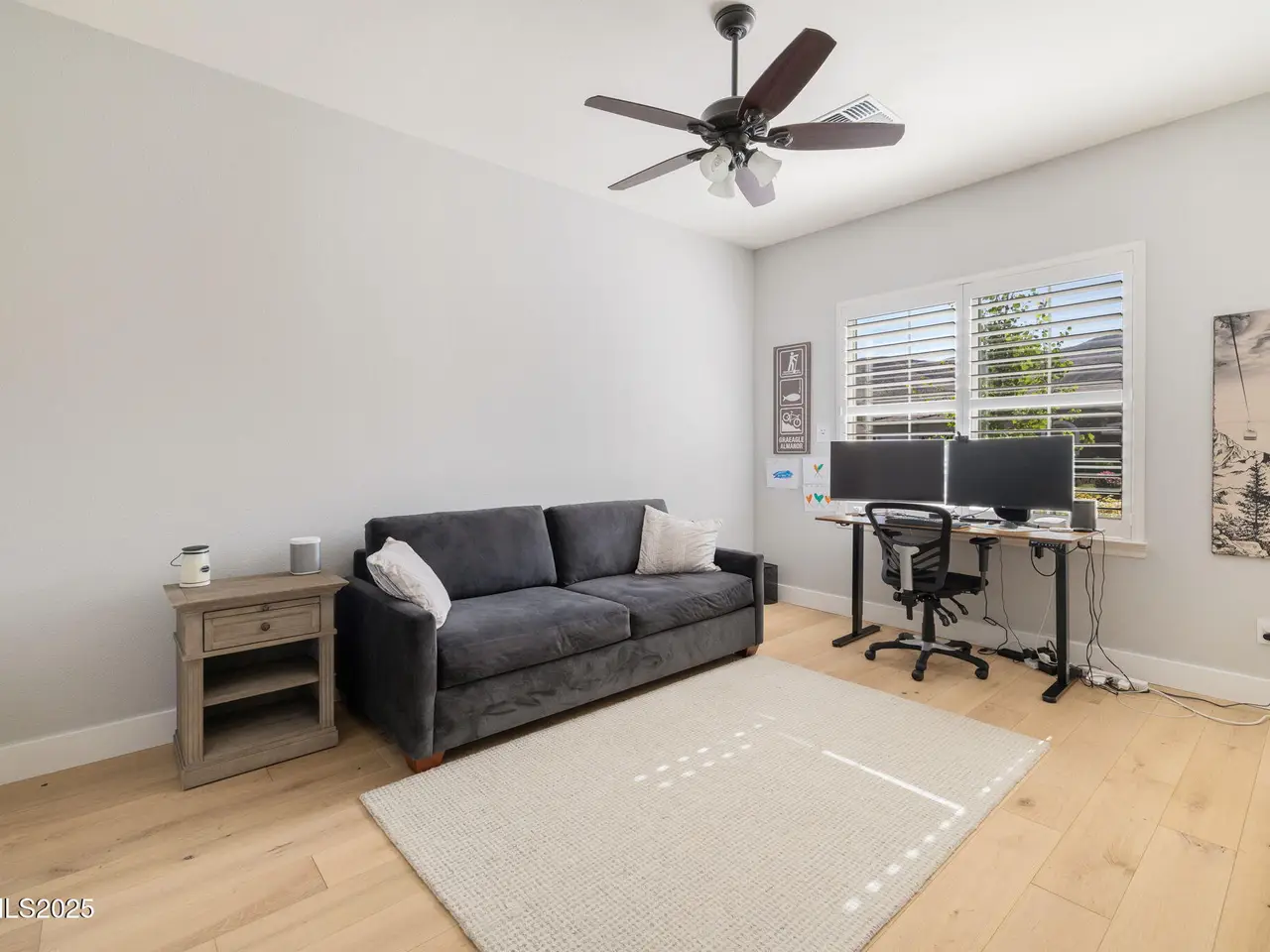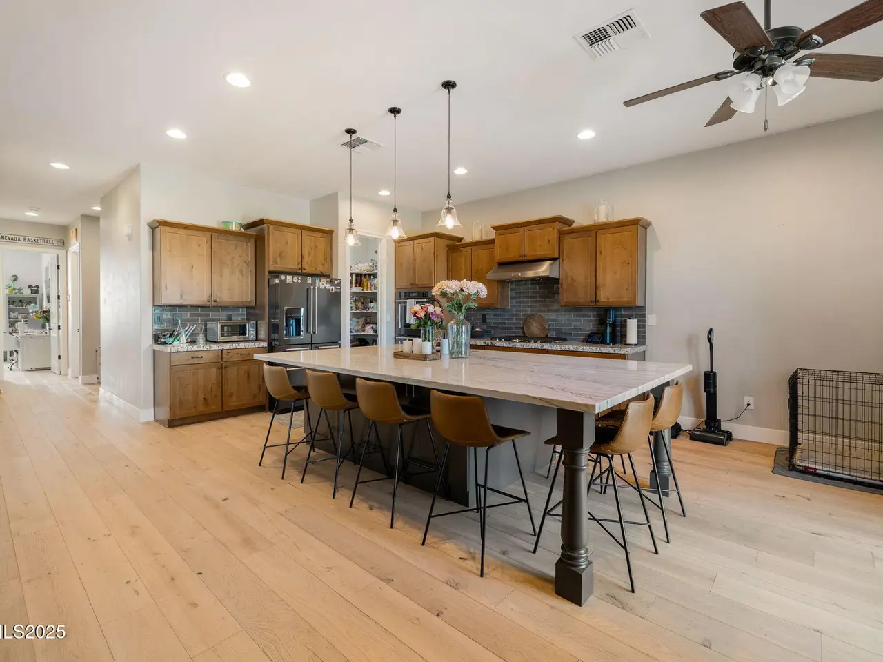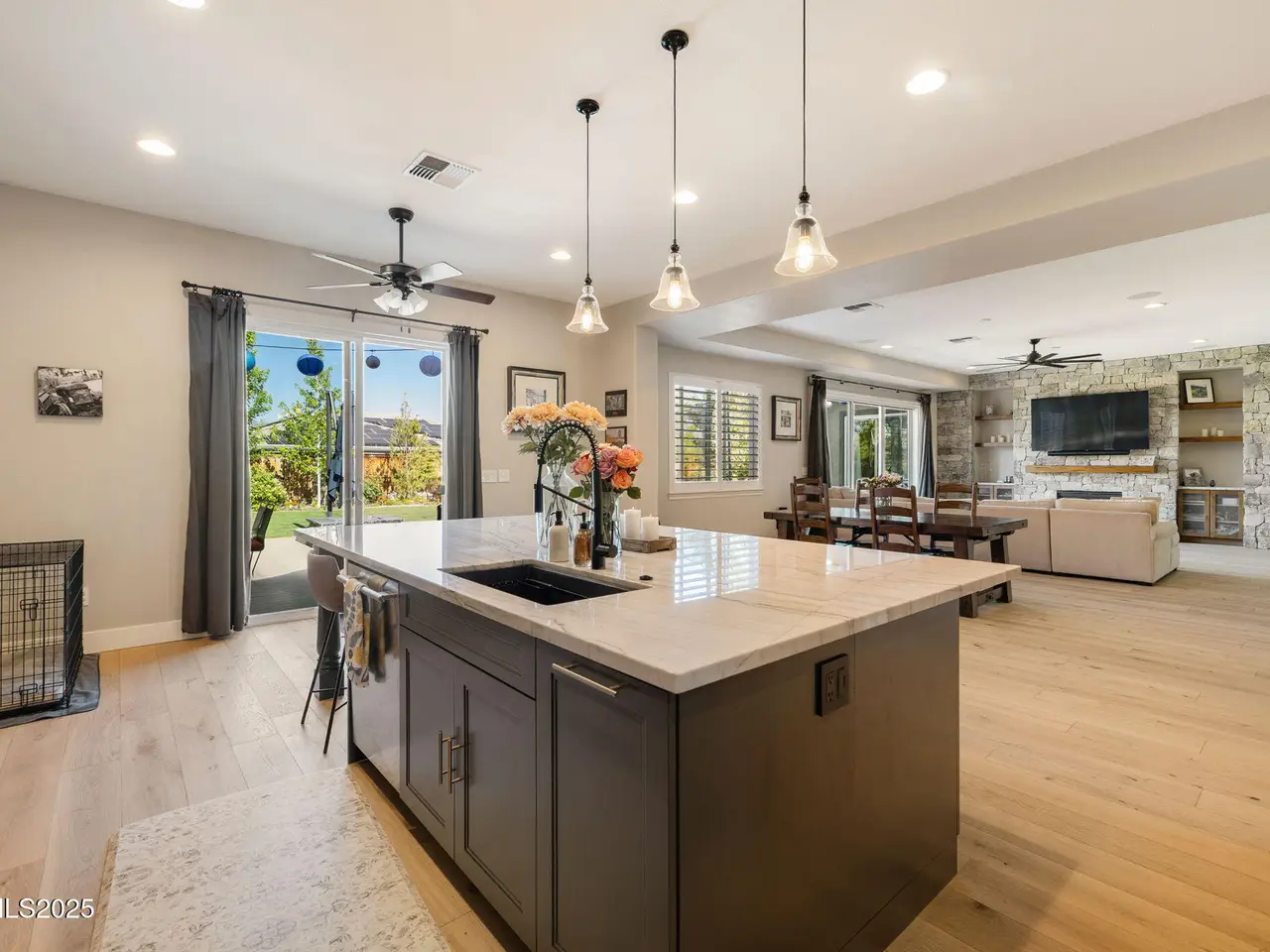 Welcome to this bright, open home in Saddle Ridge, a 24-hour gated community within the sought after Damonte Ranch development—offering both security and resort-style living. Natural light pours through wood floors into an open-concept great room, dining area, and kitchen that is perfect for daily family routines and casual gatherings. The private primary suite features a walk-in closet and serene en-suite bath, while a separate guest room and full bath add flexibility. Two additional bedrooms share a Jack and Jill bathroom, offering privacy and versatility. Step outside to your lush and oversized backyard, complete with built-in fire pit— an ideal backdrop for year-round outdoor enjoyment and a safe and fun haven for kids to play and grow. As a resident, enjoy exclusive access to a sparkling community pool, tennis and basketball courts, playgrounds, and scenic walking trails all just steps from your door. With a smart layout and a kid-friendly community, this home is ready to grow with your family.