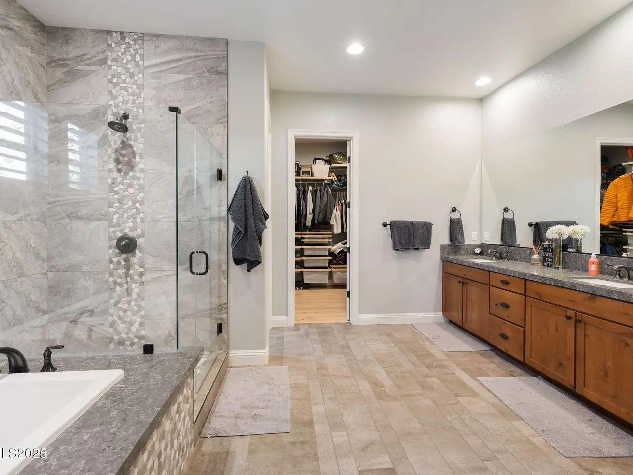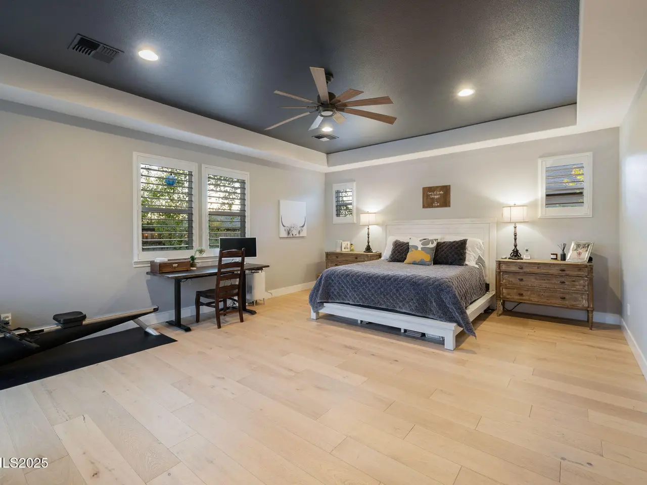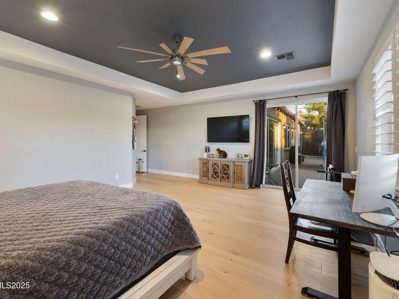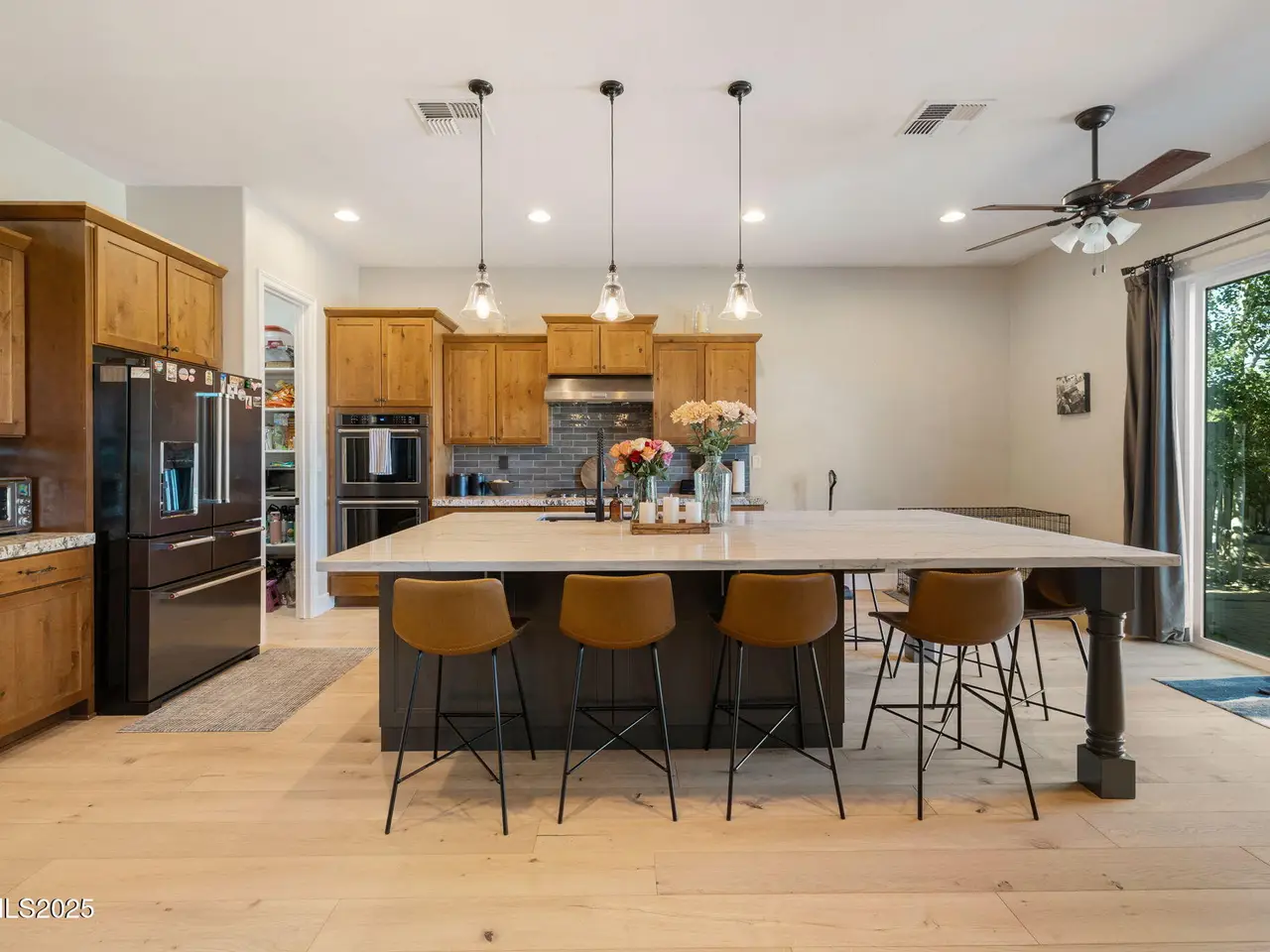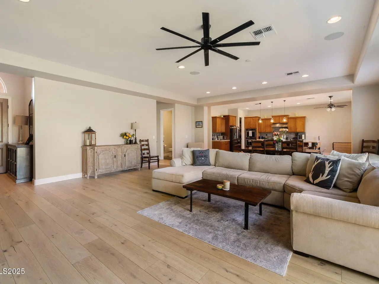 Welcome to this bright, open home in Saddle Ridge, a 24-hour gated community within the sought after Damonte Ranch development—offering both security and resort-style living. Natural light pours through wood floors into an open-concept great room, dining area, and kitchen that is perfect for daily family routines and casual gatherings. The private primary suite features a walk-in closet and serene en-suite bath, while a separate guest room and full bath add flexibility. Two additional bedrooms share a Jack and Jill bathroom, offering privacy and versatility. Step outside to your lush and oversized backyard, complete with built-in fire pit— an ideal backdrop for year-round outdoor enjoyment and a safe and fun haven for kids to play and grow. As a resident, enjoy exclusive access to a sparkling community pool, tennis and basketball courts, playgrounds, and scenic walking trails all just steps from your door. With a smart layout and a kid-friendly community, this home is ready to grow with your family.