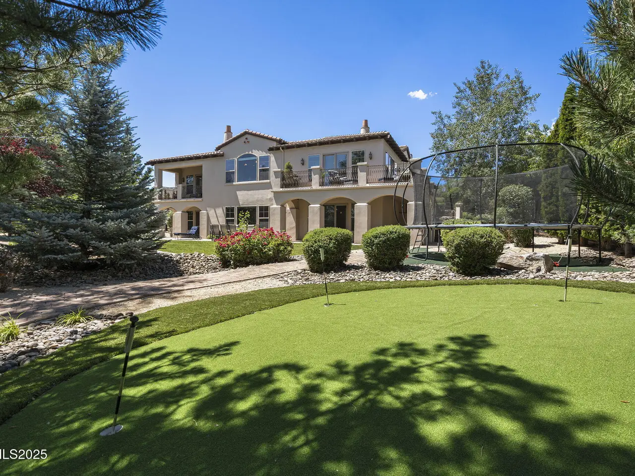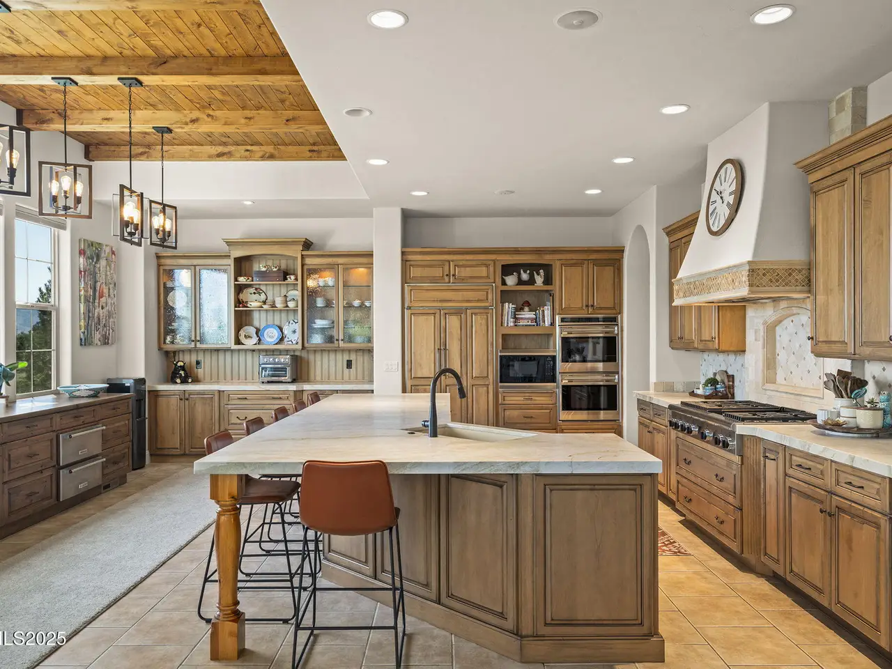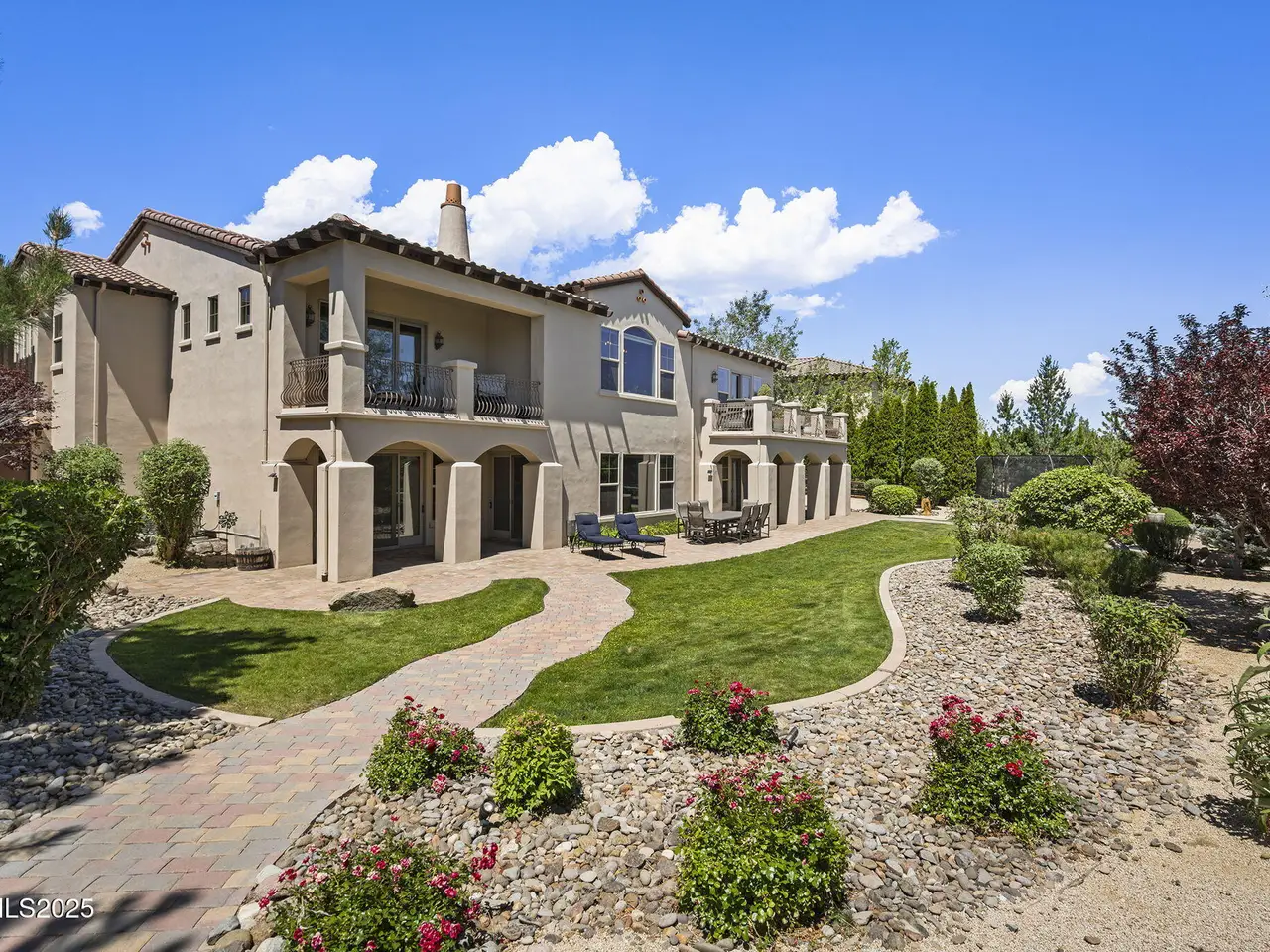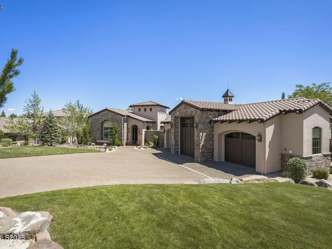 Welcome to this stunning luxury estate property, located in the prestigious Saddlehorn community. Nestled on a serene cul-de-sac, this exquisite 5 bedroom, 5 1/2 bath residence has undergone a multitude of designer renovations, offering the finest in upscale living. The chef's kitchen is a true showpiece—featuring leathered Taj Mahal quartzite countertops, two built-in refrigerators, dual Bosch dishwashers, warming drawers, added custom soft-close cabinetry, and three spacious pantries. Expanded custom built-ins elevate both functionality and elegance, making this kitchen a culinary dream. Relax and unwind in the spa-inspired primary suite on the main level which includes a steam shower, gas fireplace, custom lighting, and sophisticated tilework. Downstairs you will find a spacious in-law suite including its own kitchenette with l Leather Taj Mahal quartzite counter, new sink, dishwasher, and beverage fridge- plus a versatile bonus space perfect for a game room, home theater, or additional living quarters creating the ultimate entertaining space, and two additional private bedrooms with ensuites. Additional interior highlights include a double-sided gas fireplace between the living and great rooms, a custom bunk room with exposed beam detail, a private man cave, updated designer lighting, and extensive electrical upgrades throughout. Step outside to enjoy the resort-style grounds—complete with an expanded paver patio, grand fountain, raised vegetable gardens, privacy hedging, and a swim spa with new pump & cover, custom decking for easy maintenance access. A built-in outdoor BBQ with griddle enhances alfresco living. Premium appliances include two washers, two dryers, five beverage refrigerators, and so much more. This turnkey luxury retreat combines timeless elegance with modern comfort in one of Reno's most sought-after neighborhoods. See newly remodeled upgrade list in documents for additional information.
