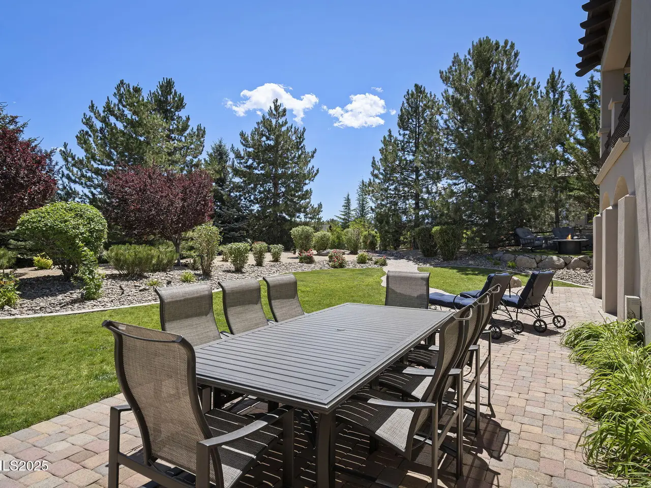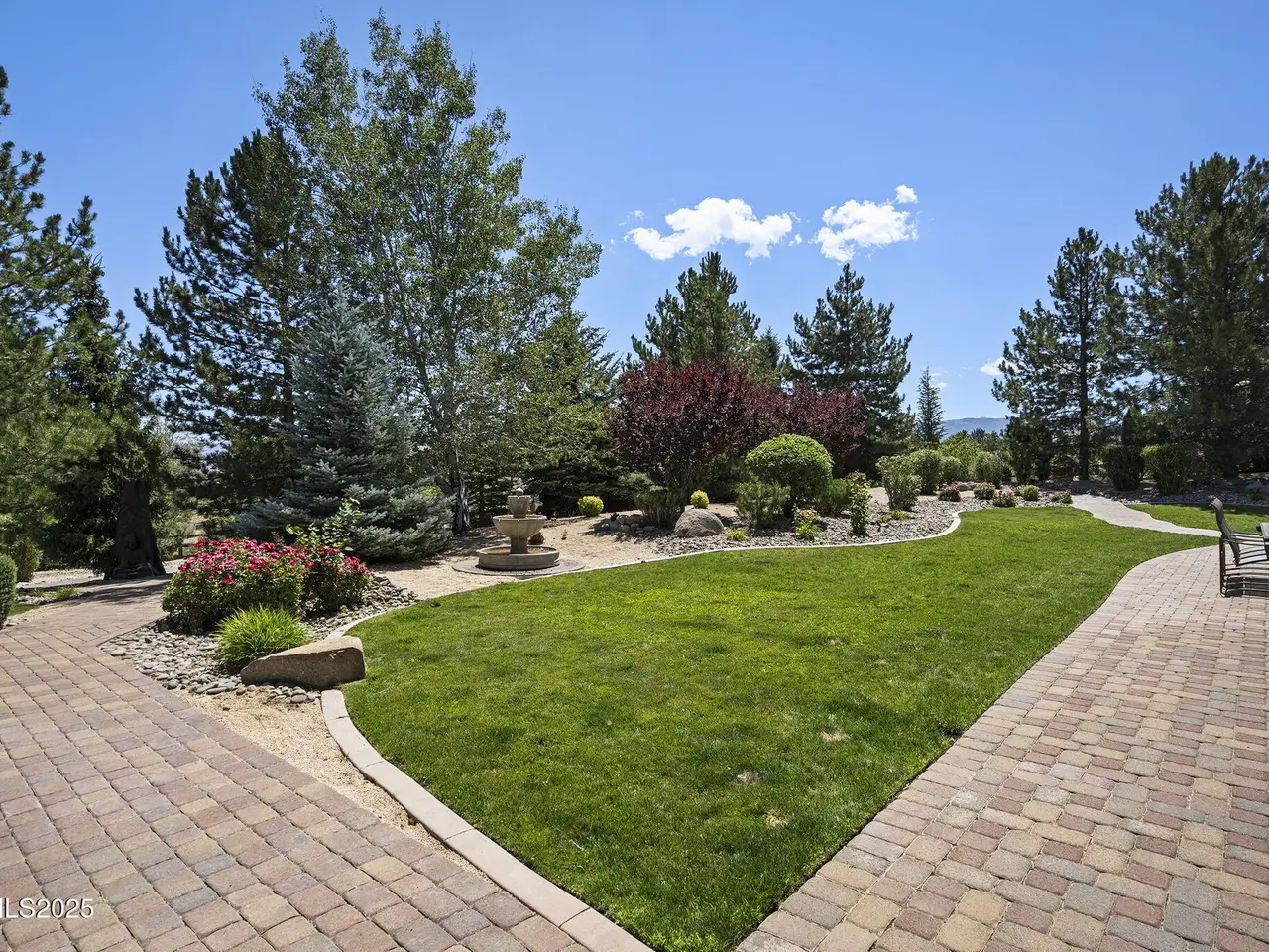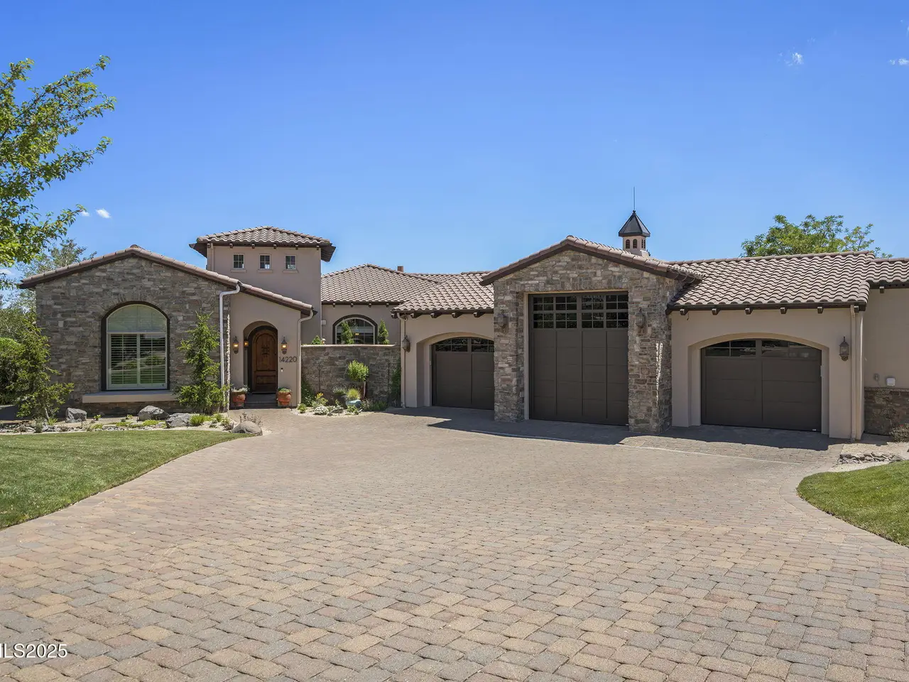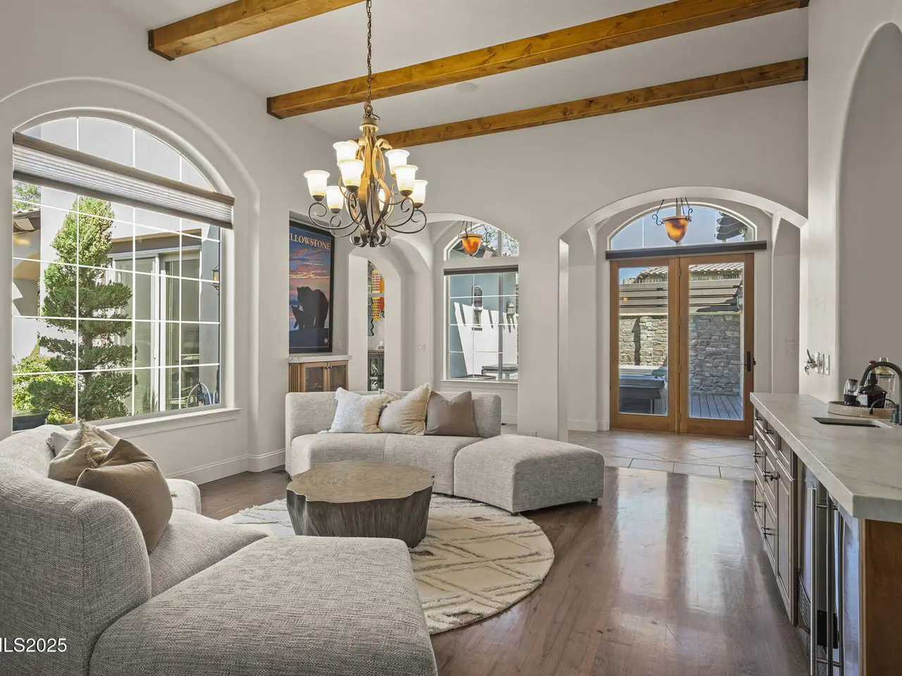 Welcome to this stunning luxury estate property, located in the prestigious Saddlehorn community. Nestled on a serene cul-de-sac, this exquisite 5 bedroom, 5 1/2 bath residence has undergone a multitude of designer renovations, offering the finest in upscale living. The chef's kitchen is a true showpiece—featuring leathered Taj Mahal quartzite countertops, two built-in refrigerators, dual Bosch dishwashers, warming drawers, added custom soft-close cabinetry, and three spacious pantries. Expanded custom built-ins elevate both functionality and elegance, making this kitchen a culinary dream. Relax and unwind in the spa-inspired primary suite on the main level which includes a steam shower, gas fireplace, custom lighting, and sophisticated tilework. Downstairs you will find a spacious in-law suite including its own kitchenette with l Leather Taj Mahal quartzite counter, new sink, dishwasher, and beverage fridge- plus a versatile bonus space perfect for a game room, home theater, or additional living quarters creating the ultimate entertaining space, and two additional private bedrooms with ensuites. Additional interior highlights include a double-sided gas fireplace between the living and great rooms, a custom bunk room with exposed beam detail, a private man cave, updated designer lighting, and extensive electrical upgrades throughout. Step outside to enjoy the resort-style grounds—complete with an expanded paver patio, grand fountain, raised vegetable gardens, privacy hedging, and a swim spa with new pump & cover, custom decking for easy maintenance access. A built-in outdoor BBQ with griddle enhances alfresco living. Premium appliances include two washers, two dryers, five beverage refrigerators, and so much more. This turnkey luxury retreat combines timeless elegance with modern comfort in one of Reno's most sought-after neighborhoods. See newly remodeled upgrade list in documents for additional information.