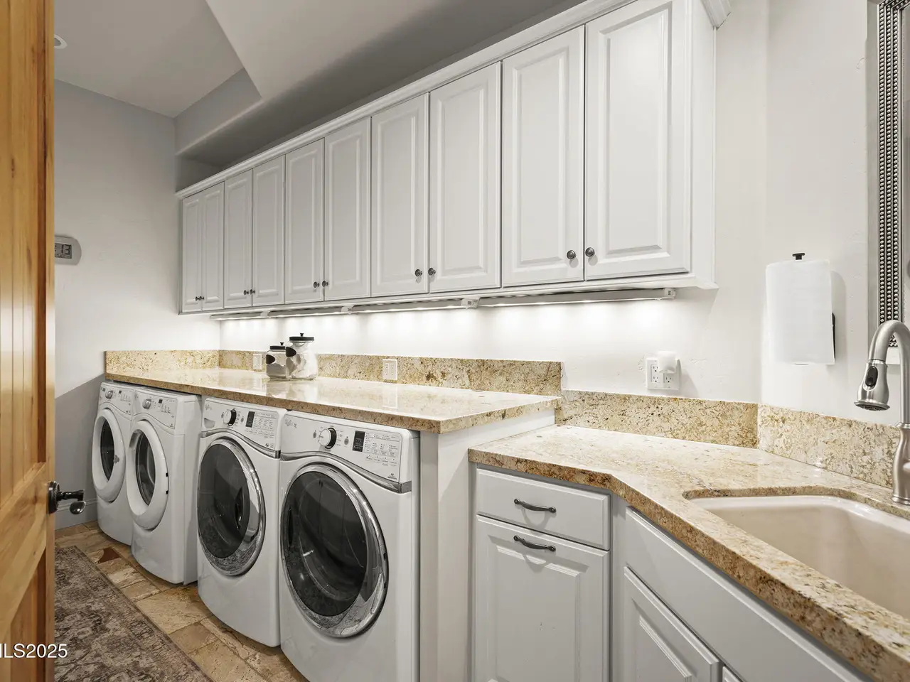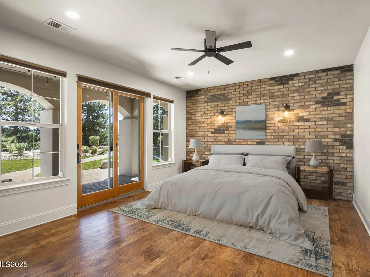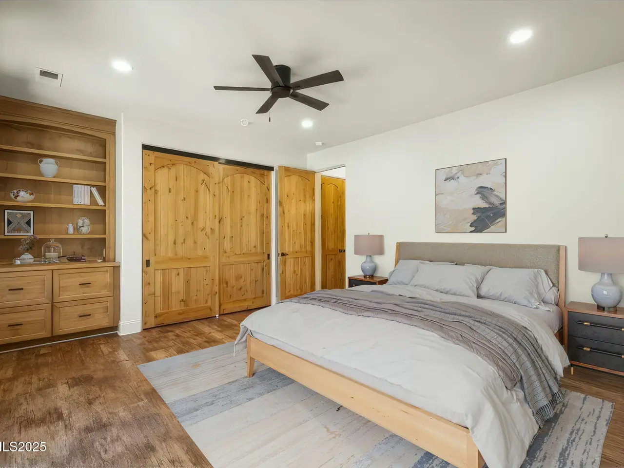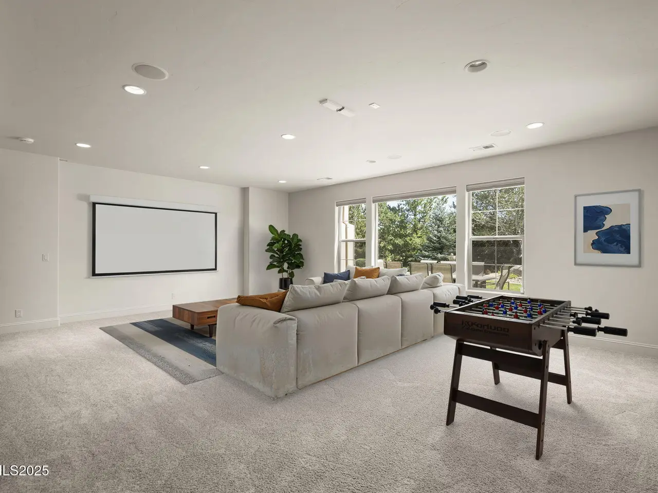 Welcome to this stunning luxury estate property, located in the prestigious Saddlehorn community. Nestled on a serene cul-de-sac, this exquisite 5 bedroom, 5 1/2 bath residence has undergone a multitude of designer renovations, offering the finest in upscale living. The chef's kitchen is a true showpiece—featuring leathered Taj Mahal quartzite countertops, two built-in refrigerators, dual Bosch dishwashers, warming drawers, added custom soft-close cabinetry, and three spacious pantries. Expanded custom built-ins elevate both functionality and elegance, making this kitchen a culinary dream. Relax and unwind in the spa-inspired primary suite on the main level which includes a steam shower, gas fireplace, custom lighting, and sophisticated tilework. Downstairs you will find a spacious in-law suite including its own kitchenette with l Leather Taj Mahal quartzite counter, new sink, dishwasher, and beverage fridge- plus a versatile bonus space perfect for a game room, home theater, or additional living quarters creating the ultimate entertaining space, and two additional private bedrooms with ensuites. Additional interior highlights include a double-sided gas fireplace between the living and great rooms, a custom bunk room with exposed beam detail, a private man cave, updated designer lighting, and extensive electrical upgrades throughout. Step outside to enjoy the resort-style grounds—complete with an expanded paver patio, grand fountain, raised vegetable gardens, privacy hedging, and a swim spa with new pump & cover, custom decking for easy maintenance access. A built-in outdoor BBQ with griddle enhances alfresco living. Premium appliances include two washers, two dryers, five beverage refrigerators, and so much more. This turnkey luxury retreat combines timeless elegance with modern comfort in one of Reno's most sought-after neighborhoods. See newly remodeled upgrade list in documents for additional information.