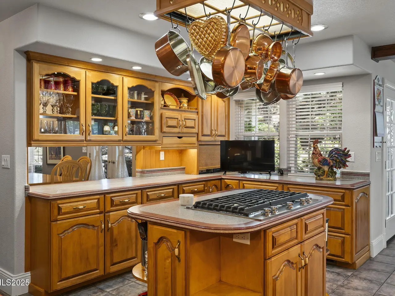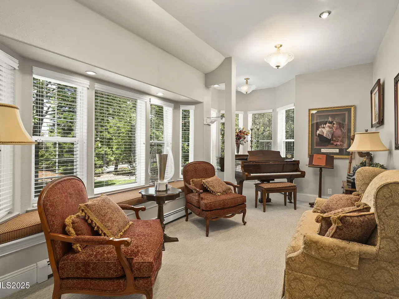 A true Victorian-inspired, custom-built home in the coveted neighborhood between Caughlin Ranch and Juniper Ridge. Enjoy the private road, without the restrictions of an HOA. This home exudes timeless charm, craftsmanship, and functionality on a beautifully landscaped 1-acre lot with mature shade trees, beautiful flower beds and true curb appeal. A quaint bridge and welcoming front porch set the tone for the warmth and character found inside. Step into a grand oak parquet entry and be greeted by handcrafted woodwork throughout, including two dramatic spiral staircases with hand-turned banisters, ornate fireplace mantles, and custom millwork. On the main level, you'll find a formal parlor, ideal as a music room or formal sitting area with a welcoming bay window seat. The entry flows into a large living room anchored by a gas fireplace and window seating, perfect for cozy gatherings. The kitchen is a chef's haven, featuring a peninsula, island cooktop, walk-in pantry, durable tile floors, and high-end, 3yr-old KitchenAid appliances, including a built-in refrigerator and oven with warming drawer. The adjacent breakfast nook opens to a covered atrium with skylights and handcrafted wood artwork, creating space for year-round gardening. Host in style with the elegant formal dining room and a connected wet bar with mini-fridge, crystal cabinetry, and ample space for entertaining—with french doors opening directly to a covered patio for effortless flow. Upstairs, the expansive primary suite is a private retreat, featuring its own staircase leading to a cozy anteroom with built-in bookshelves, private balcony, fireplace, luxurious jetted bath, walk-in closet, and a bonus flex room perfect for a nursery, home gym, or office. Three additional bedrooms offer spacious closets and comfort for family or guests. A full-sized laundry room is conveniently located upstairs with built in cabinetry for plenty of storage. Additional highlights include a 3-car epoxied garage, with one bay converted to a functional workshop. 220V power is available. The water heater and boiler are just 5 yrs old and recently serviced. This home is on septic, but city sewer runs in front of the home, creating the option to connect, if desired. The location can't be beat with proximity to the nearby Caughlin Ranch trails, the Steamboat ditch trail, Mayberry Landing, and some of the highest-rated schools within the district. Whether you're drawn to its craftsmanship, elegance, or hosting potential, this one-of-a-kind residence offers a rare combination of artistry and livability in one of Reno's most desirable locations. Schedule your private tour today!
