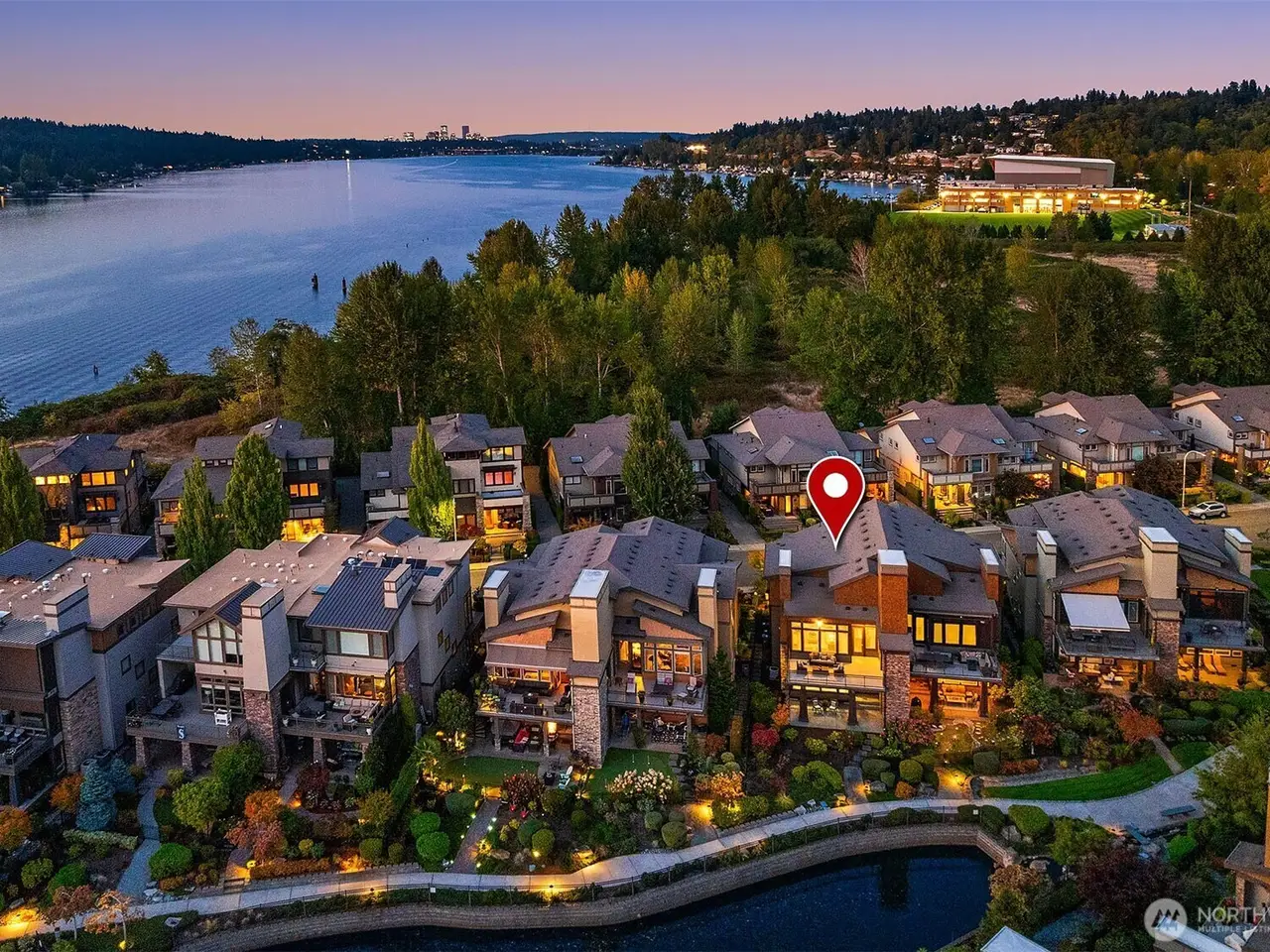 Gorgeous Barbee Mill townhome nestled on the shores of Lake Washington w/views of the lake & beautiful sunsets. Property features large windows designed to maximize sunlight & views. Floor plan includes a spacious great room, tall ceilings, a bonus room & custom finishes throughout. There are decks or patios on each level for indoor-outdoor living. The interiors feature high-end finishes; the backyard is fully fenced w/landscaping & access to the lake along a waterfront path. The owner's clubhouse provides indoor & outdoor kitchens, fire pits, waterfront seating, and a community dock. Activity trails available throughout the property & May Creek. The location is 5 miles from Bellevue w/ convenient access to I-405, SeaTac, shopping & dining.