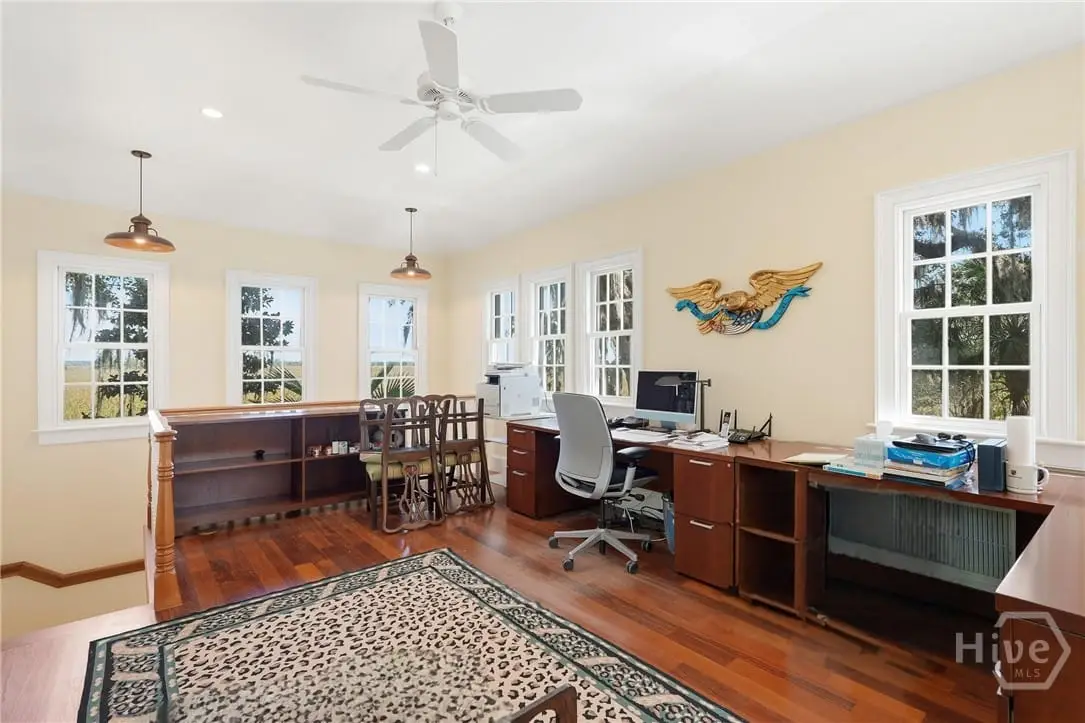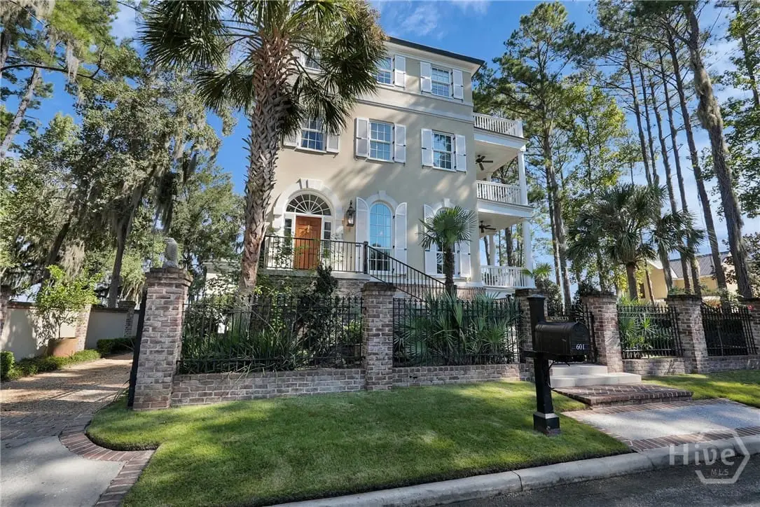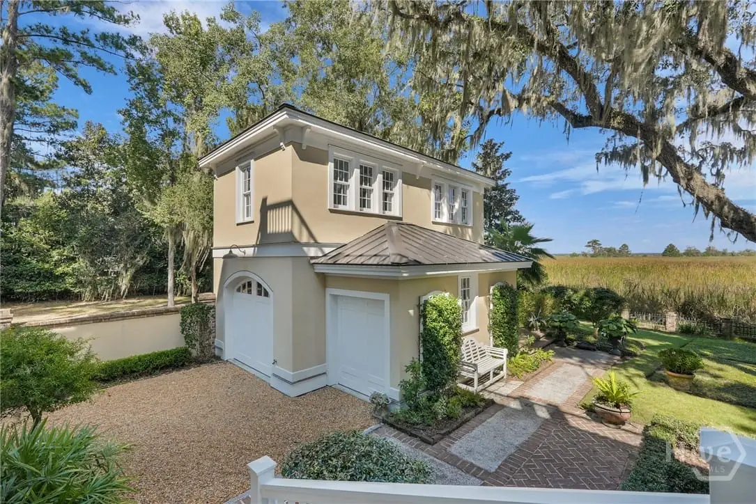 Experience timeless Lowcountry elegance in this stunning 4-bedroom, 4.5-bath home in the prestigious Ford Field and River Club of Richmond Hill. Overlooking the serene marsh and Ogeechee River, this residence offers open porches on all levels plus screened porches on the first and second for the perfect blend of indoor-outdoor living. A elevator, one-car garage, and golf cart shed add convenience, while the manicured courtyard and lush grounds create an unforgettable first impression. The main level features a library, great room with fireplace, and a kitchen ideal for entertaining. The second floor is dedicated to a luxurious primary suite with a fireplace, sitting area, and dual baths. The third level includes an office or guest retreat with full bath. Enjoy the charm of historic Savannah architecture paired with the exclusive amenities of Ford Field & River Club including golf, deepwater marina, equestrian center, trails, and more!