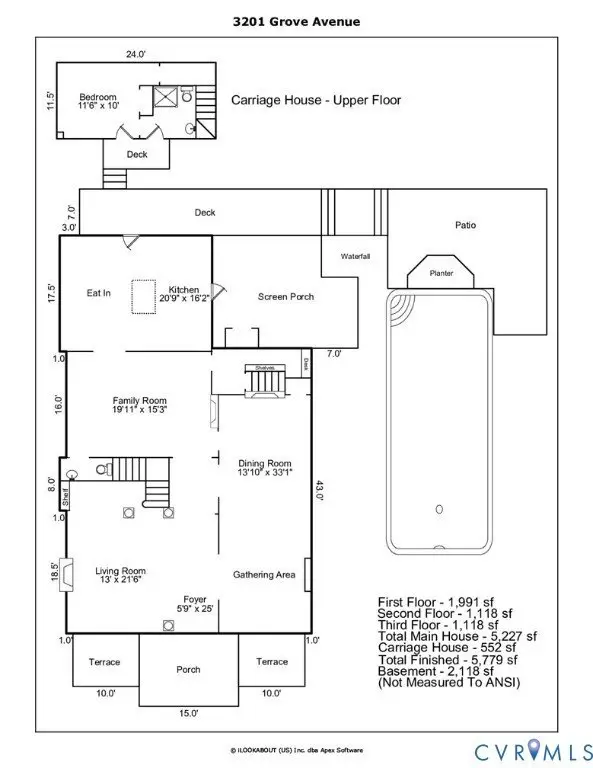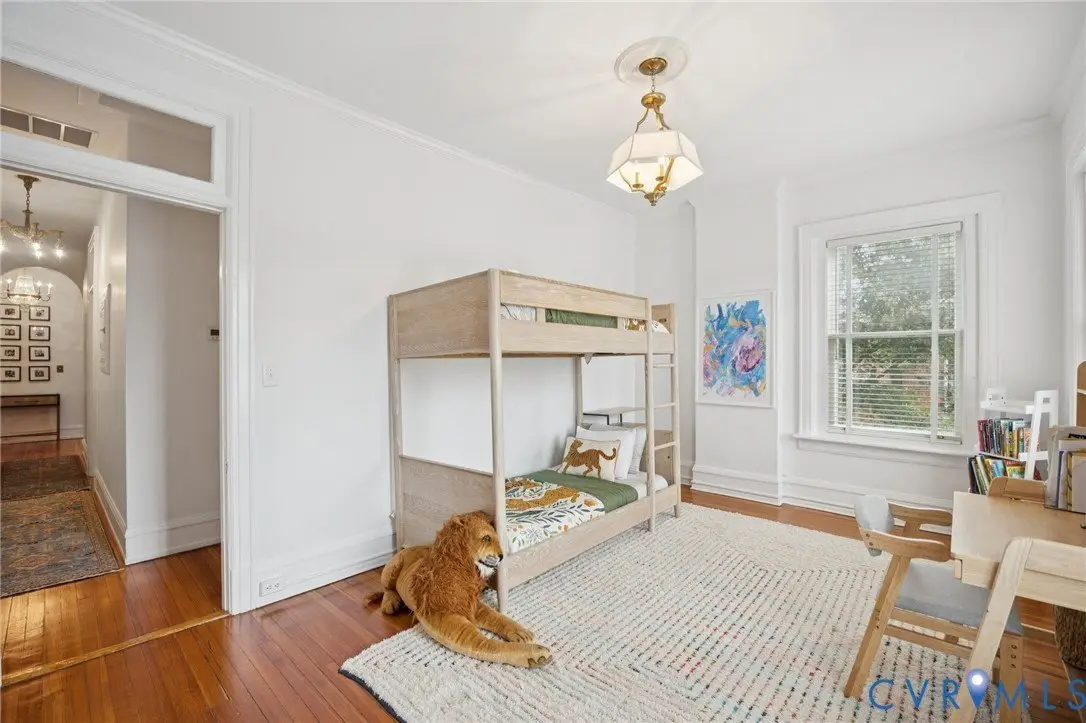 This stunning Wiley Anderson-designed Classic Revival historic home blends timeless architecture with luxurious modern updates, offering graciously scaled rooms, stately columns and exquisite millwork throughout. A grand entry and center hall welcome you into oversized formal and informal living spaces, ideal for elegant entertaining and casual living. The spacious family room opens to a large, updated eat-in kitchen featuring quartz countertops, a center island, stainless appliances, Wolf range with professional hood and a spacious breakfast area. The kitchen opens to an expansive screened porch overlooking a private yard with an in-ground Gunite pool with retractable safety cover. Upstairs, the grand staircase leads to a luxurious primary suite with a walk-in closet and an updated bath with double vanity. Three additional bedrooms with large closets, two renovated full baths, a laundry room and a sun-filled studio or office complete the second level. The third floor boasts a fifth bedroom, full bath and a bright, airy rec room with tall ceilings. A detached guest or carriage house offers a separate retreat with its own bedroom, bathroom, kitchenette and living room. Set on a beautifully manicured lot with mature landscaping, the property includes two separate flat green lawns ideal for play or garden space and offers potential for off-street parking accessed via a private alley. Enjoy the walkability to the VMFA, Carytown and numerous great restaurants and coffee shops. A rare opportunity to own an architecturally significant home that effortlessly combines classic elegance with everyday comfort.