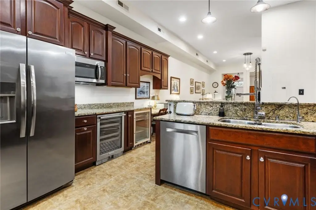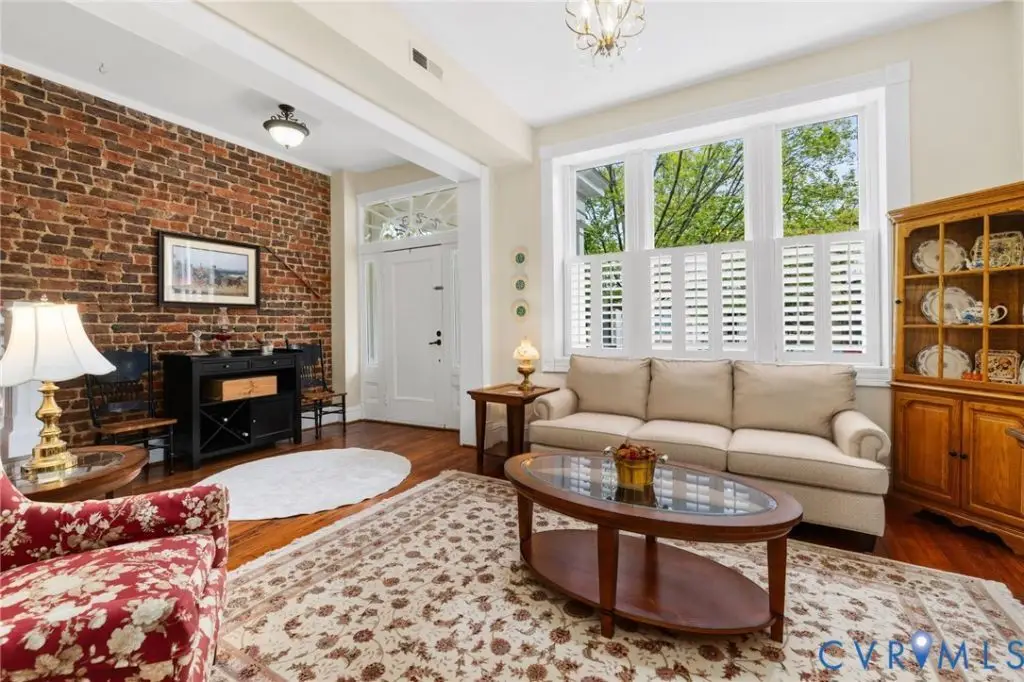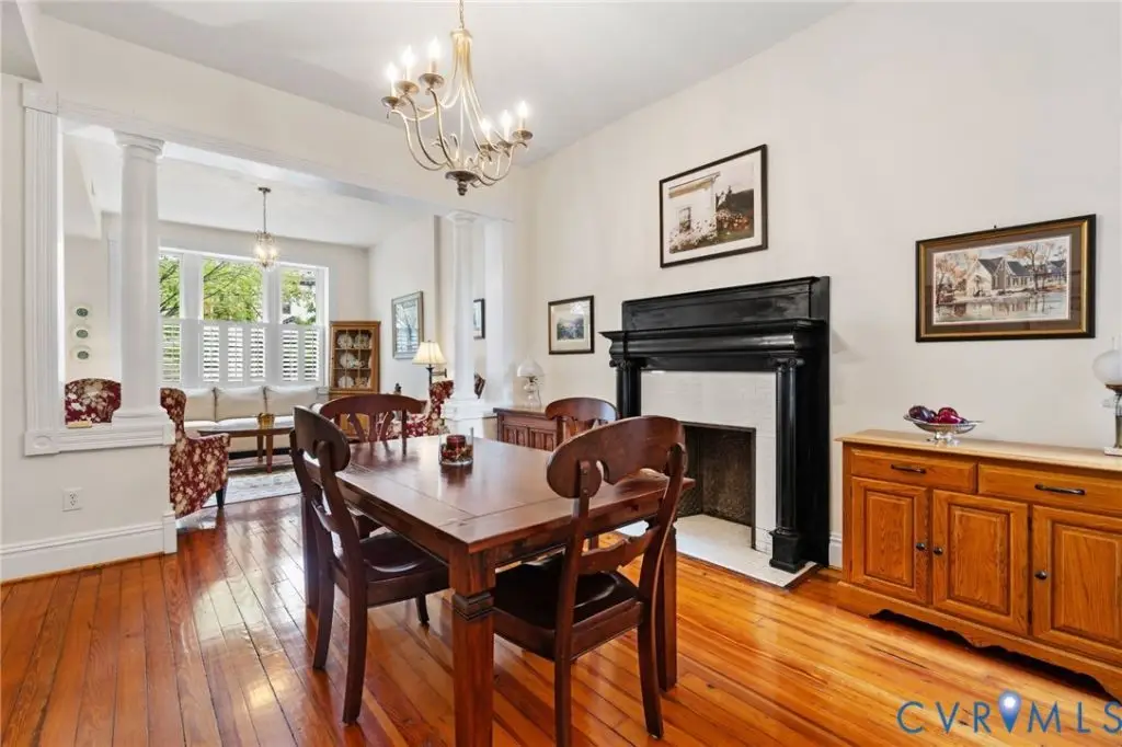 Welcome to this stately Fan District detached row home which exudes historic charm and is combined with many contemporary updates. Perched on the Monument Avenue side of the street, 2231 W Grace is elegant with solid brick walls and a welcoming front porch on which to sit and enjoy your neighbors, the Cityscape, or a cup of coffee. Upon entry are expansive and clear sight lines to the back of the home, as well as an exposed brick wall that runs from the foyer to the back of the home on the second floor making for quite a dramatic effect. The front living room is ideal for hosting lively conversation with family and friends after enjoying a meal in the enjoining dining room.Both spaces boast high ceilings, original wood floors, and a fireplace in the dining room which add to the character of this lovely early 1900's built home. Beyond the dining room is the family room allowing for casual living with lots of natural light, a powder room and is open to the kitchen. Need to have plenty of cabinets for all of your kitchenware?Look no further than this high quality cherry cabinet filled kitchen!You will enjoy baking and cooking for friends and family w/the Electrolux double ovens, Five Star four burner gas stove, brand new microwave, Bosch dishwasher, and two beverage fridges surrounded by attractive granite counters & high top bar. The second level is where you will find your sumptuous primary suite including soaring ceilings adorned by an exposed brick wall, a sitting area for relaxing or working, an endless walk in closet & full ensuite bath! Incredible light beam through the North facing windows which can easily be controlled w/ the use of the plantation shutters. Down the hall are two additional bedrooms which include two windows, plantation shutters, closets & overhead lighting.Finally,you will enjoy the outdoors on the patio & gardening area enclosed by a privacy fence.For those who aren't ready to give up suburban living, there is a generous one car garage and an option to rent a neighboring parking space too!
