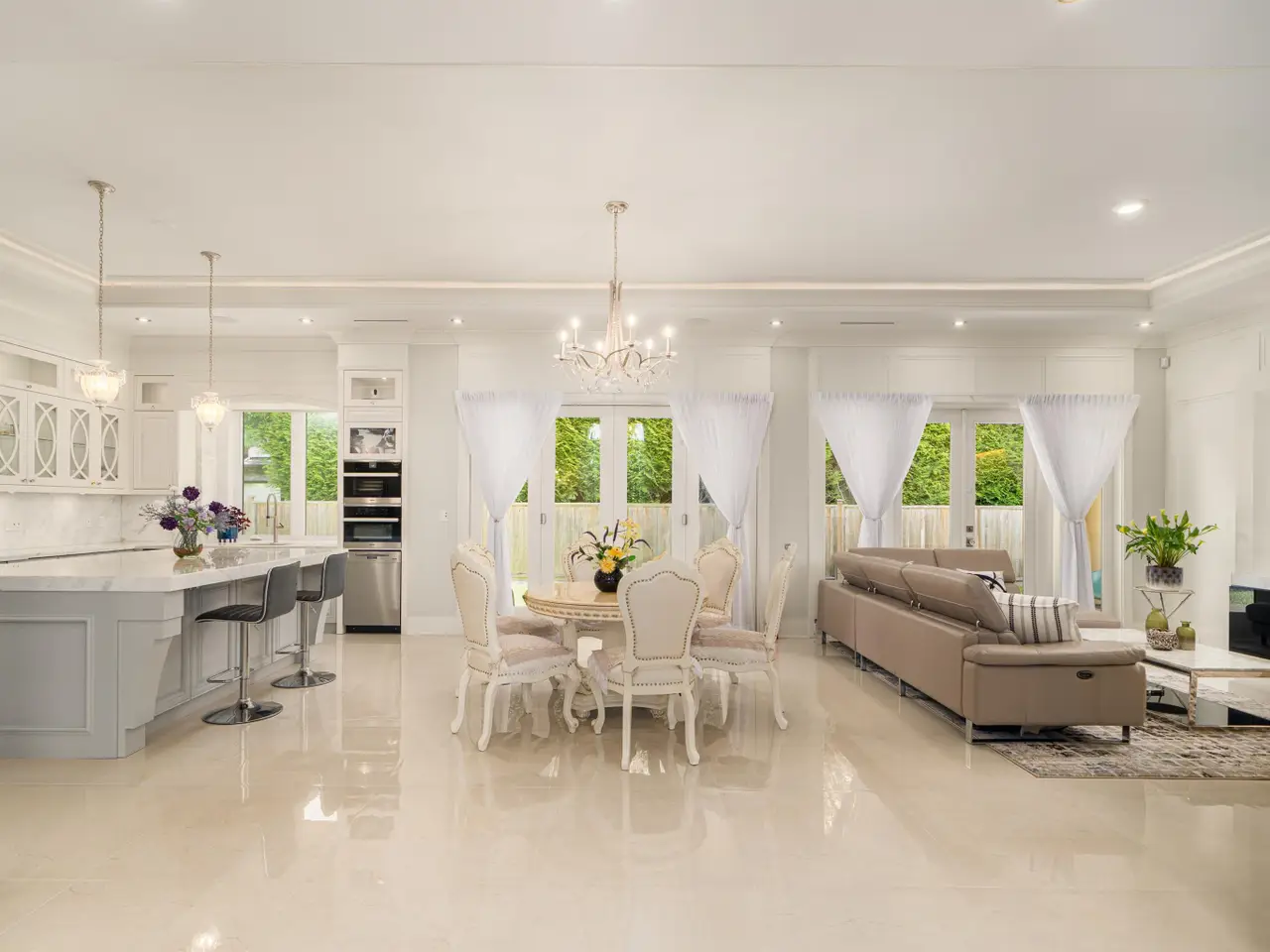 Better than new! Stunning custom home in prestigious Broadmoor. Open-concept design with soaring ceilings in elegant living/dining areas, feature walls, and Schonbek lighting. Gourmet kitchen with premium cabinets, marble counters, and top-tier Sub-Zero & Wolf appliances. Upscale plumbing fixtures, including smart Toto toilet. Main floor media room with ensuite doubles as guest room. Upstairs offers two spacious master suites plus two cozy bedrooms. Huge private deck—perfect for gatherings. Durable diamond-shaped asphalt shingle roof. Smart home system adds comfort and security. Meticulously built for discerning buyers. Walk to top schools, parks, transit, shops, and more. School catchments: Maple Lane Elementary & Steveston-London Secondary.