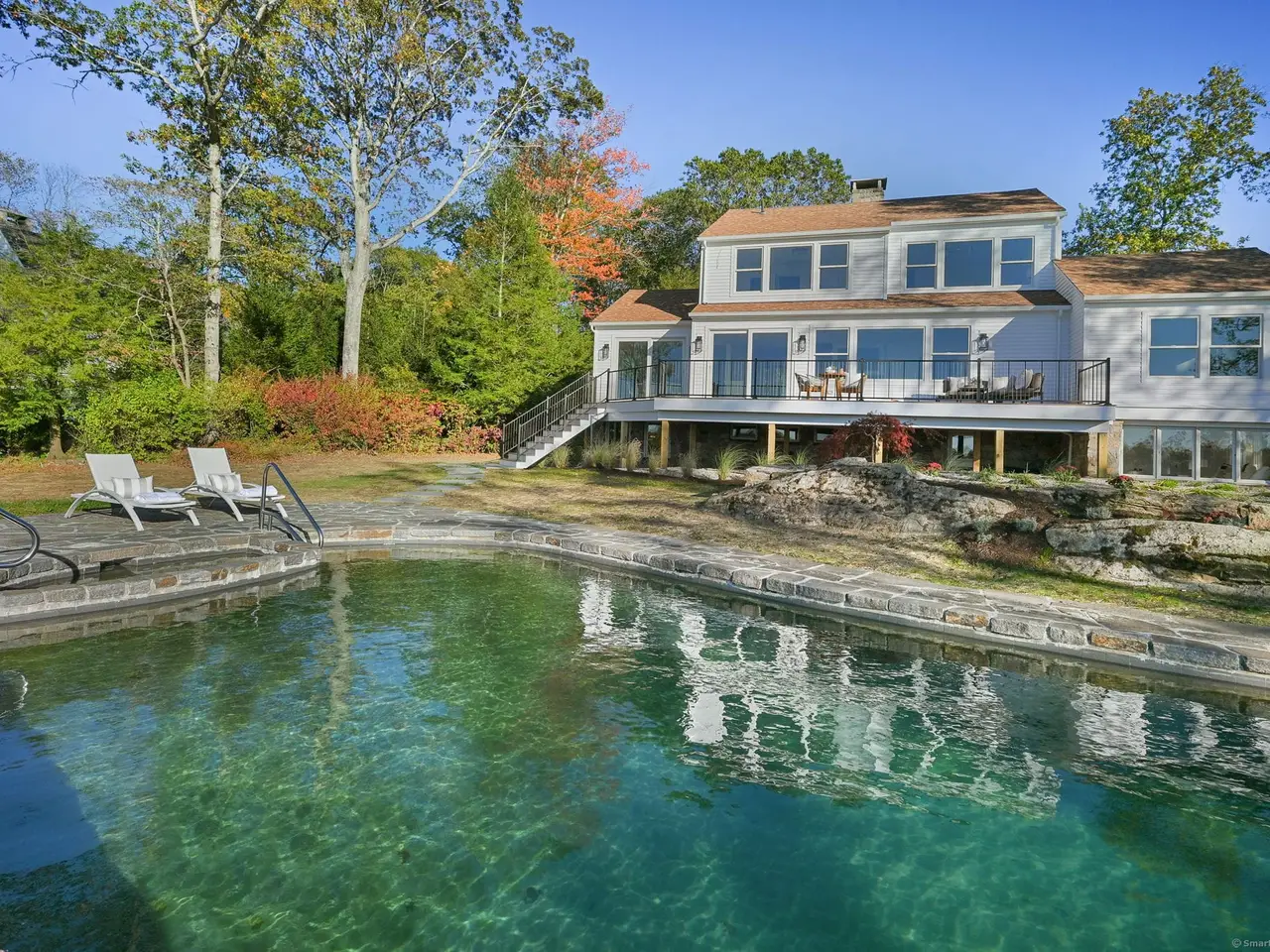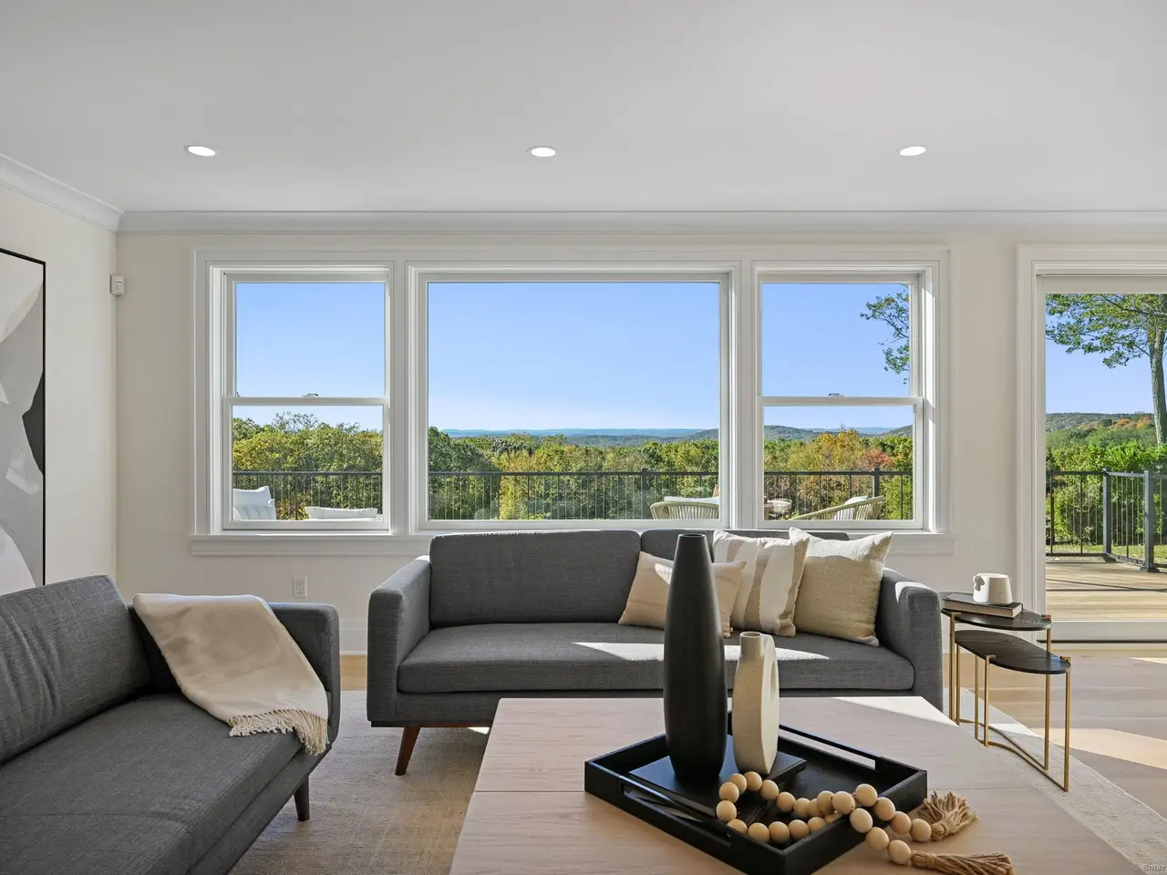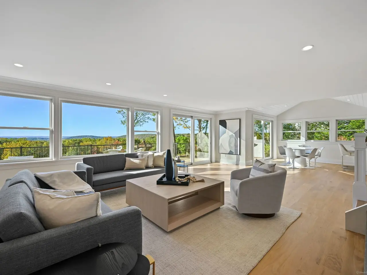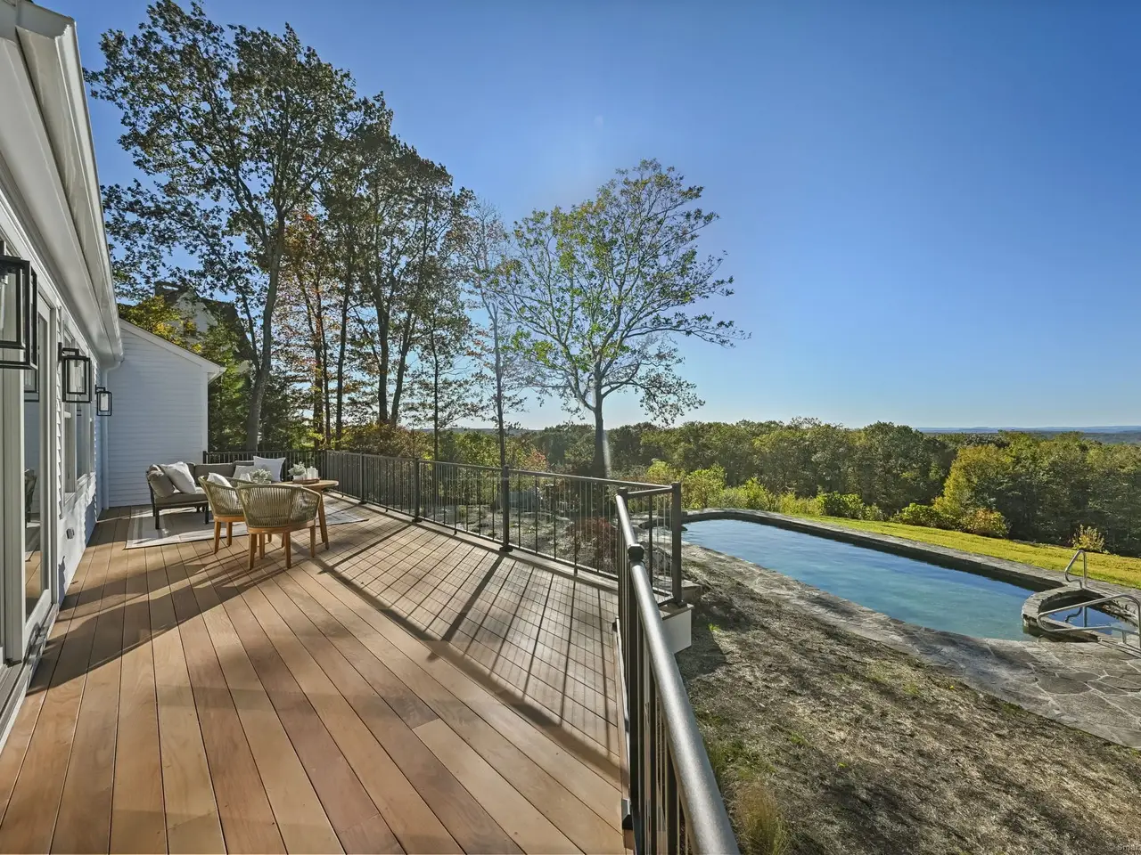 A masterclass in modern luxury, this breathtaking Ridgefield estate has been meticulously reimagined by premier builder Thomas Sturges Construction, achieving a rare balance of architectural brilliance, refined comfort, and energy efficiency, all set against awe-inspiring panoramic 50-mile views of the Hudson River Valley. Completely transformed, the residence unveils a sophisticated open-concept design where wide-plank oak floors, walls of glass and impeccable craftsmanship define every space. The chef's kitchen is a showpiece of form and function with natural stone counters, custom cabinetry and professional-grade Viking appliances seamlessly flowing into a chic dining area and luminous living room anchored by a sleek gas fireplace. The main-level primary suite is a private sanctuary, offering dual walk-in closets and a spa bath worthy of a five-star retreat. Upstairs, two additional ensuite bedrooms showcase exquisite finishes and elevated comfort. The lower level extends the living experience with a full in-law or au pair suite, complete with separate entrance, laundry and a stunning family room framed by stone-accented walls. Outdoor living is redefined with tiered decks, a granite patio, Wagner pool and spa and a romantic gazebo set amid manicured grounds. Great NYC commute. Perfectly sited minutes from Ridgefield's boutique shops, acclaimed dining and cultural attractions. An exceptional residence embodying the pinnacle of modern elegance and timeless craftsmanship!