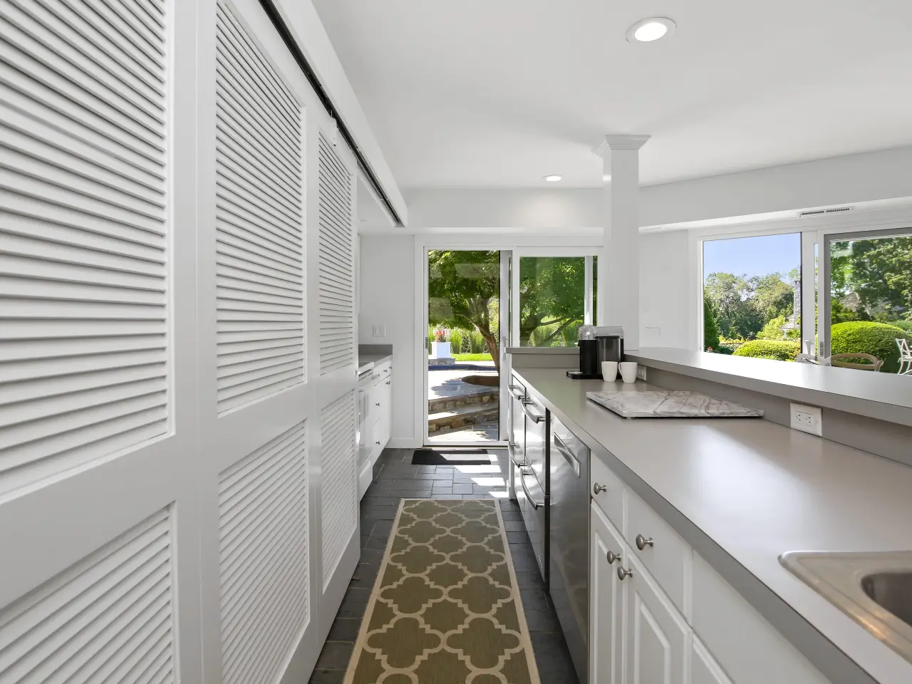 Overlooking Long Island Sound and the NYC skyline, this extraordinary Riverside estate sits on 1.35 acres at the end of a quiet, tree-lined cul-de-sac. Offering breathtaking, unobstructed water views from nearly every room, the three-story Colonial home blends timeless coastal charm with modern luxury. Completely renovated in 2022 and thoughtfully updated over the years, the main house features a sun-drenched interior designed by Gregory McGuire, with elegant architectural details. A grand foyer with intricate woodwork and living room share a double sided fireplace; office with built-ins and French doors to terrace overlooking the Sound. The gourmet kitchen flows seamlessly into the family room and outdoor seating area, perfect for both entertaining and everyday living. Spacious primary suite offers a private balcony, dual walk-in closets, a dressing room, and a spa bath. The top floor features a bright studio or gym space with potential for an additional bath. Elevator provides easy access across three levels. The professionally landscaped grounds feature a resort-style pool with waterfall and spa, outdoor kitchen, vegetable garden, horseshoe court, flagpole, and multiple terraces for enjoying the views. Separate pool house complete with family room, kitchen, bedroom, office, full bath, and a second laundry. Only two families have ever owned this remarkable home, with deeded water access and luxurious amenities in a prime Riverside location. Main house is 5,842 sqft. Cottage is 735 sqft.
