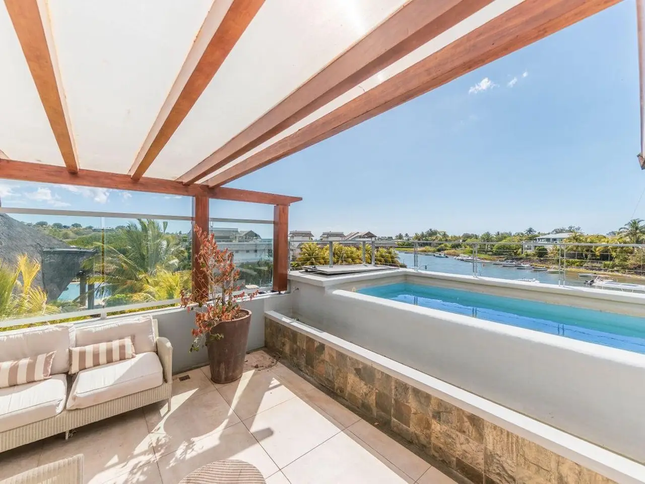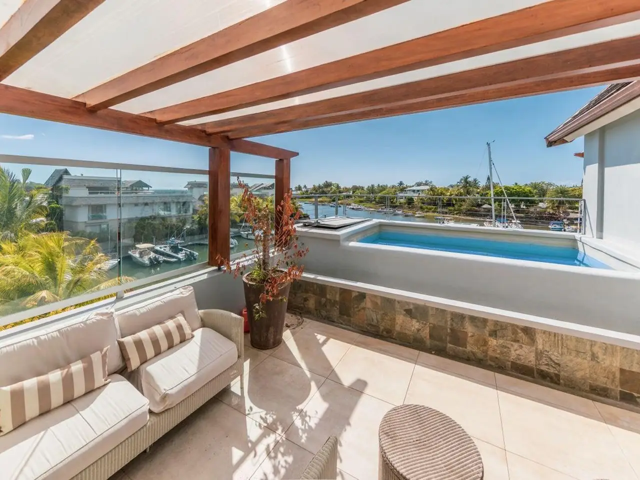 Nestled in the island's only marina, on the west coast, this chic and modern penthouse with private dock is located in the heart of the RES resort which offers multiple benefits and a dream quality of life for boat lovers. enjoy the feeling of being on the waterfront while being close to leisure activities ... the restaurant with swimming pool, gym and spa, with access to the tennis court, within the secured resort. There are 3 spacious bedrooms with en-suite bathrooms, living and freshly renovated kitchen, with generous high ceiling, and balcony overlooking the private pool and marina. Rare opportunity!