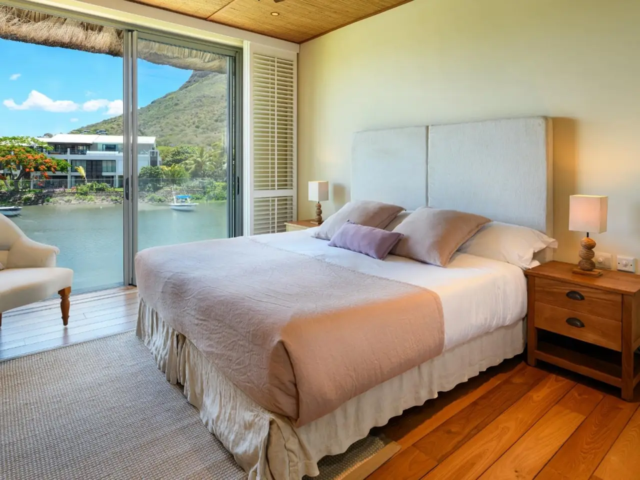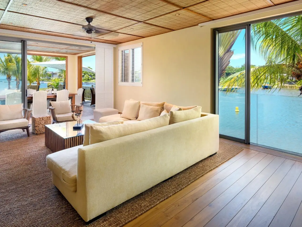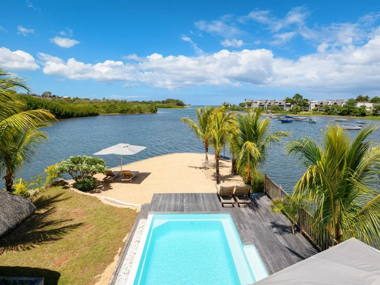 Located at the point of the only residential marina on the southwest coast of Mauritius, in Black River, discover this magnificent villa offering exclusive views of the river and the ocean. 5 bedrooms, 3 of which are ensuite with ocean and sunset views, and with a living area of 395 m2, this exceptional villa offers great amenities and finishes. A boat mooring space and a boat parking space are included as well as the exclusive use of a 243 m2 garden attached to the villa and a parking space. This property offers you the exclusivity of living in a marina with gym, spa, restaurant with swimming pool, and at the entrance, a tennis court with its swimming pool, and double security