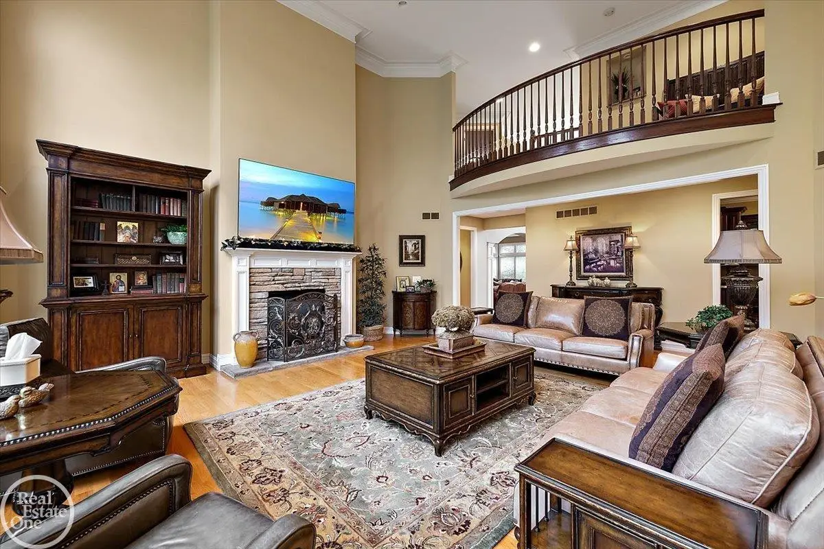 - 2-way fireplace between great room & library