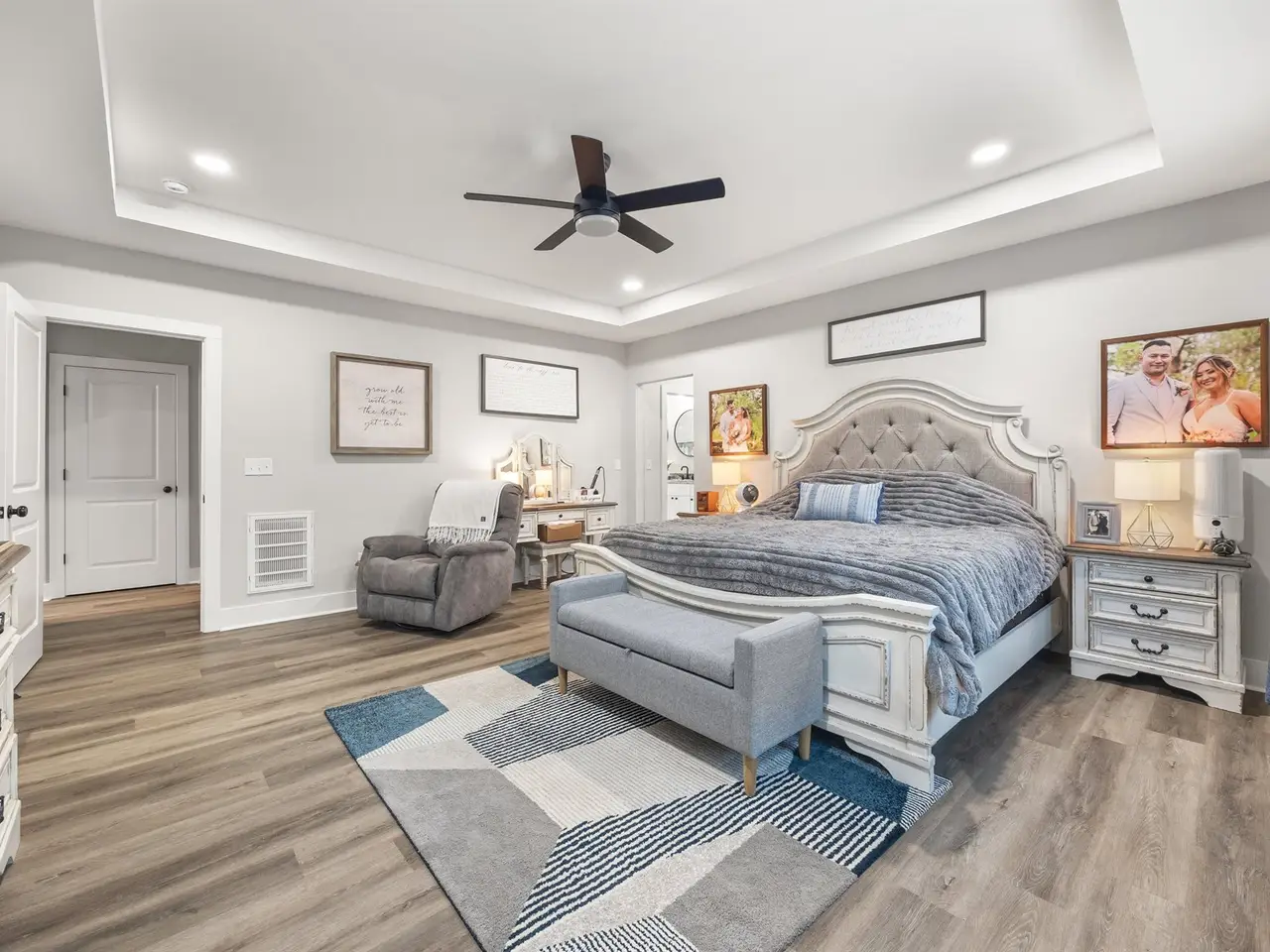 Welcome to the home that defines "better than new." Completed just two years ago, this magnificent 4-bedroom, 3.5-bath residence has been meticulously upgraded into a private, turn-key luxury estate. Skip the disruption and expense of new construction - all the dream features are already here! The backyard is a true oasis, offering resort-style living with a brand new saltwater inground pool and spa, surrounded by a privacy fence, lush sod, accent lighting, and complemented by both a covered pool patio and a screened porch for year-round enjoyment. The addition of a full irrigation system ensures the entire property maintains curb appeal effortlessly.Step inside to an impressive, massively open main living area defined by soaring ceilings in the 2-story Great Room and gorgeous hardwood flooring throughout the entire home. The heart of the home is the Gourmet Kitchen, an entertainer's dream featuring a huge central island, high-end stainless-steel appliances, a double oven, and not one, but two walk-in pantries. Gather in the cozy Keeping Room or relax by the chic electric fireplace in the living area.The luxury continues with an indulgent Primary Suite conveniently located on the Main Floor. This retreat boasts elegant tray ceilings, a private seating area, and a massive walk-in closet. The spa-like ensuite bathroom is equipped with dual vanities, a deep soaking tub, and a large separate shower.Additional high-end features that elevate this home above the rest include dual-zone climate control, a dedicated private entry to the laundry room, an upstairs loft, and smart LED lighting throughout. Furthermore, the owners installed a premium water softener and filtration system, ensuring pristine water quality.This is a rare opportunity to own a virtually brand-new home with all the luxury, privacy, and outdoor amenities already completed. This spectacular home must be seen to be fully appreciated!