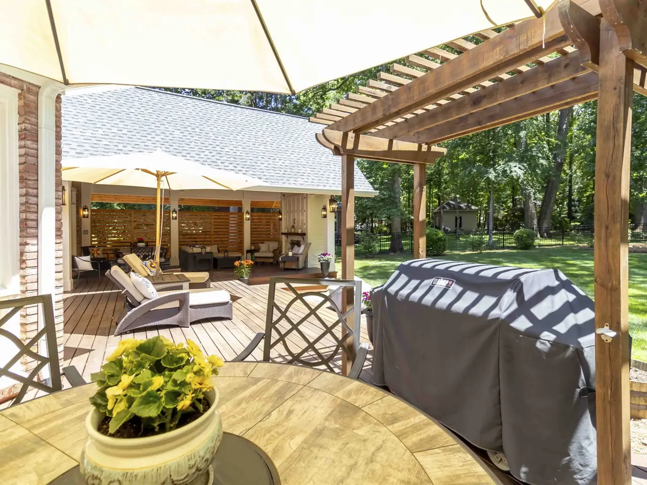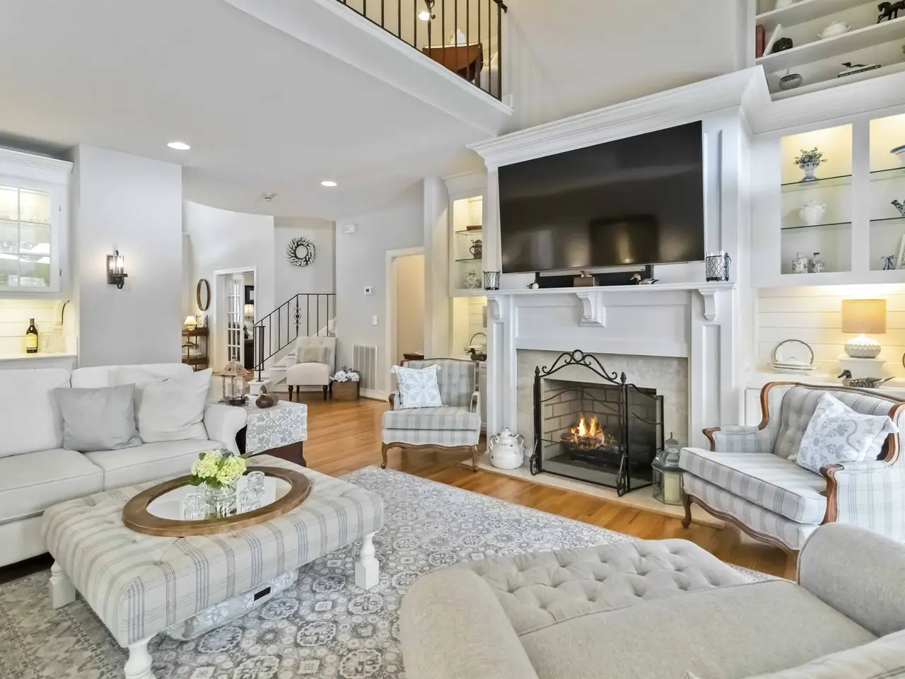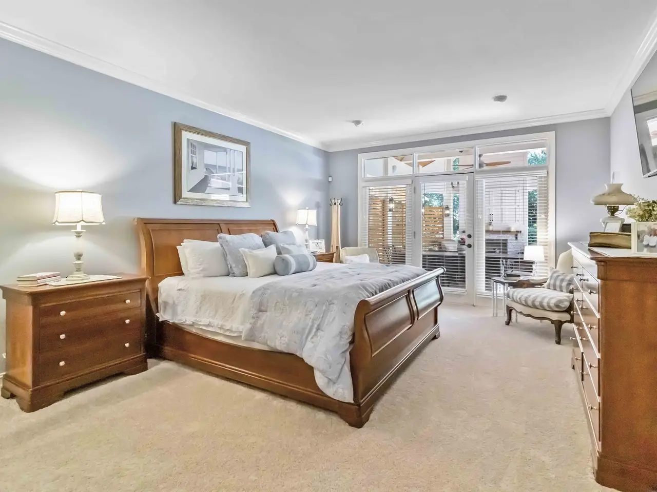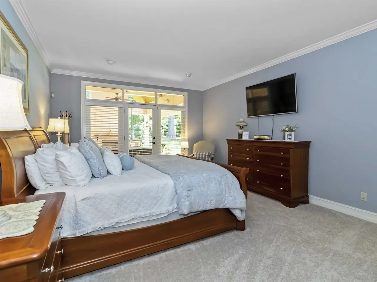 Sellers offering $5,000 in concessions with an acceptable offer. This stately home offers ample space for family gatherings and entertaining. It features a primary suite on the main floor and three additional bedrooms upstairs.The large kitchen boasts an island, double oven, and plenty of storage. The living room is highlighted by a fireplace, built-in shelving, and a wet bar. The master bedroom has French doors that open to a large back deck, complete with a jetted tub, walk-in shower, and a spacious vanity. The outdoor spaces are perfect for entertaining, with a 41x15 deck that includes a covered grilling area and TV mounts, as well as a covered 20x25 patio with another fireplace and additional TV mounts. The large backyard, two-car garage, and new roof complete this exceptional property.