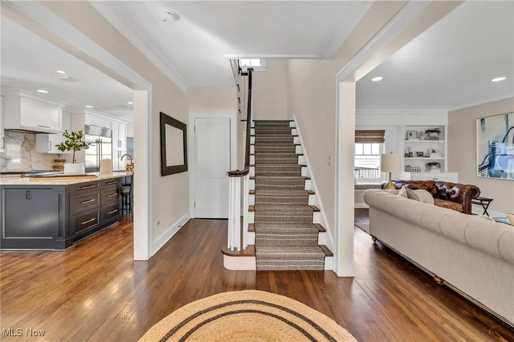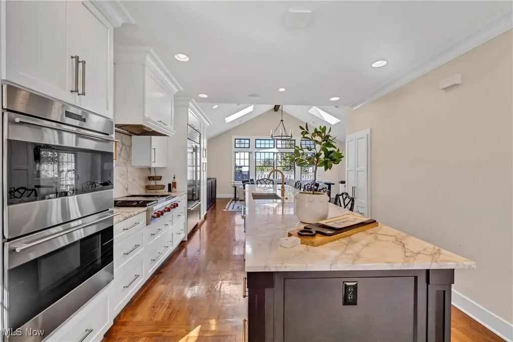 Welcome to this stunning 4 bed, 3.5 bath Colonial in the heart of Beachcliff, just steps from the lake. Completely transformed over the past several years, this home offers a perfect blend of style, function, and quality craftsmanship. Every inch reflects thoughtful design and attention to detail. Step inside to a warm and inviting living room centered around a beautiful fireplace, ideal for relaxing or entertaining and a nearby office or sunroom. The fabulous kitchen is a true showstopper, with an oversized island that opens seamlessly to the vaulted family room and dining area, creating an effortless flow for gatherings. The main level also features a convenient office space and a redesigned half bath, both as practical as they are stylish. Throughout the home, you'll find refinished hardwood floors, plantation shutters, new millwork, and a Sonos sound system for a cohesive, elevated living experience. Upstairs, the luxurious primary suite was expanded and a spa-like bath with a stunning walk-in shower and dual vanities was added, as well as a walk-in closet. 2 additional bedrooms are serviced by the renovated hall bath. A full bath was added on the third floor, creating the perfect guest or teen suite. The lower level has been transformed into a spacious recreation room, ideal for movie nights or gamedays, or gaming. Outside, enjoy the Trex deck overlooking a professionally landscaped yard, the perfect setting for outdoor living. Additional upgrades include the addition of A/C with two units for year-round comfort and countless upgrades that make this home truly move-in ready.