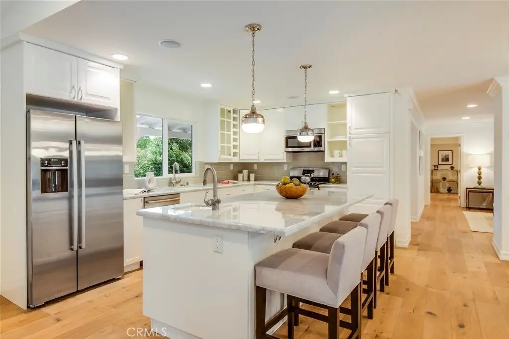 Set back off the street, on a sprawling blanket of grass, sits this spacious, one-level Ranch home. Extensively remodeled in 2015, this virtually new home features an excellent floor plan, centered around the beautiful kitchen. The adjacent family room, dining room and living room with fireplace all overlook the newly refinished pool and huge patio creating the ultimate summer entertainment area. The rear yard was professionally designed and includes numerous stack stone planters with lush landscaping and complimented with extensive lighting to entice any nighttime gathering. The master suite has a luxurious master bathroom and two walk-in closets. Wide plank hardwood floors, newer doors and windows, newer roof, newer kitchen and bathrooms. The front yard features a large covered front porch, a long driveway and a sprawling grassy play yard. Additional features include tankless water heater, newer AC system, upgraded electrical panel, new interior lighting, sewer line upgrade, hardwired for the Internet and so much more. Access to the award-winning Palos Verdes school district including Rancho Vista Elementary, Miraleste Intermediate School and the option to attend Peninsula or Palos Verdes high school. This Rolling Hills Estates home is a one-of-a-kind property sure to be at the top of everyone's list.