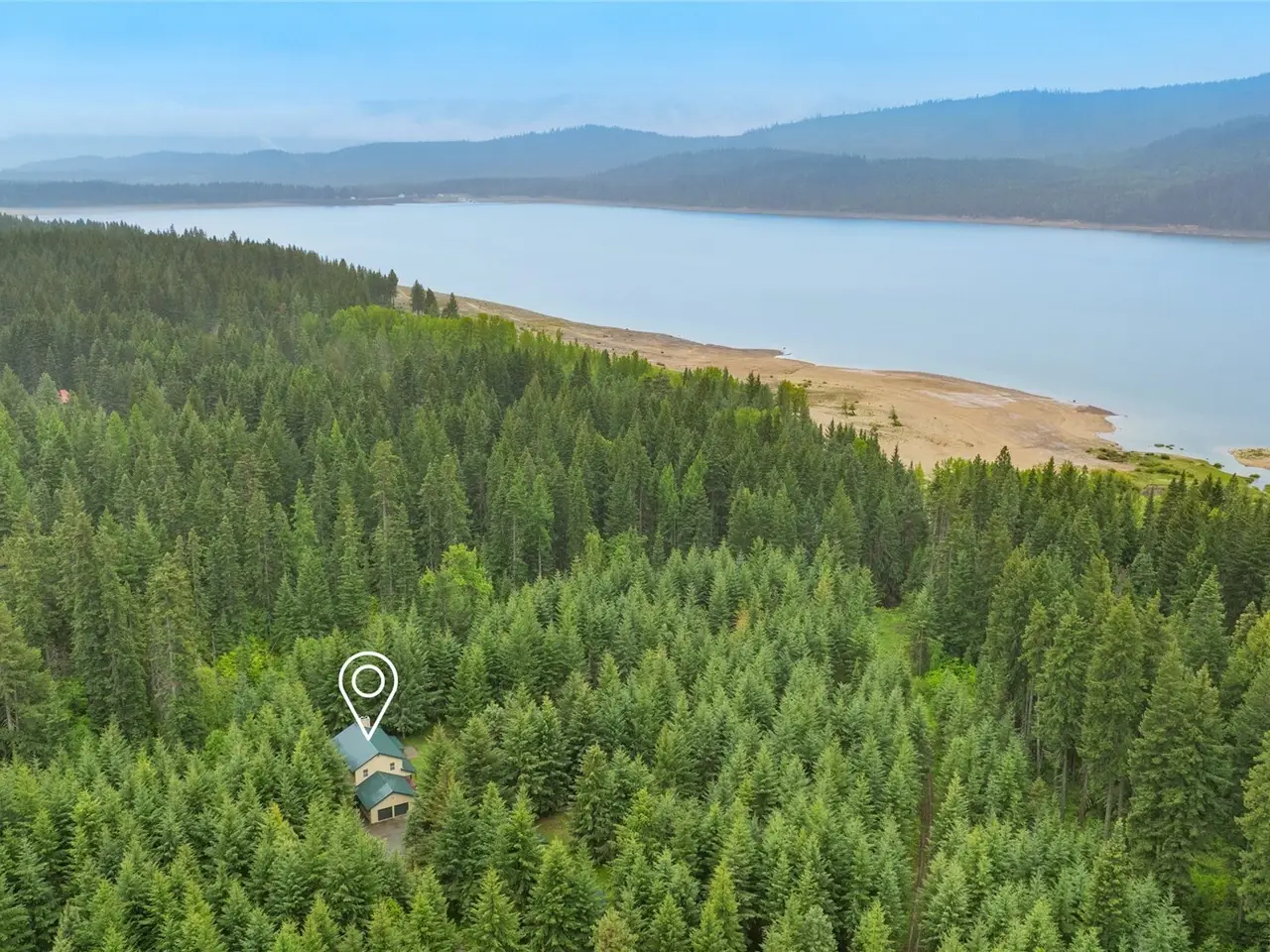 Escape to tranquility on this breathtaking 5-acre retreat, tucked away in the trees along the serene shores of Lake Cle Elum. This secluded retreat offers beauty, privacy, and four seasons of recreational fun! The main house features 3 beds, 3 baths, and a cozy living room with a wood-burning fireplace. The kitchen opens onto a spacious dining area, perfect for entertaining. Enjoy outdoor living on the wrap-around covered deck with a fireplace. Property offers a separate guest house (638 sq ft) with sleeping loft, kitchenette, and garage. Trail access to the beach for a day of relaxation. Whether it's a vacation getaway or your primary residence, this property offers the ultimate in serenity and enjoyment. No HOA, no CC&Rs.