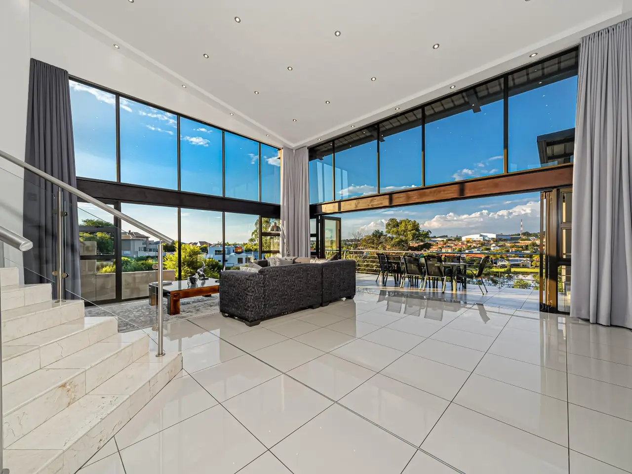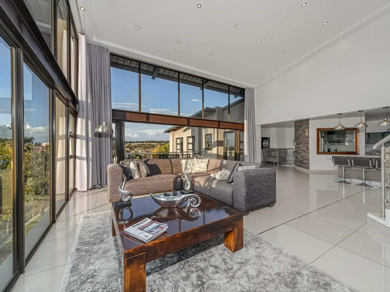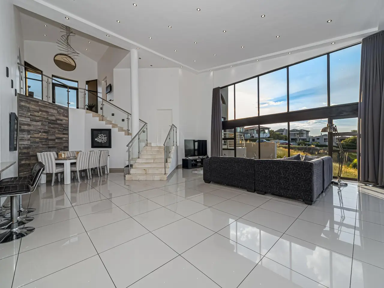 Open-plan layout with double volume main living area