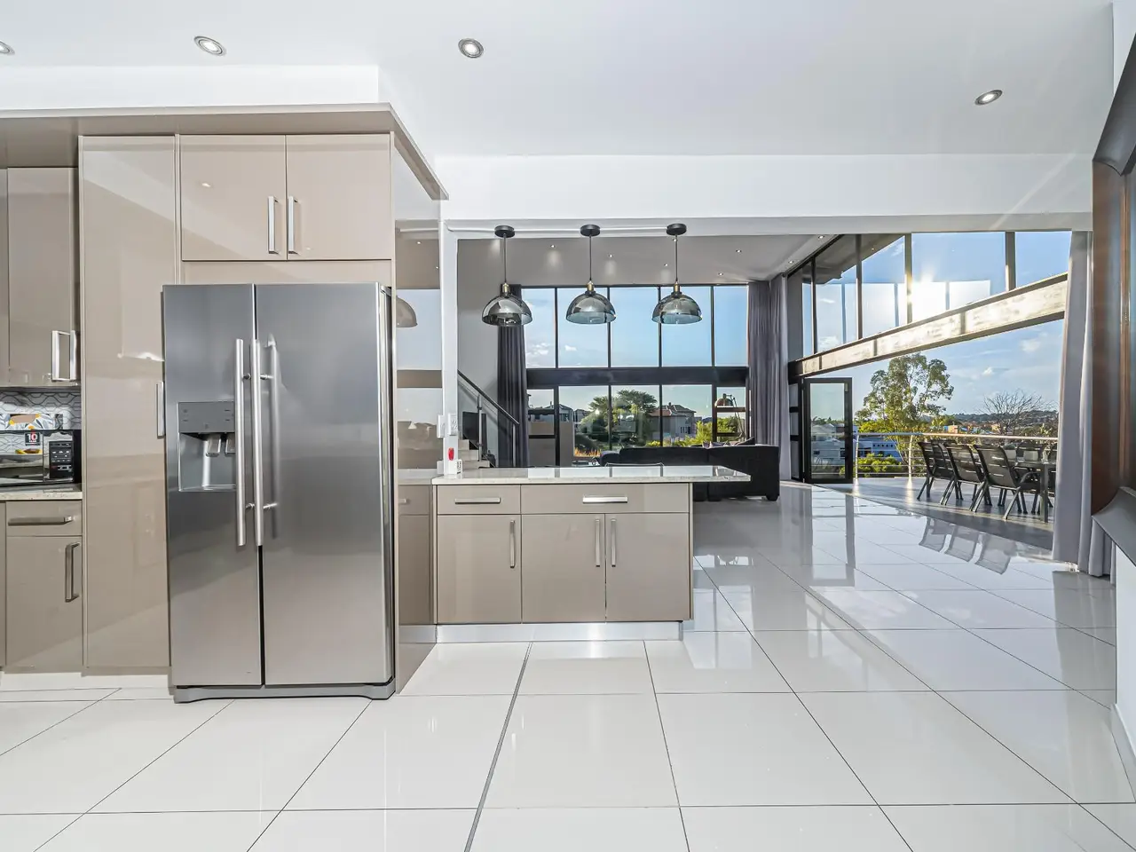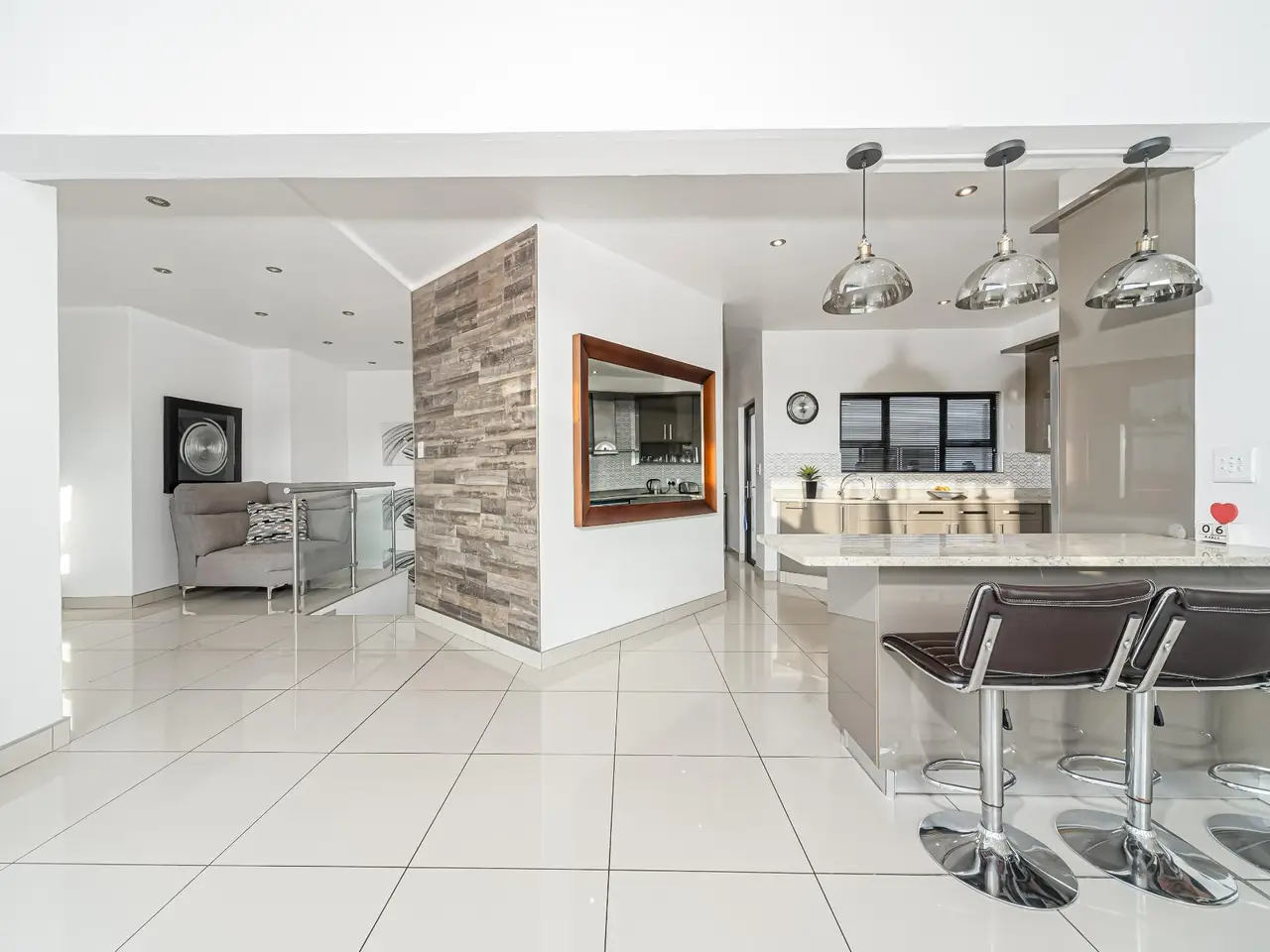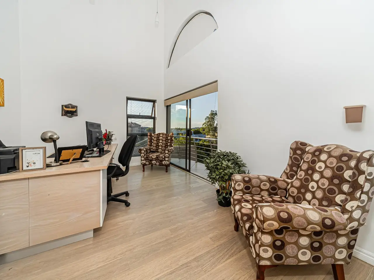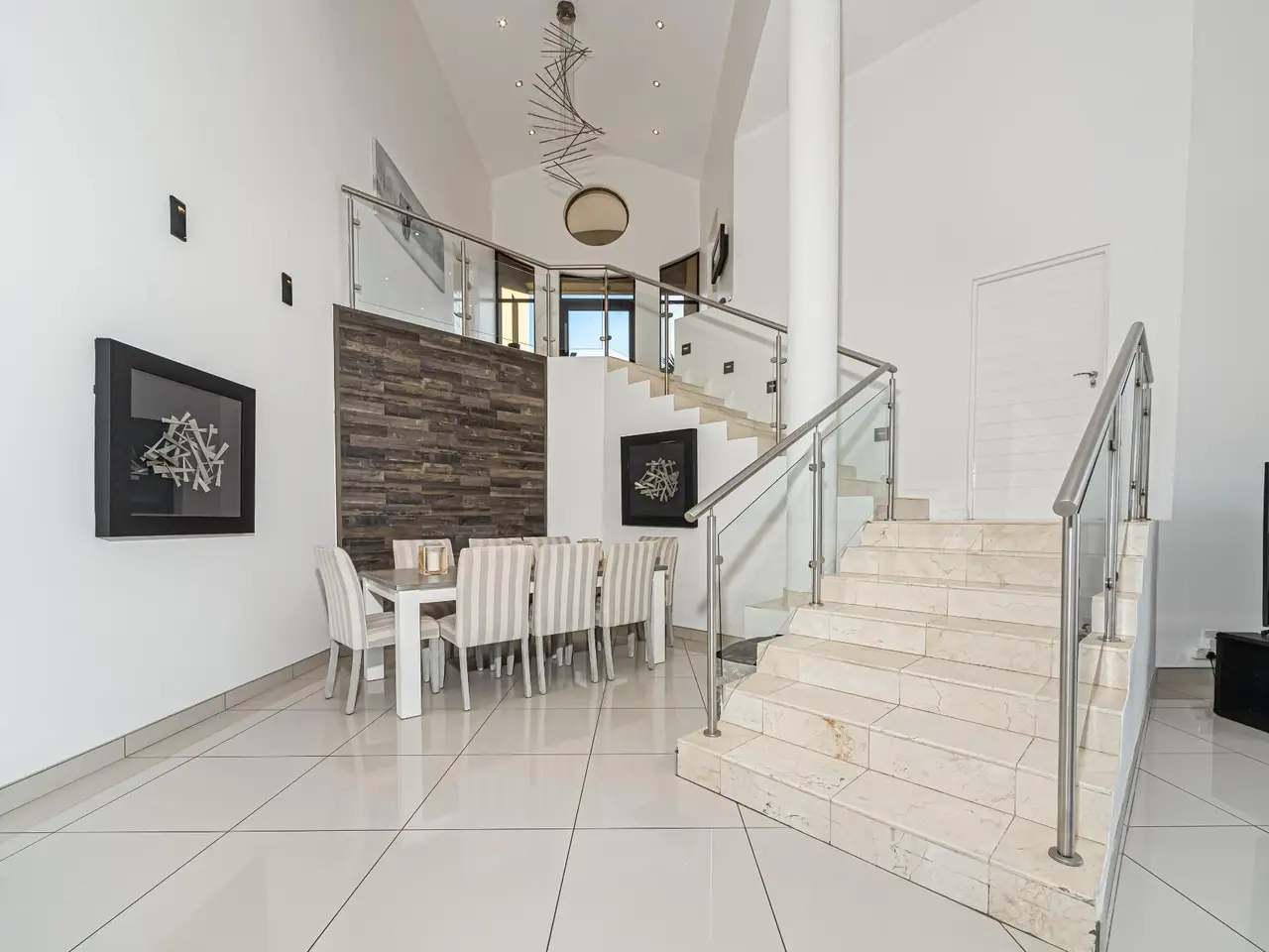 Open-plan layout with double volume main living area
