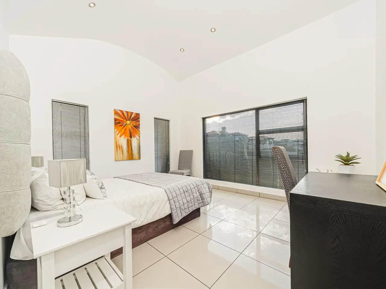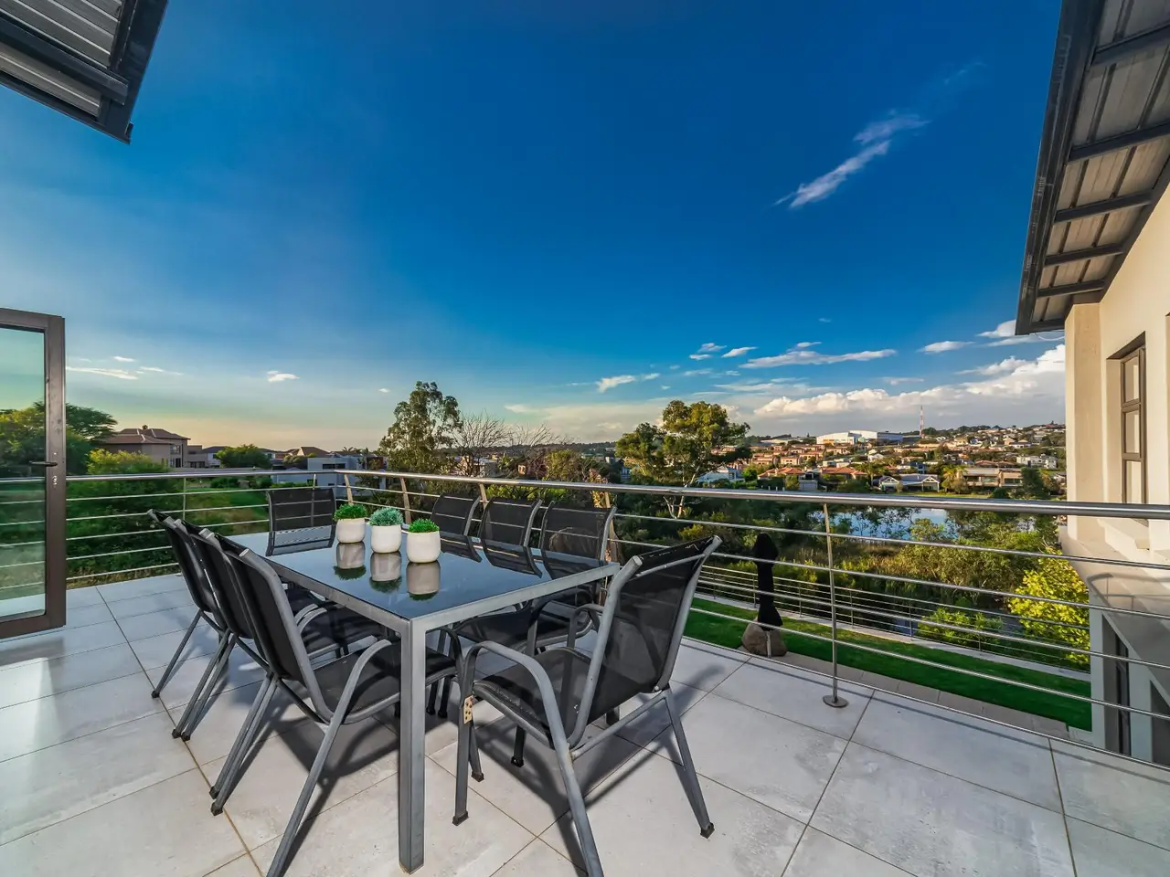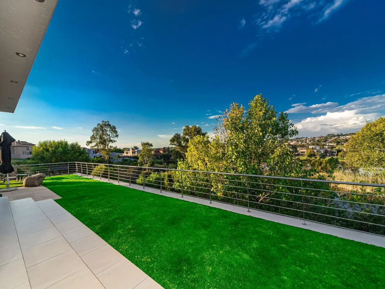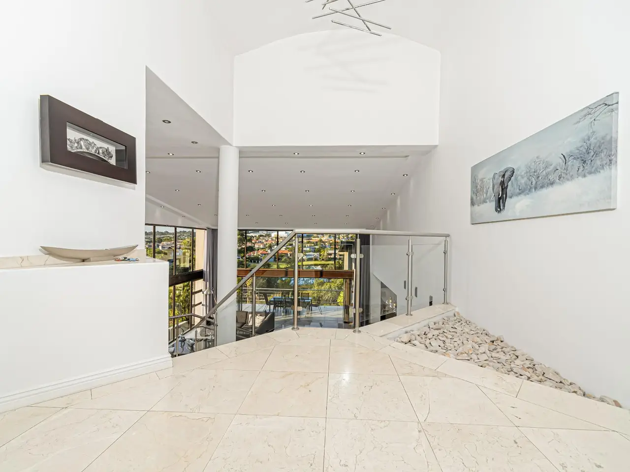 Positioned on the golf course, it offers spectacular views of the golf course and surrounding lakes. A magnificent home is set apart from the rest. This North facing home is situated in a quiet part of the Estate, next to a greenbelt area offering you tranquillity and privacy. There is a guest suite on the upper level. There is also a study on this level. The double volume main living area include an open plan with lounge, dining room and gourmet kitchen that all open up with stacking doors. The lower level has a sunning entertainment area. A spacious lounge that opens onto a covered patio and pool area. There is a separate entertainment room with built-in bar. There are 4 enormous bedrooms all en-suite, and all have gorgeous views of the golf course and fishing dams. There are 3 garages with plenty of off road parking. Staff accommodation and a large area that could be used as second study or extra bedroom.
