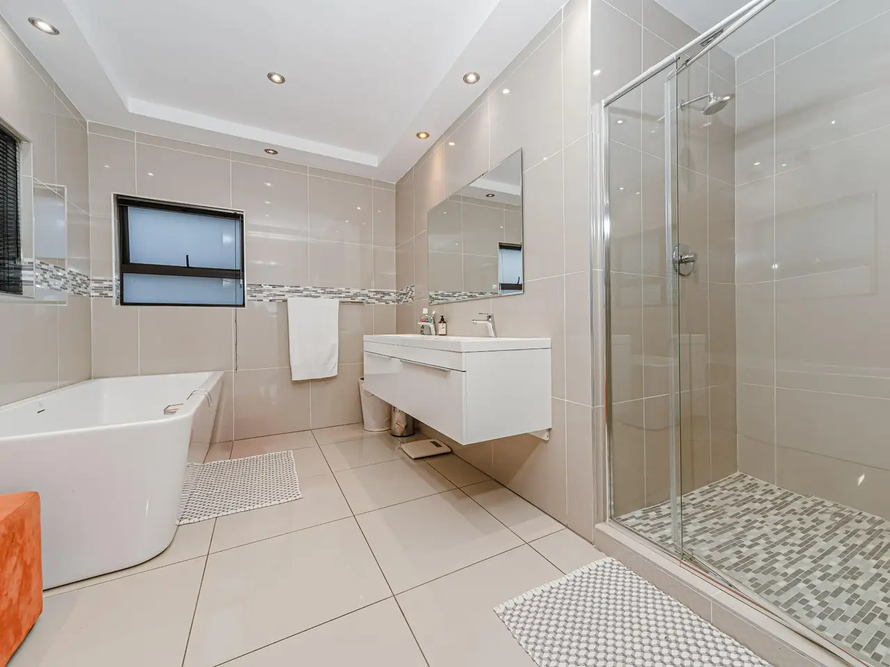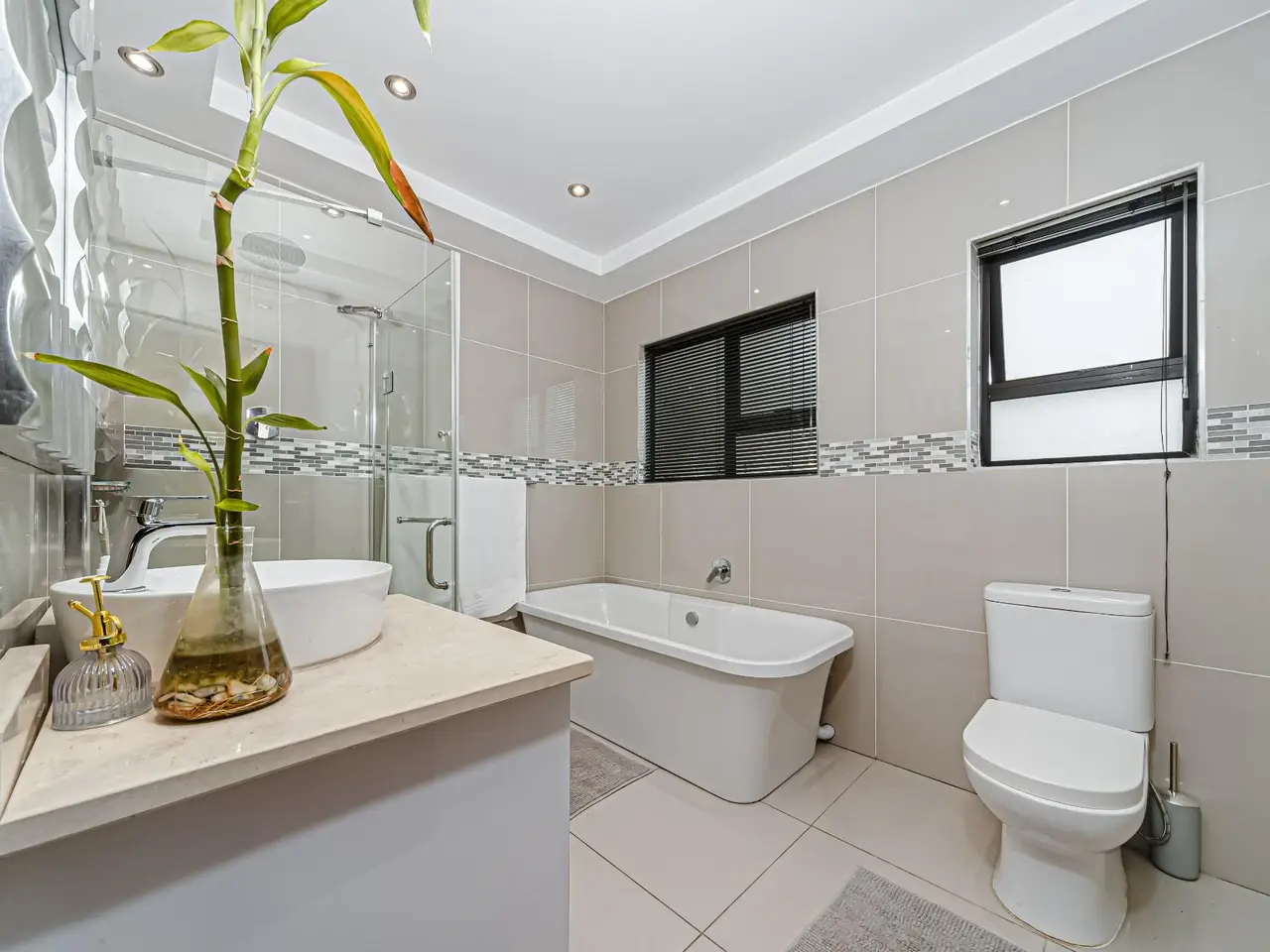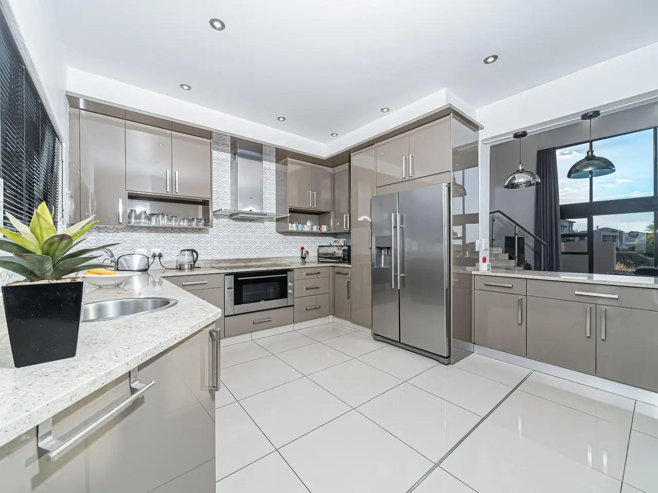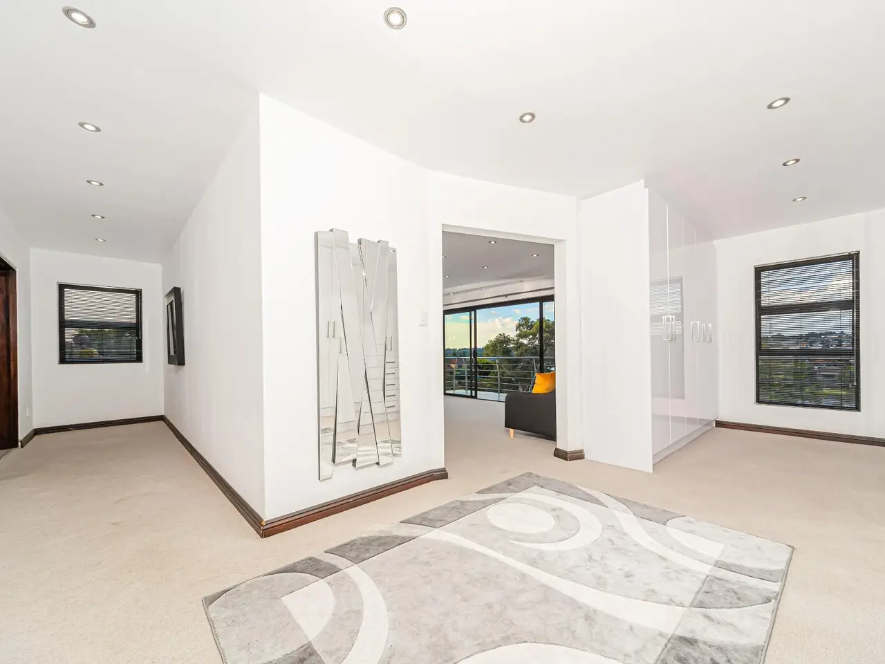 Positioned on the golf course, it offers spectacular views of the golf course and surrounding lakes. A magnificent home is set apart from the rest. This North facing home is situated in a quiet part of the Estate, next to a greenbelt area offering you tranquillity and privacy. There is a guest suite on the upper level. There is also a study on this level. The double volume main living area include an open plan with lounge, dining room and gourmet kitchen that all open up with stacking doors. The lower level has a sunning entertainment area. A spacious lounge that opens onto a covered patio and pool area. There is a separate entertainment room with built-in bar. There are 4 enormous bedrooms all en-suite, and all have gorgeous views of the golf course and fishing dams. There are 3 garages with plenty of off road parking. Staff accommodation and a large area that could be used as second study or extra bedroom.