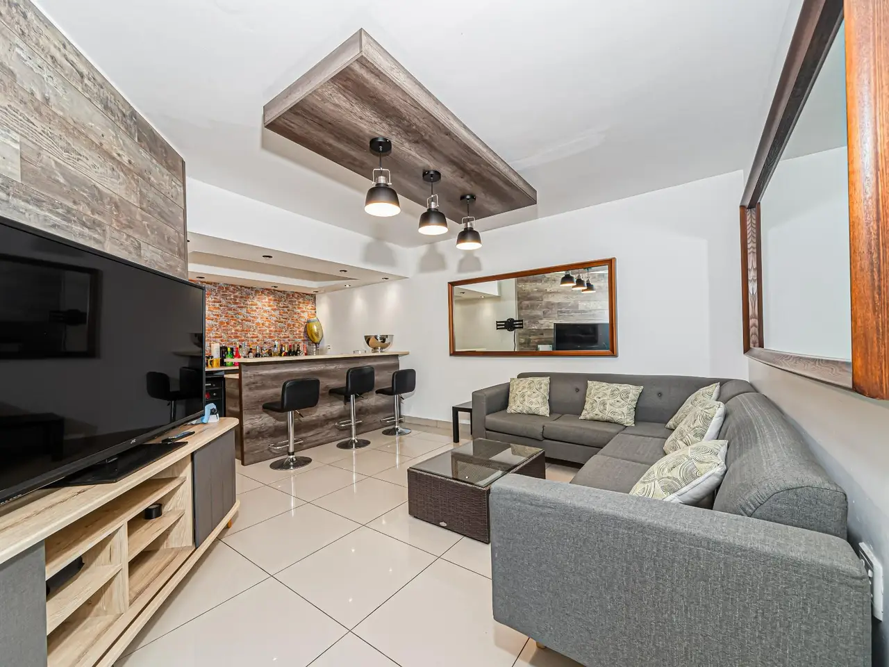 Entertainment room with built-in bar