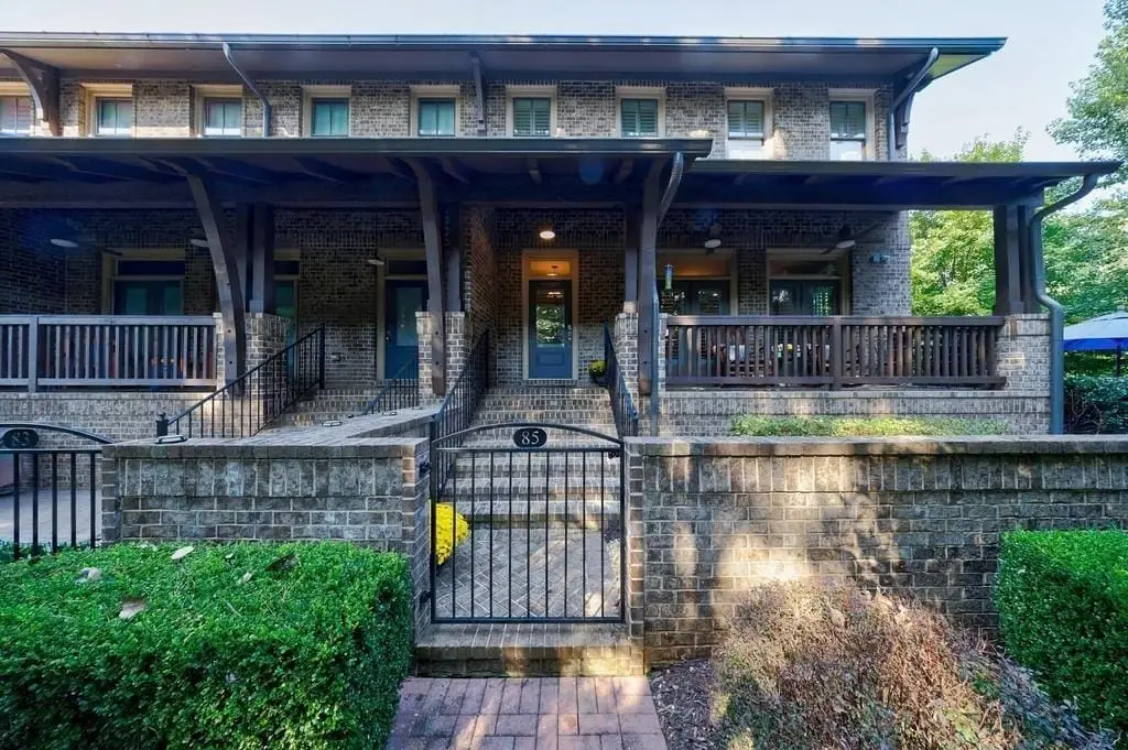 Tucked down a quaint brick path framed by trees, this stunning brownstone in the coveted Providence community redefines in-town living in Historic Roswell - just steps from the vibrant shops and restaurants of Canton Street. Enter through a charming iron gate to an expansive brick courtyard with a built-in grill, dining area, and firepit. A rocking chair front porch overlooks the lushly landscaped entry, offering both beauty and privacy. Inside, the main level boasts 10-foot ceilings, engineered hardwoods, and three elegant living spaces that live like a single-family home. A curved wall defines the spacious family room featuring a stone gas fireplace with wood mantle, built-in bookcases, and window seats. Two sets of French doors open to the front porch while side windows bathe the space in natural light. A gracious dining area easily accommodates a banquet-sized table for gatherings with family and friends. The gourmet kitchen is a true showpiece with custom cabinetry, exotic granite island, and a keeping room. Holiday entertaining is effortless with a 60 six-burner Thermador range with griddle and double ovens, a pot filler, paneled Sub-Zero refrigerator, wine bar with cooler, and walk-in pantry. Upstairs, the primary suite retreat offers a sitting area, beverage fridge, custom walk-in closet, and spa bath with soaking tub and frameless shower. Two secondary bedrooms with large closets and a full bath complete this level. The finished terrace level adds incredible flexibility with a true theater room and serving bar, full bath, flex space for office/gym/guests, and a built-in mudroom. The home is elevator-capable for added convenience. Providence offers pocket parks, an outdoor pavilion with fireplace, and a dog park - all just steps from Roswell's dining, shopping, coffee shops, and festivals. 85 Webb Street is a stunning retreat in the heart of it all. Love Where You Live!